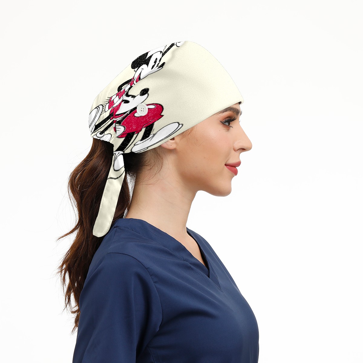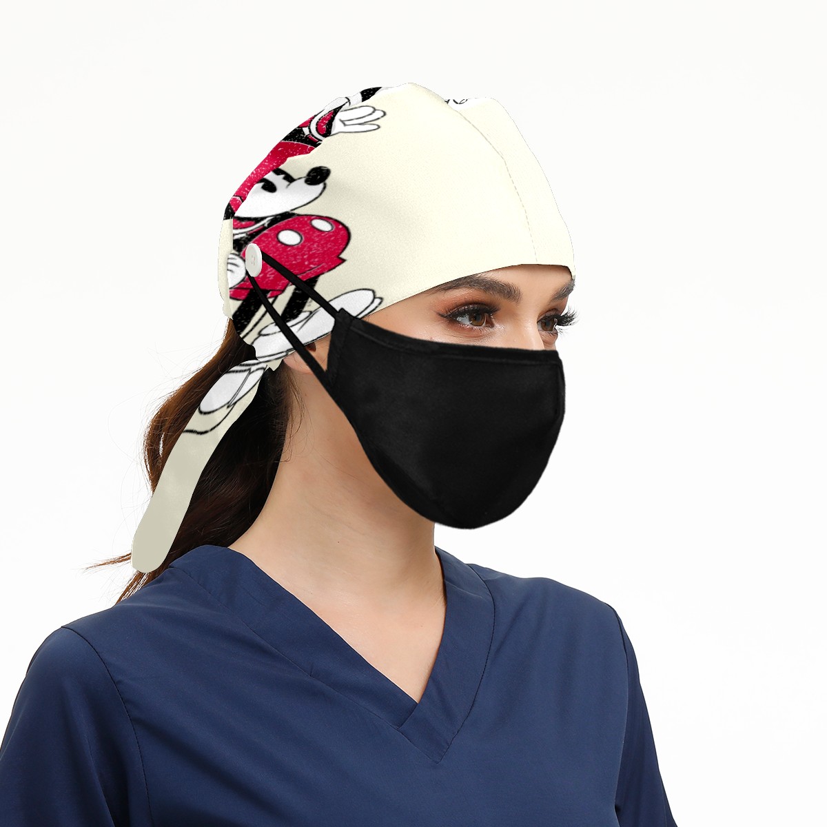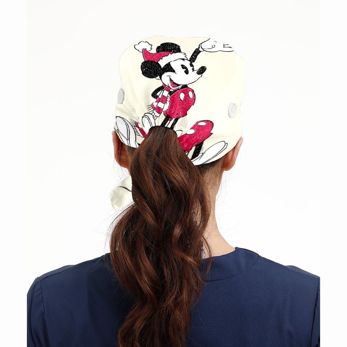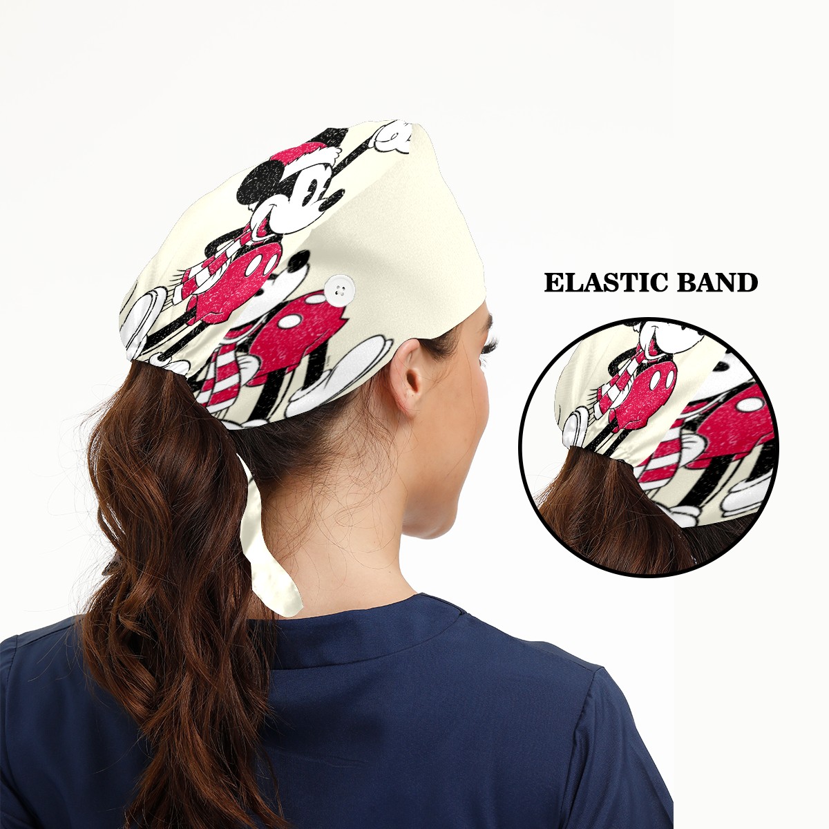 Fashion Working Cap Button and Sweatband Adjustable Elastic Mickey Mouse Vintage Santa Claus Head Cover Hair Tie Back Work Hats for Women Men