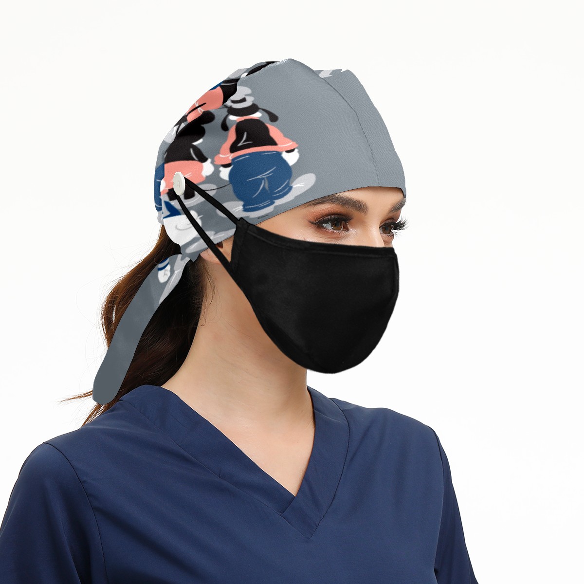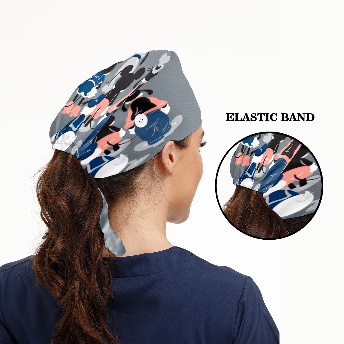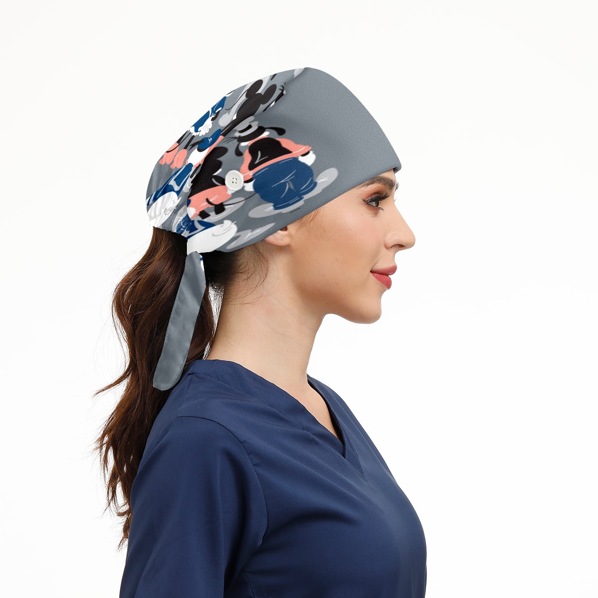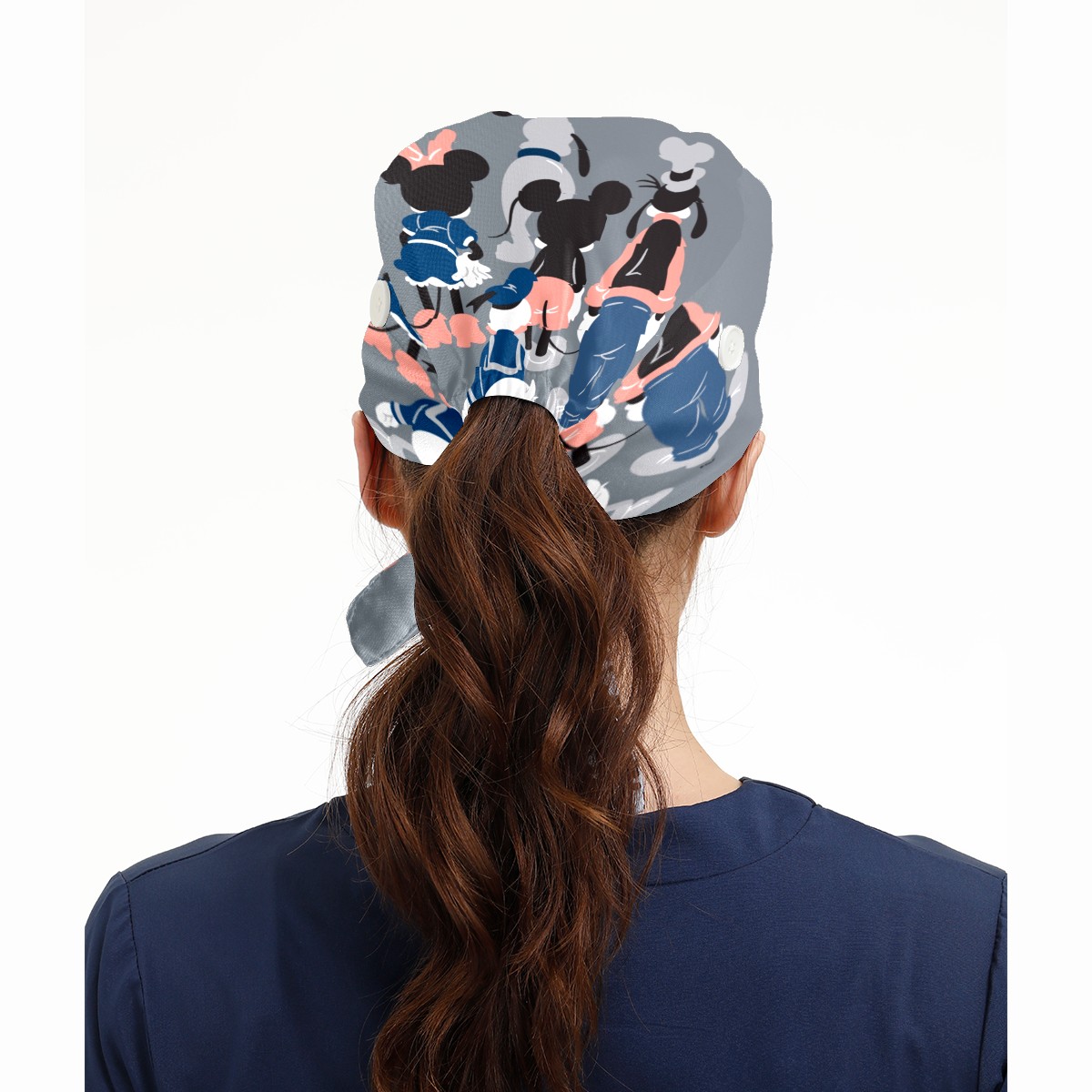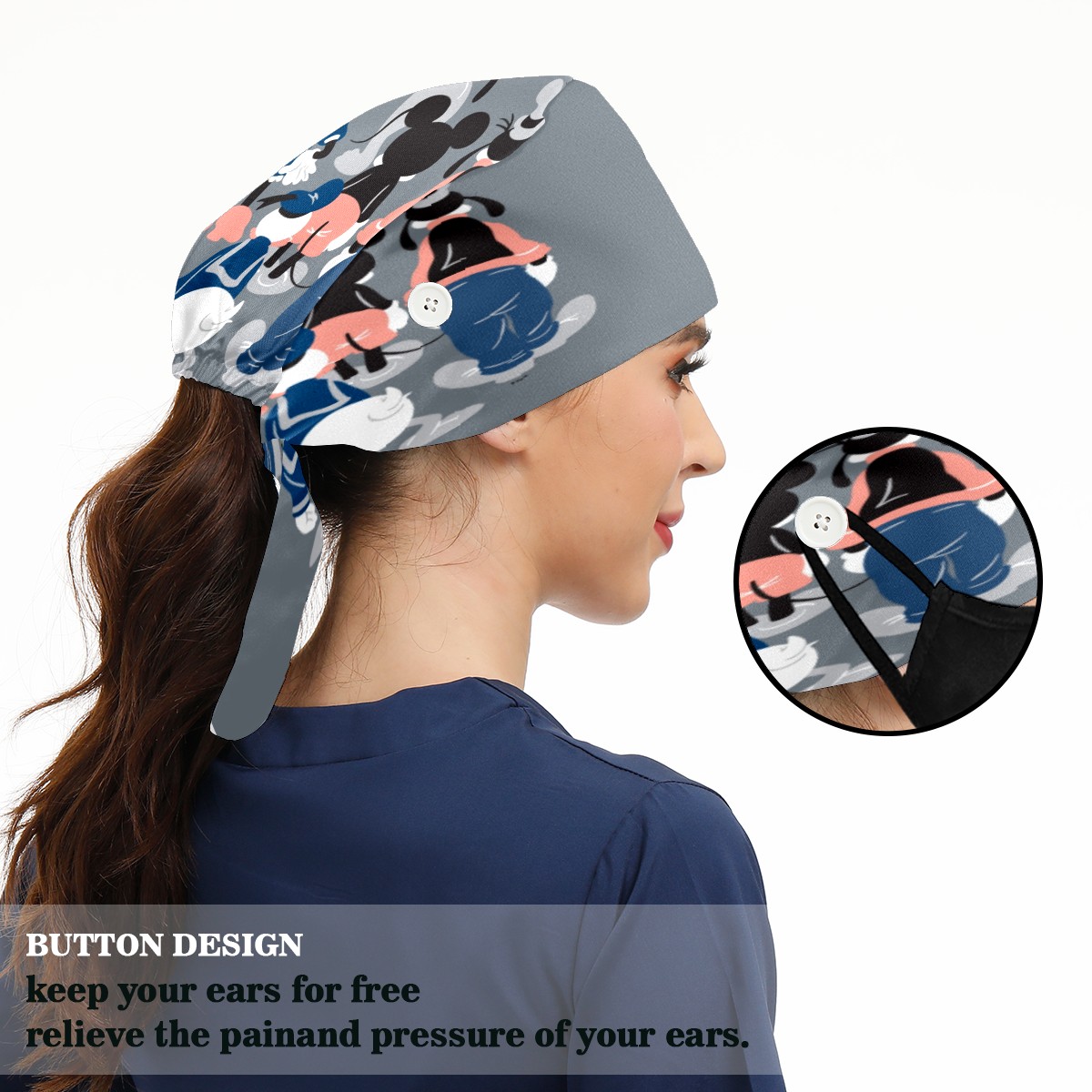 Fashion Working Cap Button and Sweatband Adjustable Elastic Mickey Mouse Friend Turns Head Cover Hair Tie Back Work Hats for Women Men