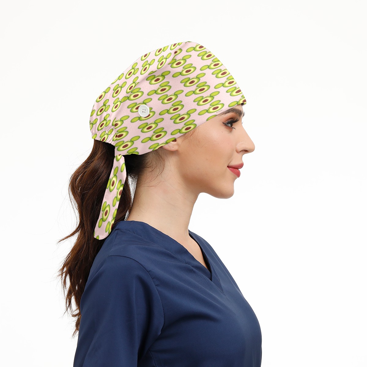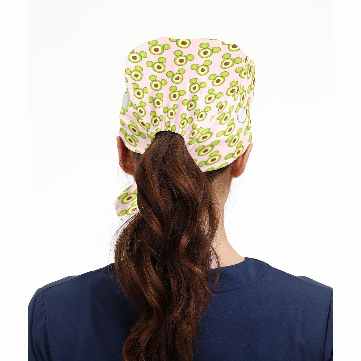 Fashion Working Cap Button and Sweatband Adjustable Elastic Mickey Mouse Avocado Head Cover Hair Tie Back Work Hats for Women Men