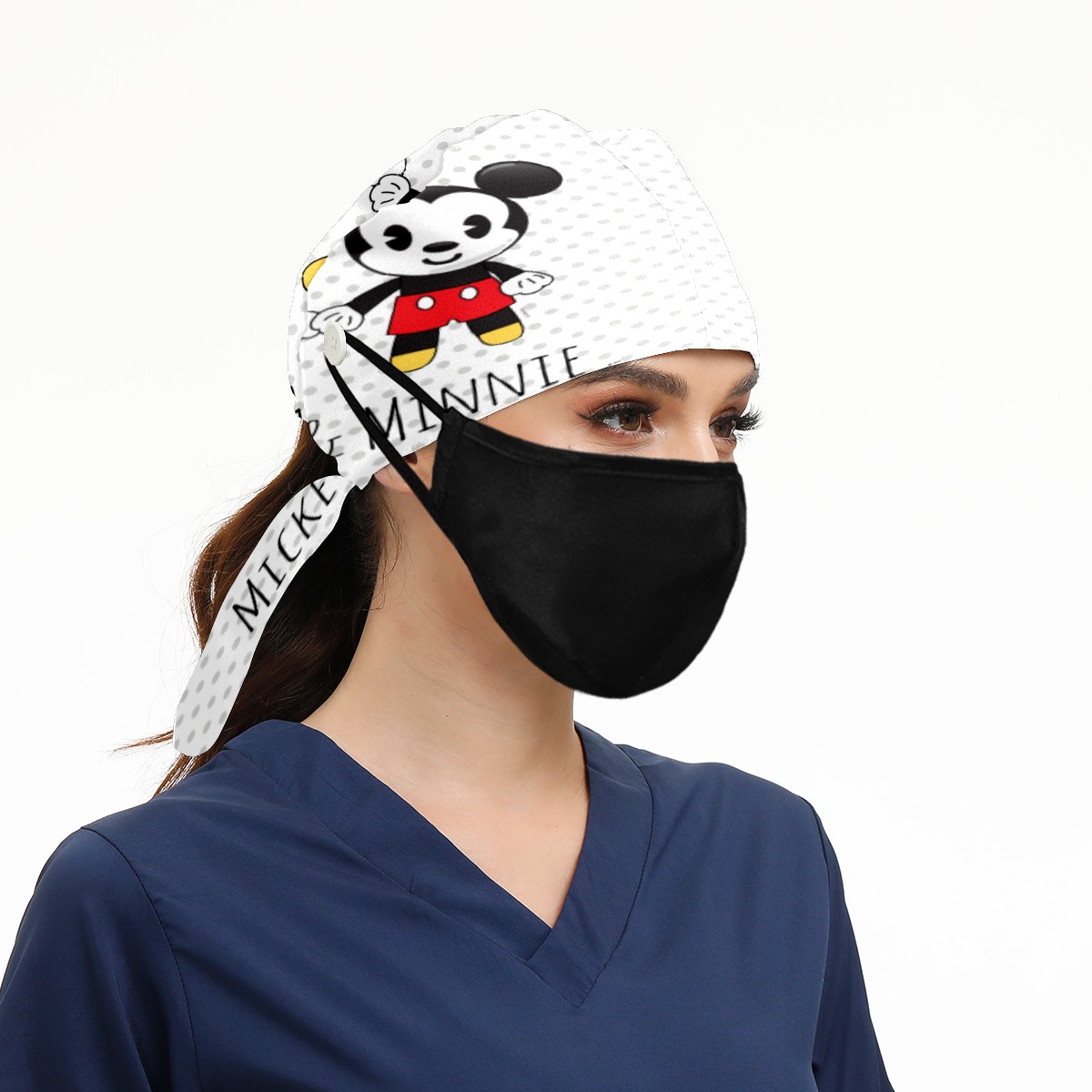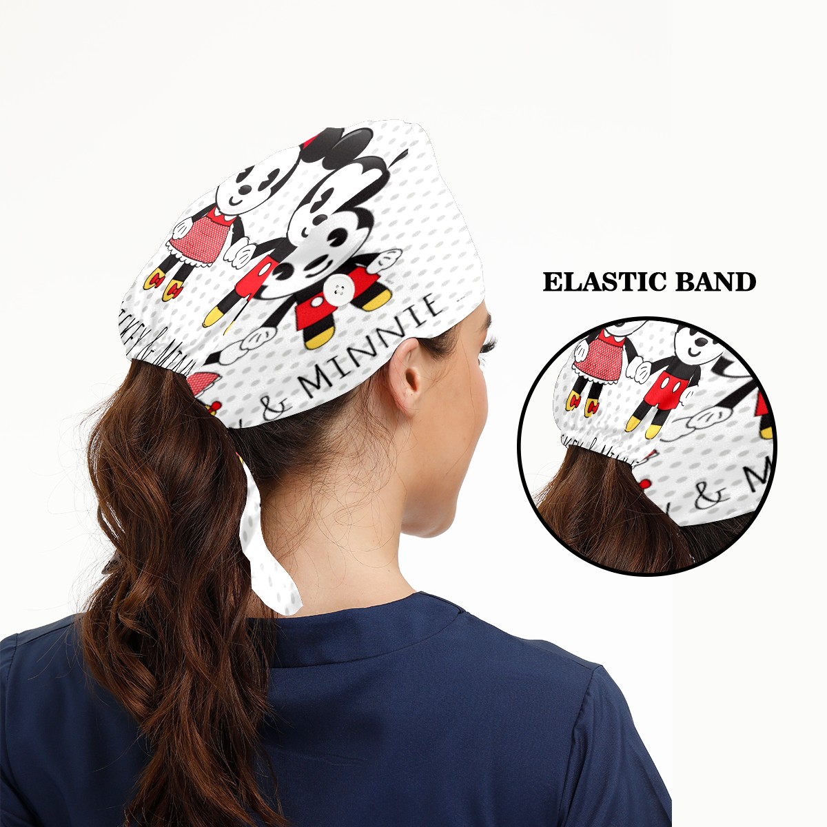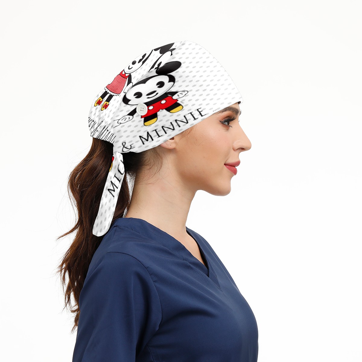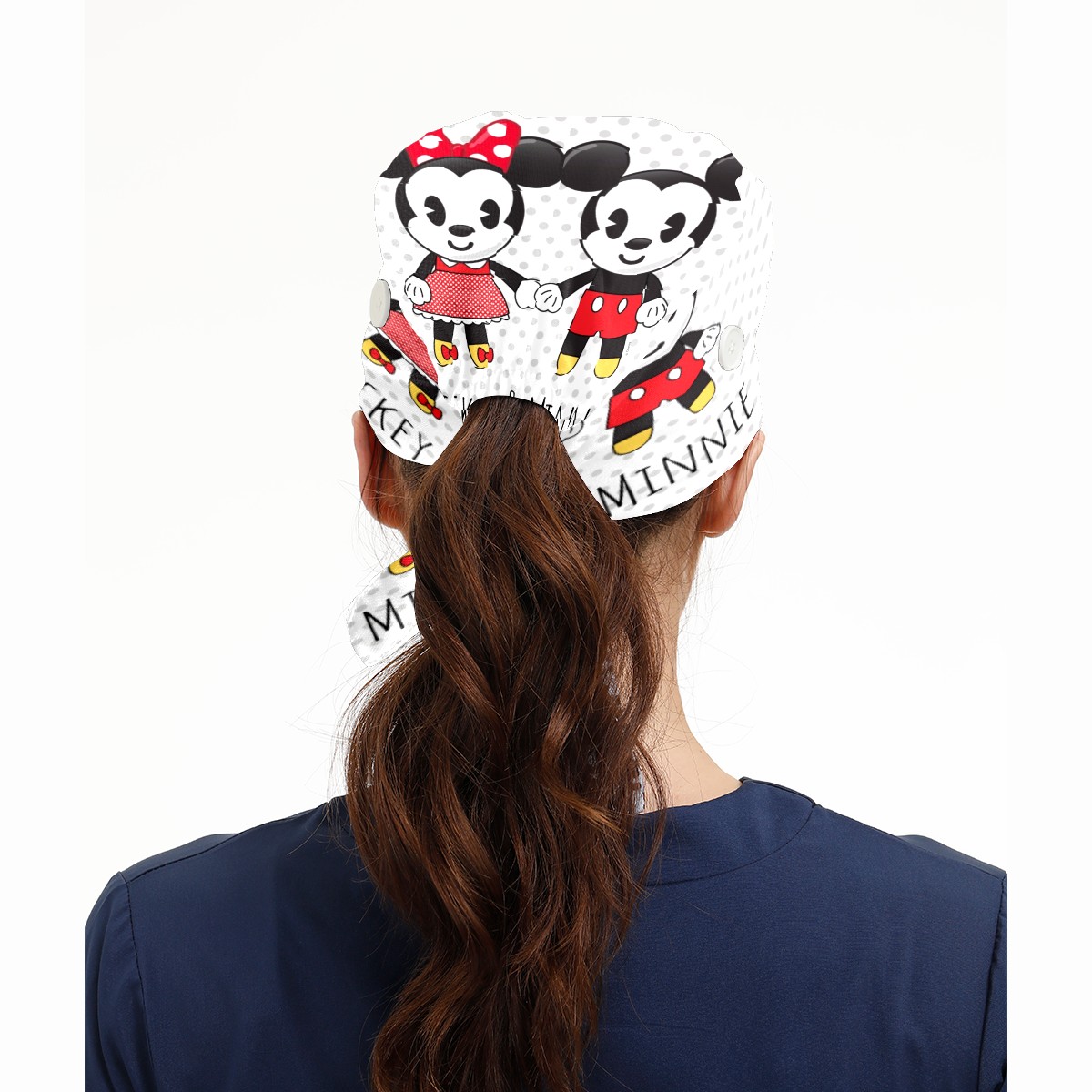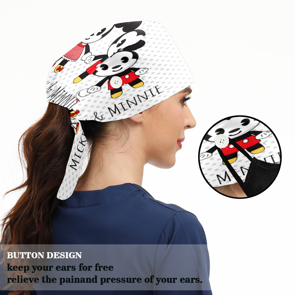 Fashion Working Cap Button and Sweatband Adjustable Elastic Mickey And Minnie Mouse Head Cover Hair Tie Back Work Hats for Women Men