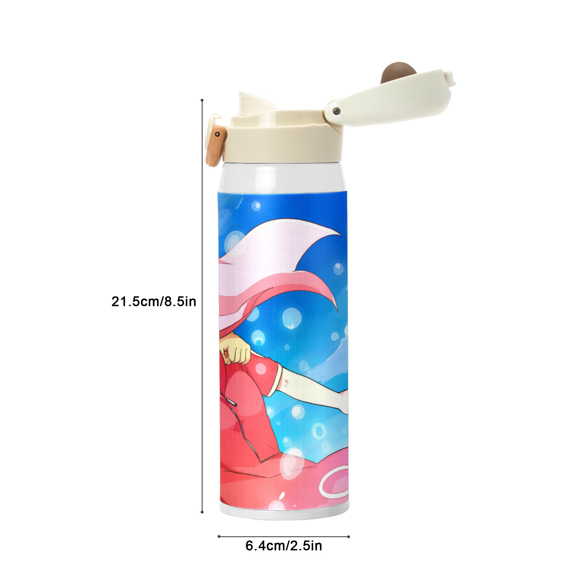 • <p><b>Cute&amp;Cool Water Bottle with Anime Cartoon design that makes you fall in love with drinking water!</b></p><p>&nbsp;</p><p><b>Double lock temperature technology</b>: Keep your drink hot for 12 hours and cold for 24 hours, make should every slip tastes great and fresh.</p><p>&nbsp;</p><p><b>BPA Free safe healthy: </b>100% BPA-free 304 stainless steel water bottle Food-grade safe material that rests assured to drink.</p><p>&nbsp;</p><p><b>Chug-lid design:</b> Open it with the push of a button for one-handed drinking, convenient and practical, easy carrying on the go.</p><p>&nbsp;</p><ul><li>Material: Food grade 304 stainless steel</li><li>Size1: 8.5in*2.5in</li><li>Capacity: 500ml</li></ul><p>&nbsp;</p><p><b>Note to Dear Customers:</b></p><p>&nbsp;</p><p>1. Before use, clean both sides of the bottle in warm water, then pour water above 80℃ into the bottle and cover it tightly for 4 hours to deodorize.</p><p>&nbsp;</p><p>2. Under different display screens, there may be some color difference in the real object.</p><p>&nbsp;</p><p>3. Reassuring after-sales service, satisfactory service attitude.</p><p>&nbsp;</p><p>4. If you have any questions when purchasing, please contact us.&nbsp;</p>