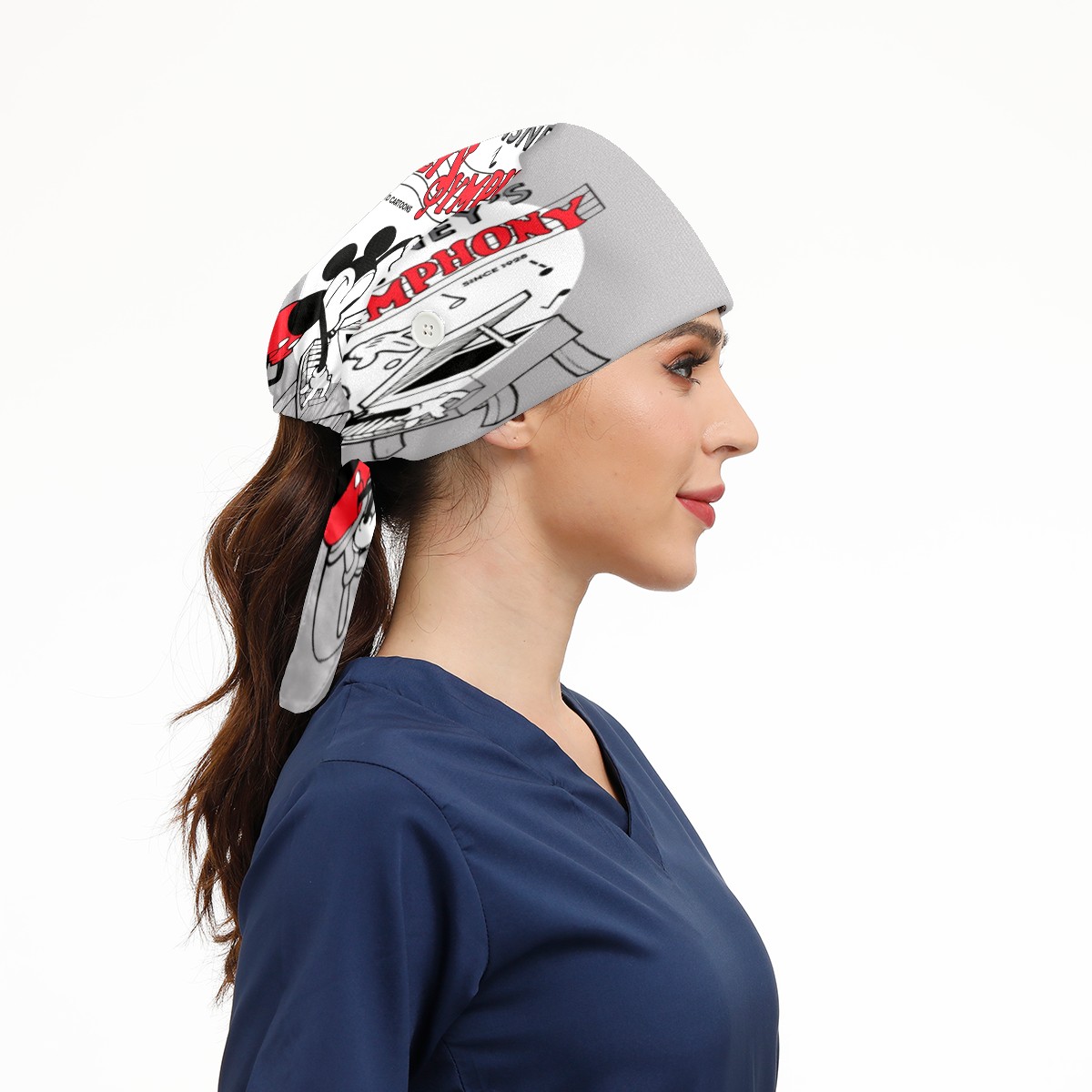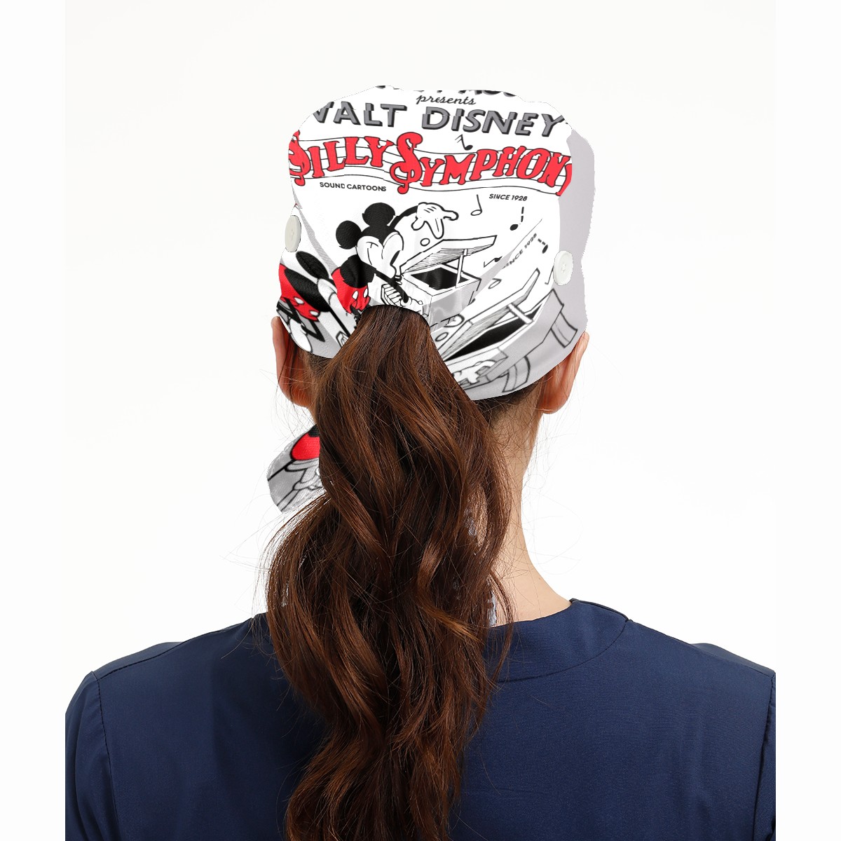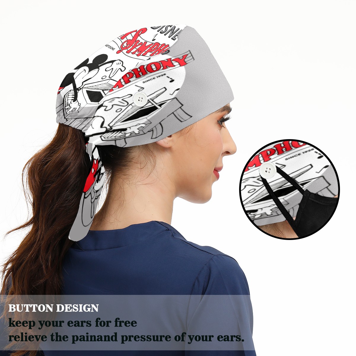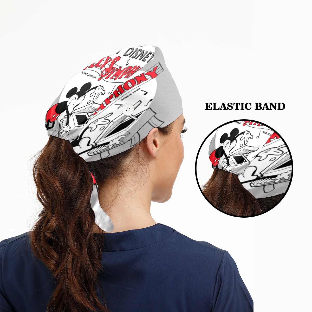 Fashion Working Cap Button and Sweatband Adjustable Elastic Vintage Mickey Silly Symphony Head Cover Hair Tie Back Work Hats for Women Men