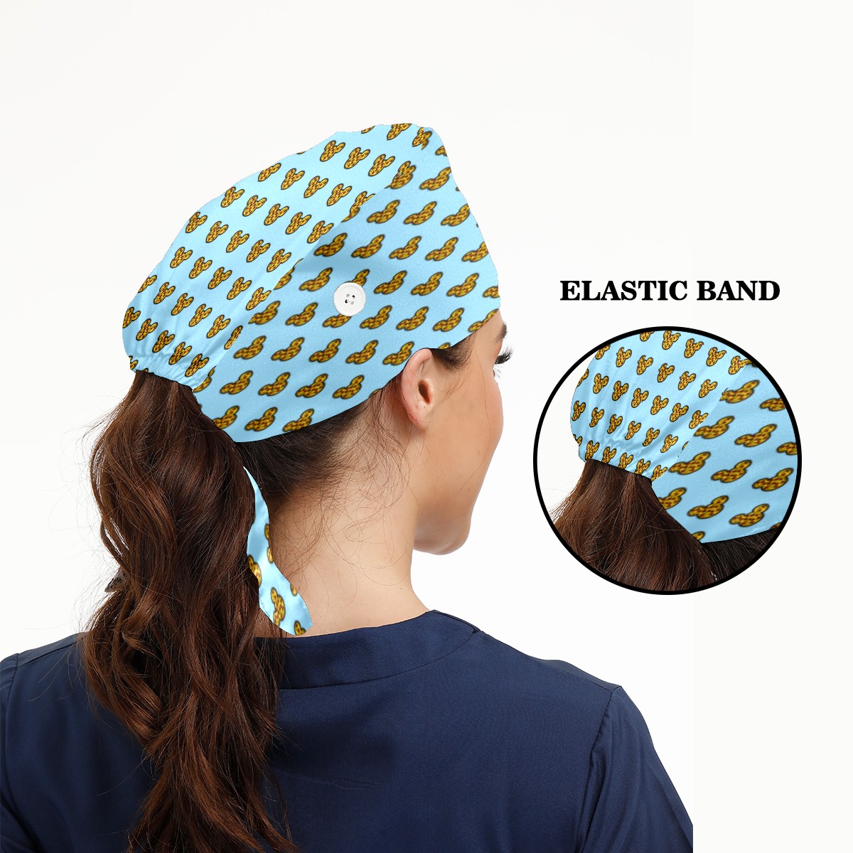 Fashion Working Cap Button and Sweatband Adjustable Elastic Trendy Mickey Mouse Head-Shaped Pizza Head Cover Hair Tie Back Work Hats for Women Men