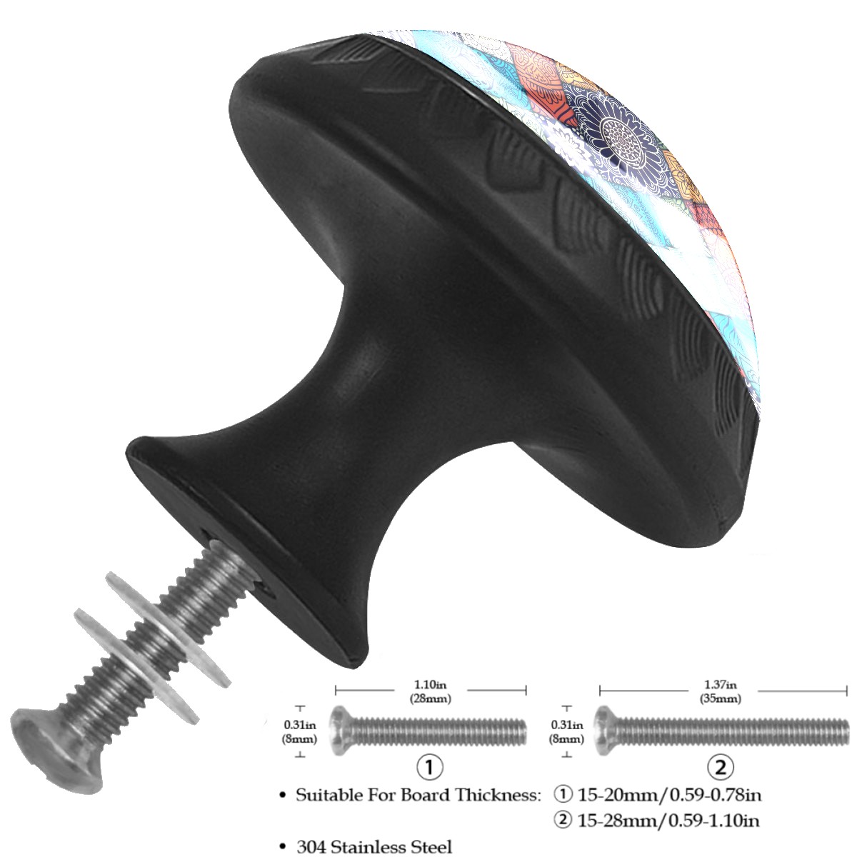<p><b>Product Specification</b></p><p>Crystal Diameter: 30mm(1.18 inch)</p><p>Knob Height: 28mm(1.10 inch)</p><p>Base Diameter: 17mm(0.66 inch)</p><p>&nbsp;</p><p><b>Package Includes</b></p><p>4 Piece Drawer Pull Knob</p><p>4 Piece Screw</p><p>&nbsp;</p><p><b>Installation Steps</b></p><p>Find the position where you want to install on the board and drill a hole.Then pass through the screw from the back of board anf thread tight to the knob.</p>