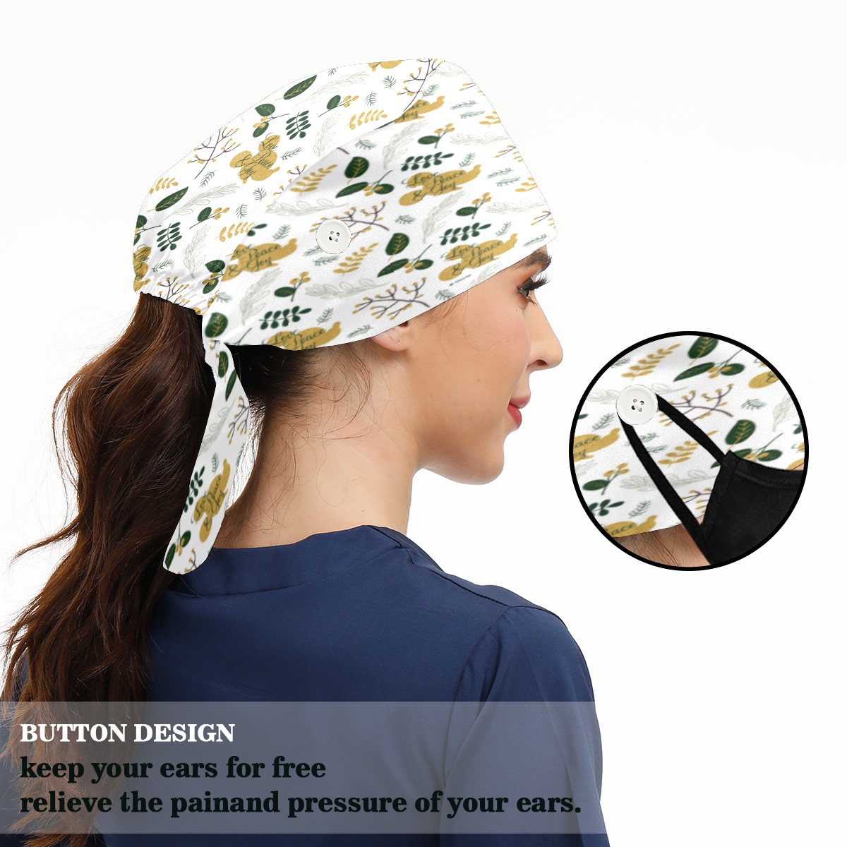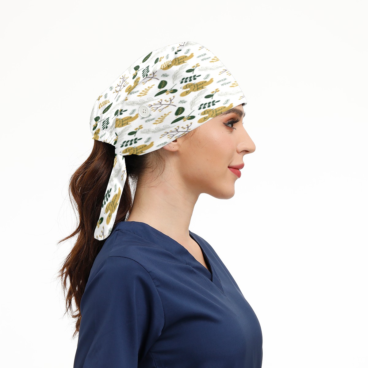 <p>Women and Mens head cover with Sweatband and Button</p><p>Material&nbsp;: 50% cotton+50% polyester</p><p>Size:&nbsp;One size fits most,&nbsp;suitable for both men and women.</p><p>Working Cap with Buttons Design:special&nbsp;design with buttons to protect ears for those who are wearing ma-sk. These new styles hats will allow you to put the straps around the buttons instead of your ears, make you feel more comfortable.</p><p>Sweat-absorbent towel cloth inside: Built-in&nbsp;100% cotton sweatband, keep the forehead clean after long time working.</p><p>Widely occasion: Widely used in beauty spa, house cleaning, cooking, sleeping, or for cos-play&nbsp;party.</p><p>Lovely pattern: lovely&nbsp;3D printed&nbsp;pattern,&nbsp;it's perfect for gift to you family&nbsp;and friends.</p>