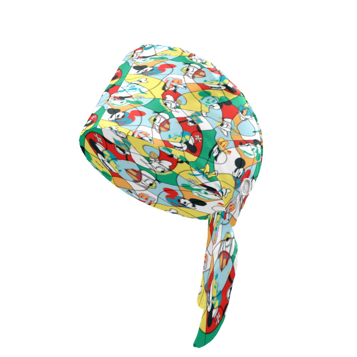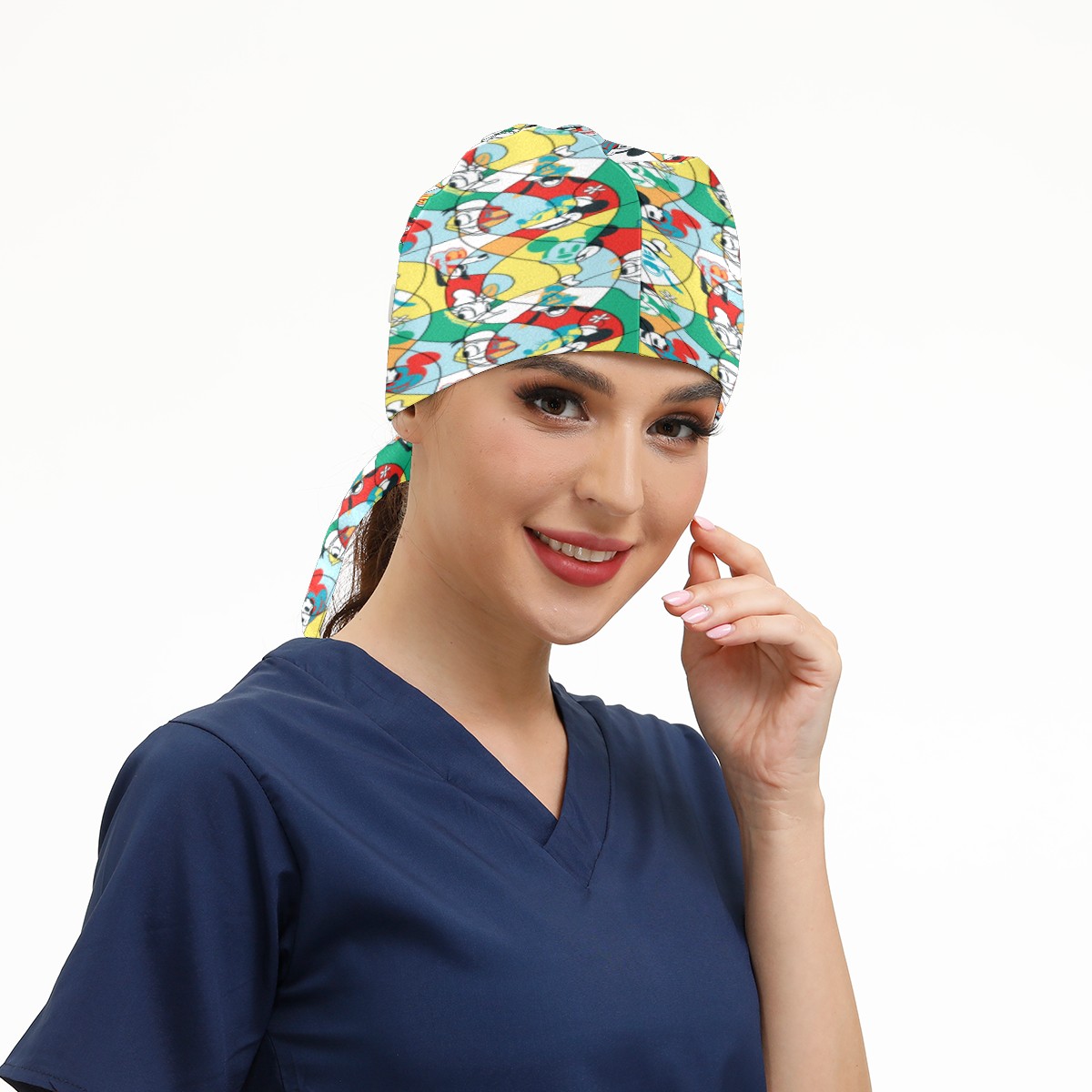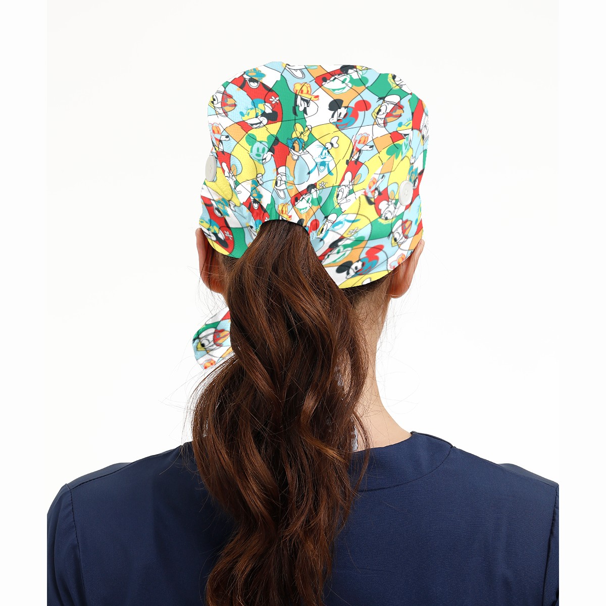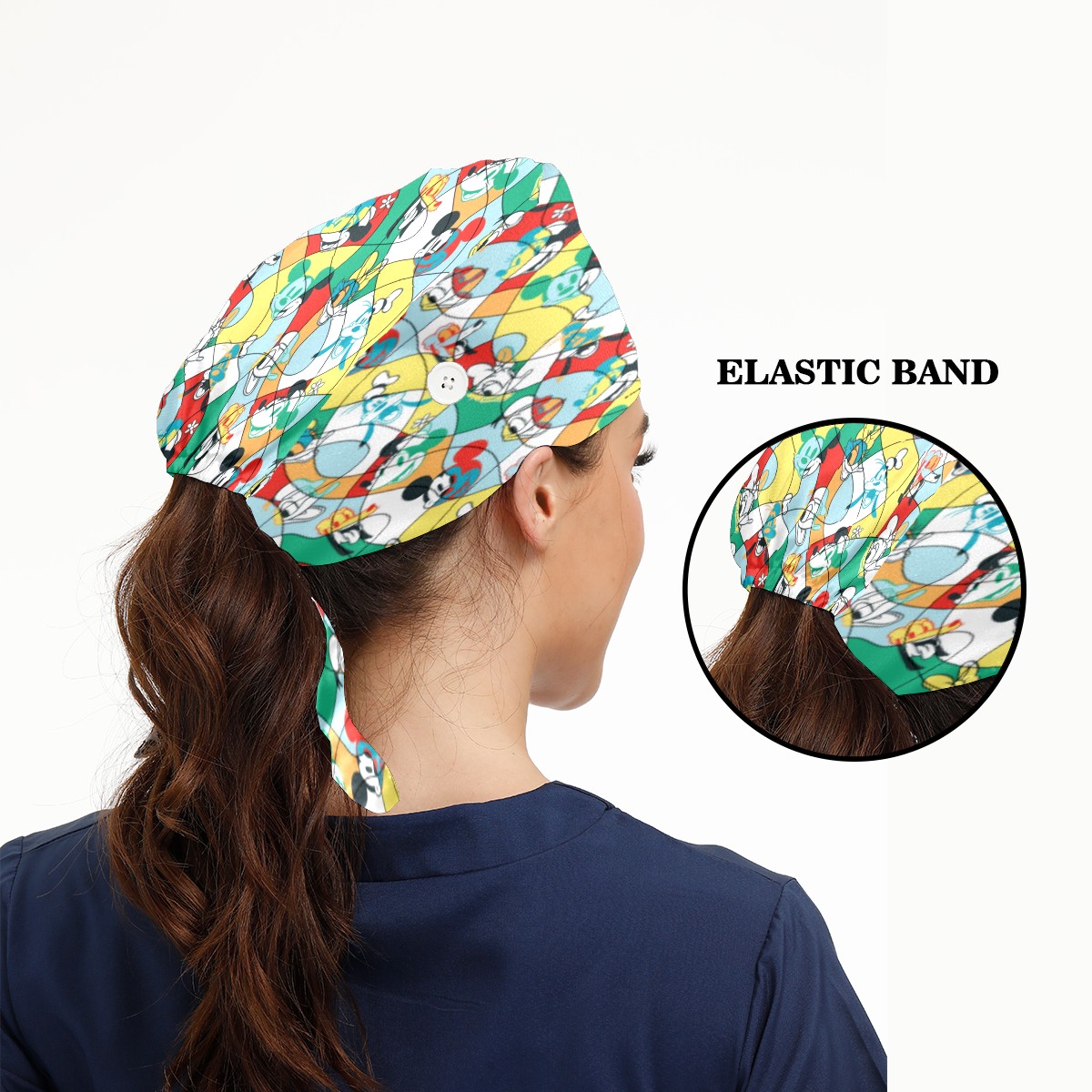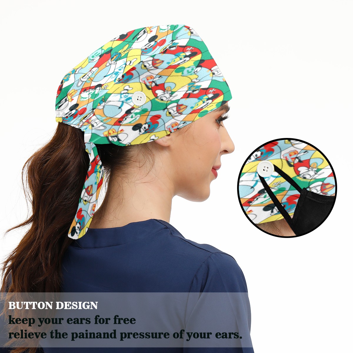 Fashion Working Cap Button and Sweatband Adjustable Elastic Mickey Minnie Mouse Modern Art Pattern Head Cover Hair Tie Back Work Hats for Women Men