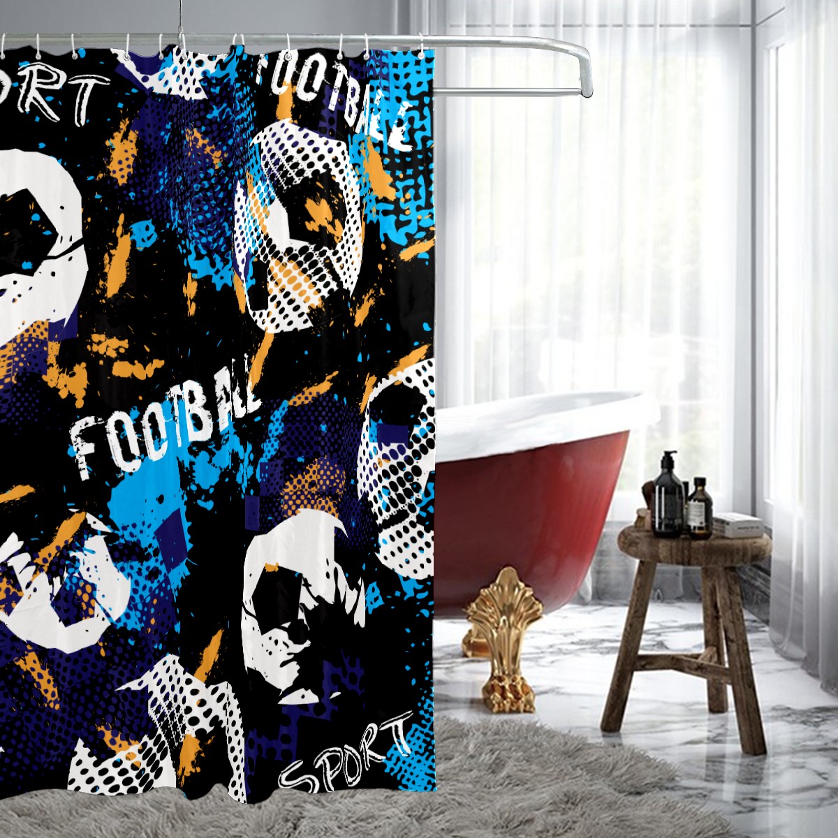 Shower Curtains for Bathroom Vintage Sport Soccer Football Pattern Waterproof Polyester Fabric 60 x 72 inches Decor Bathroom Curtains for Girls Boys with 12 Hooks