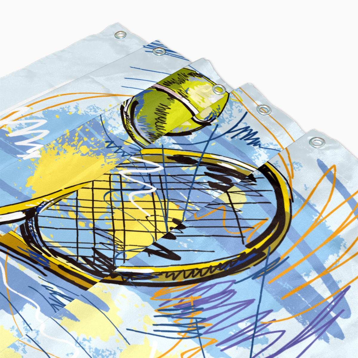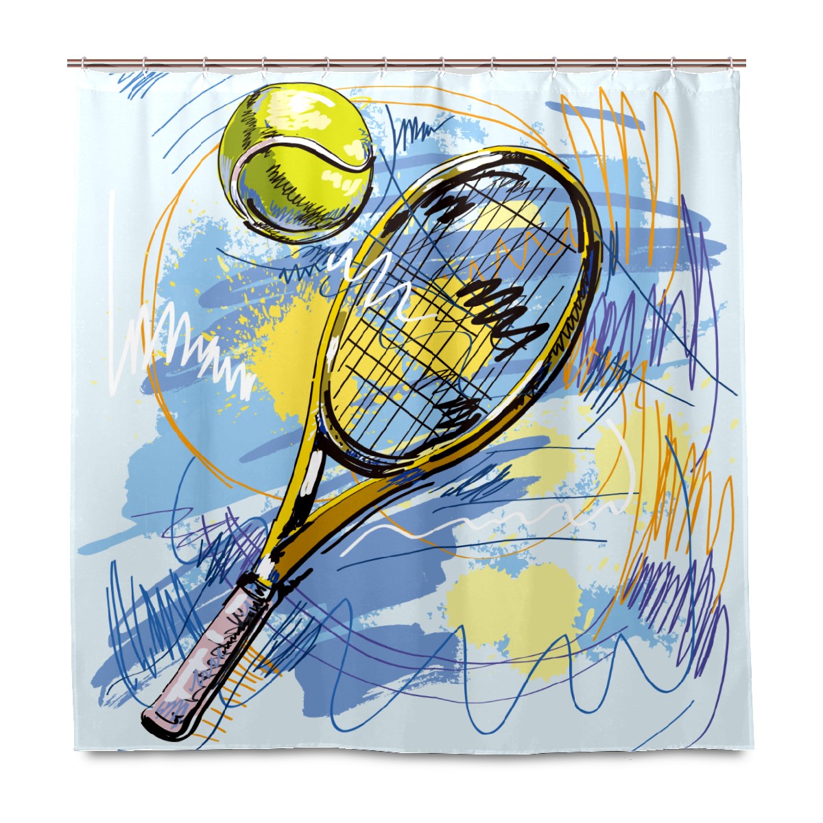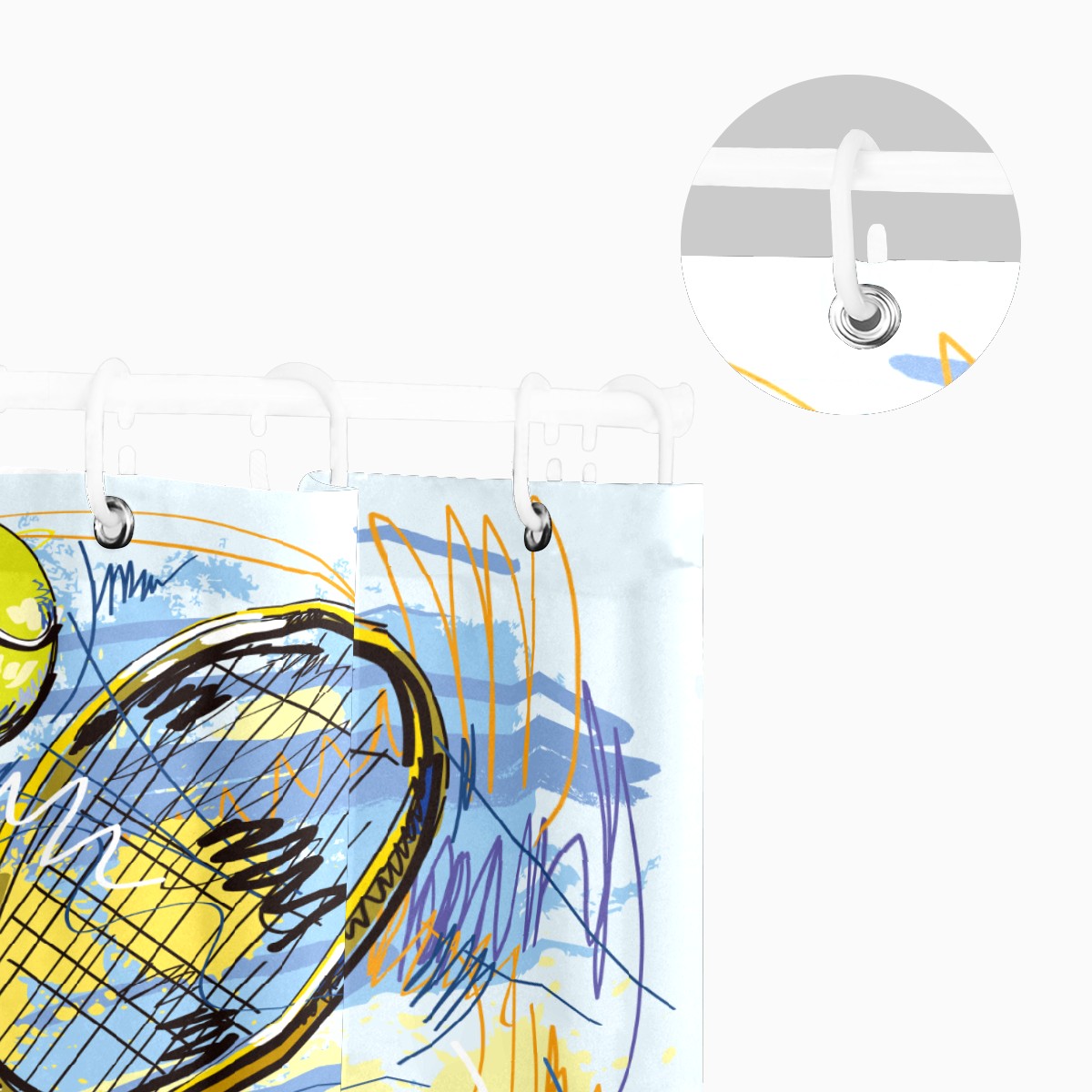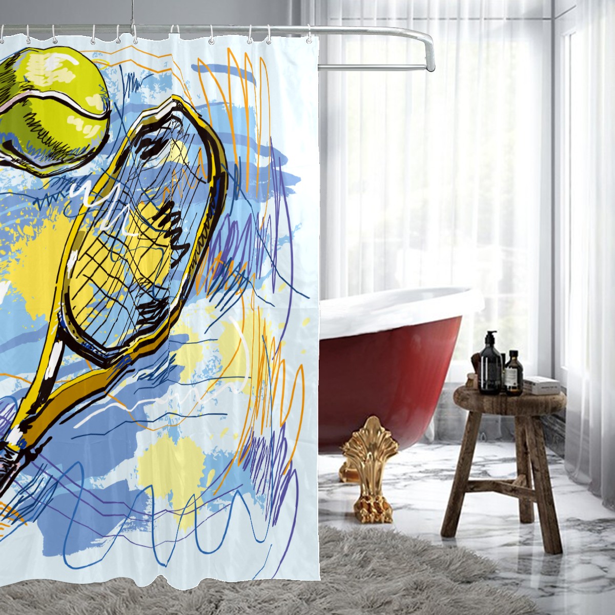 Shower Curtains for Bathroom Street Fashion Sport Tennis Ball Waterproof Polyester Fabric 60 x 72 inches Decor Bathroom Curtains for Girls Boys with 12 Hooks