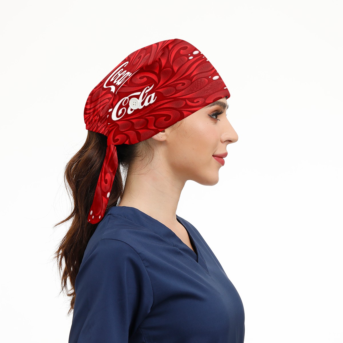 Fashion Working Cap Button and Sweatband Adjustable Elastic Red Coca Cola Pattern Head Cover Hair Tie Back Work Hats for Women Men