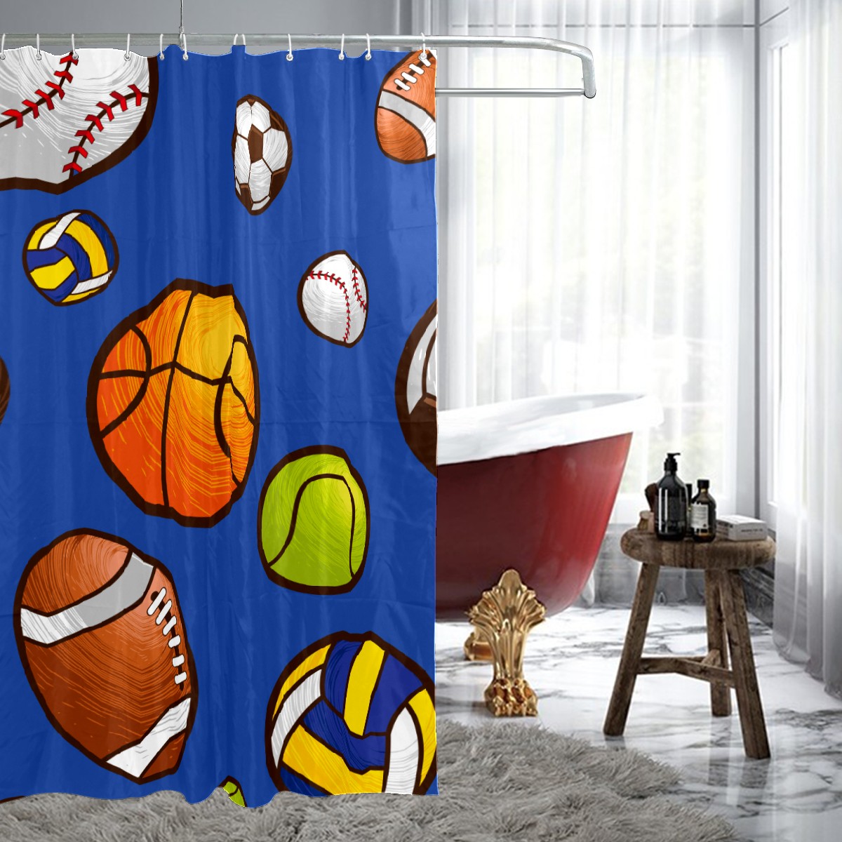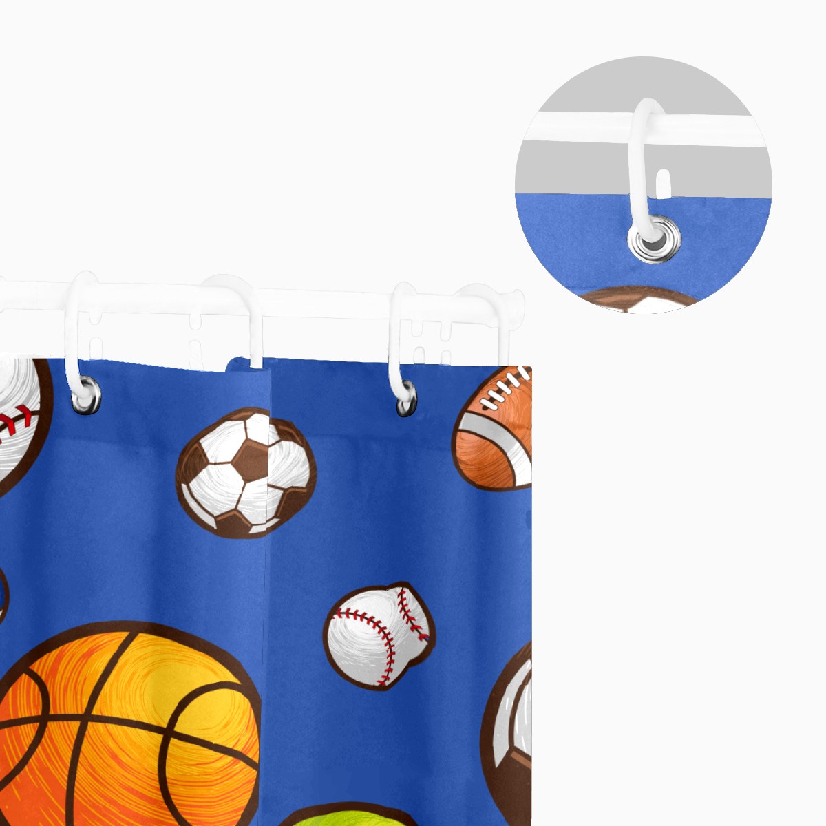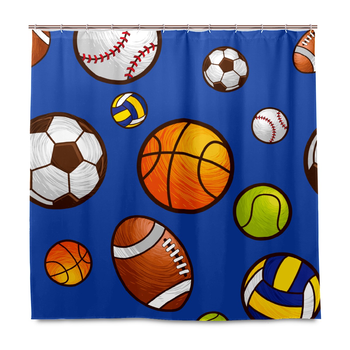Shower Curtains for Bathroom Sport Soccer Baseball Basketball Waterproof Polyester Fabric 60 x 72 inches Decor Bathroom Curtains for Girls Boys with 12 Hooks