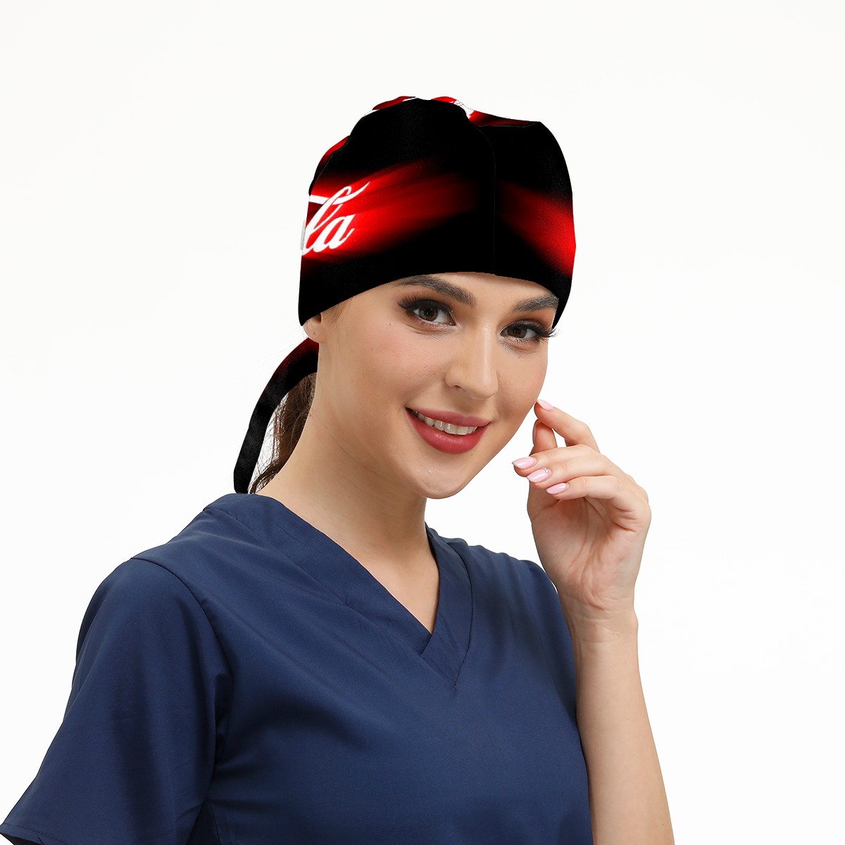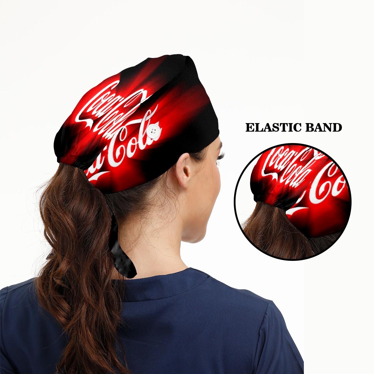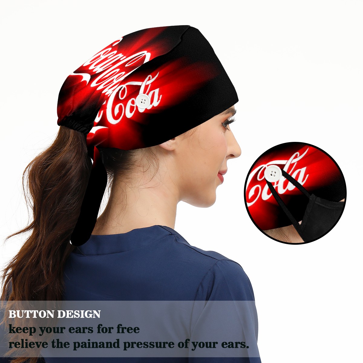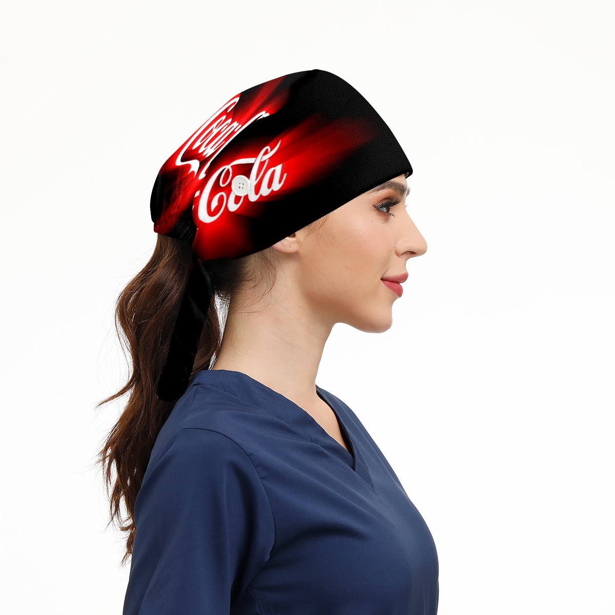 Fashion Working Cap Button and Sweatband Adjustable Elastic Neon Coca-Cola Head Cover Hair Tie Back Work Hats for Women Men