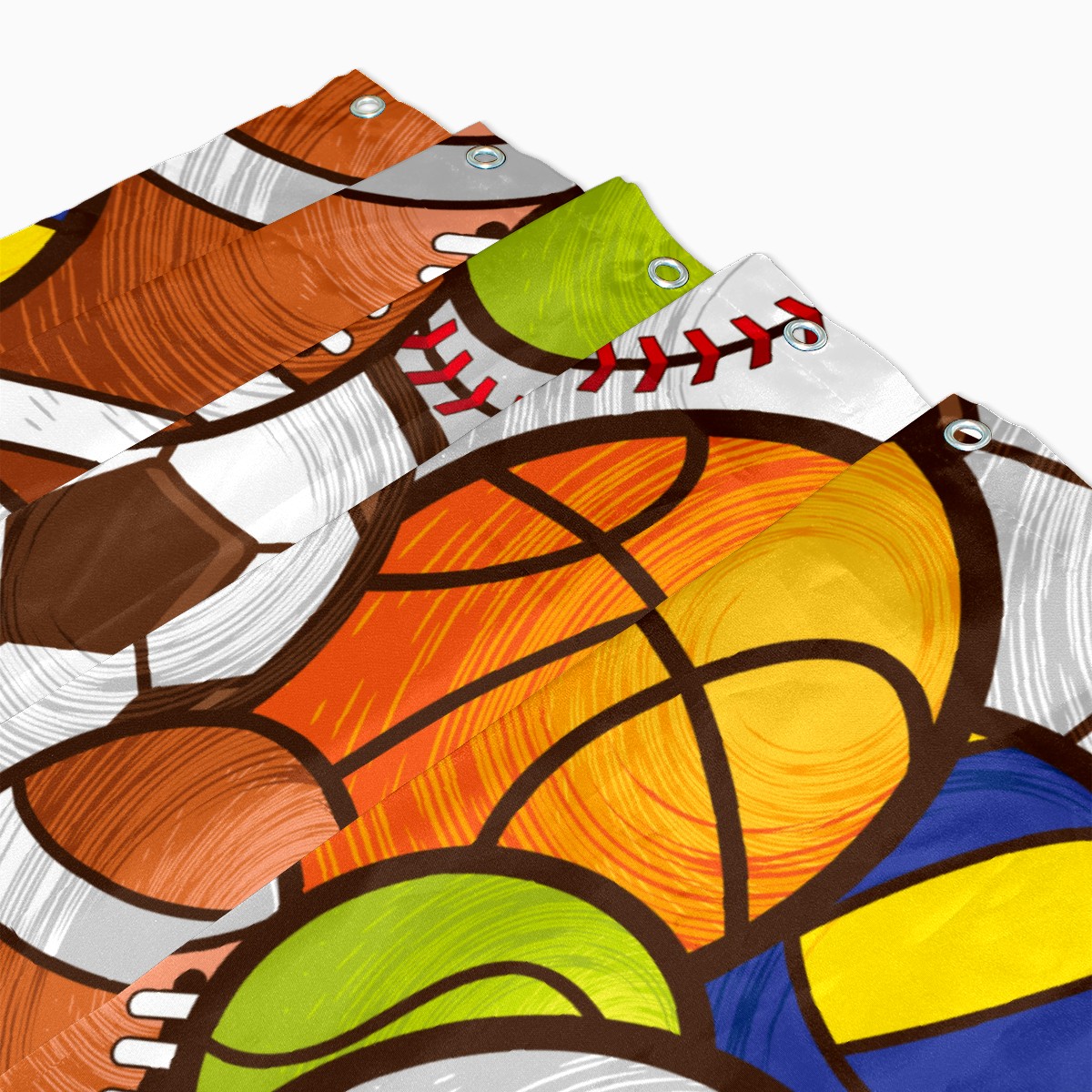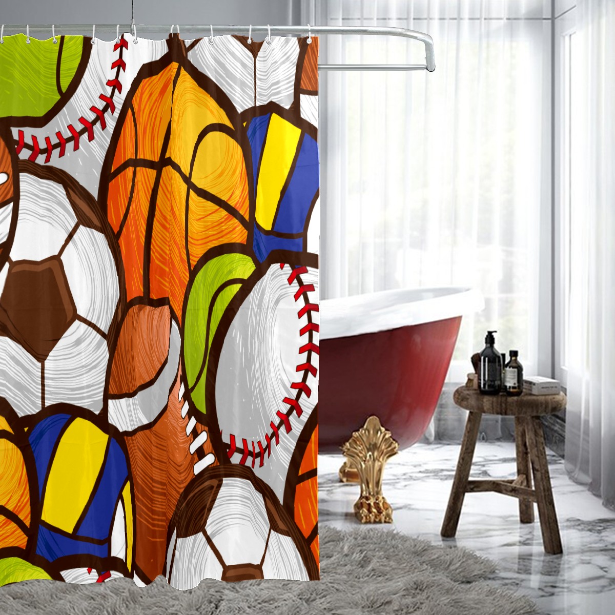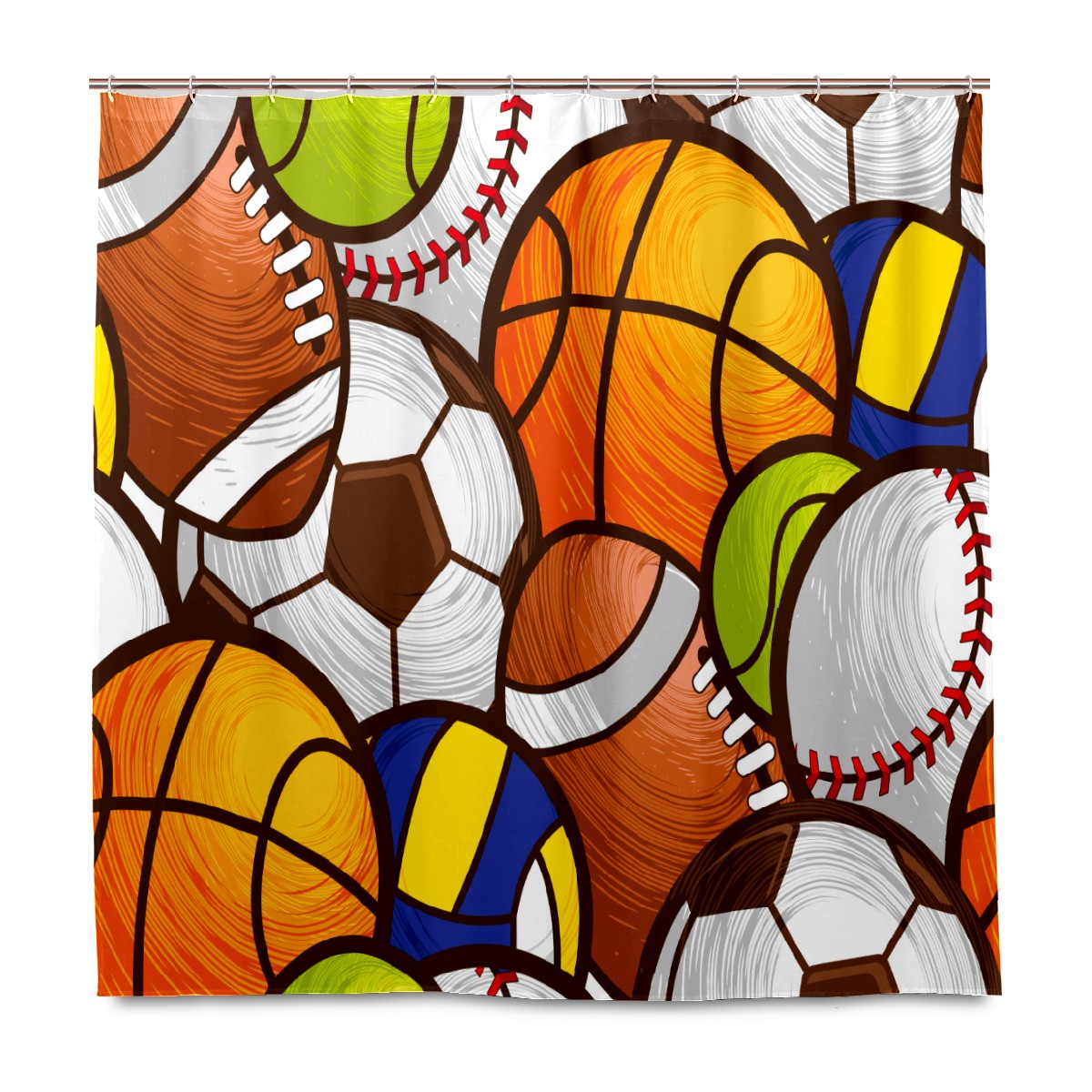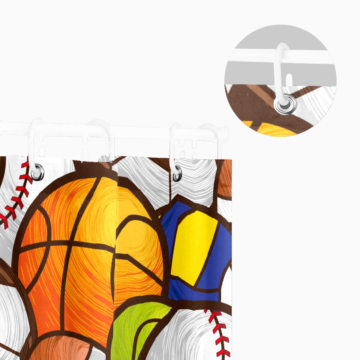 Shower Curtains for Bathroom Sport Pattern Soccer Baseball Basketball Waterproof Polyester Fabric 60 x 72 inches Decor Bathroom Curtains for Girls Boys with 12 Hooks