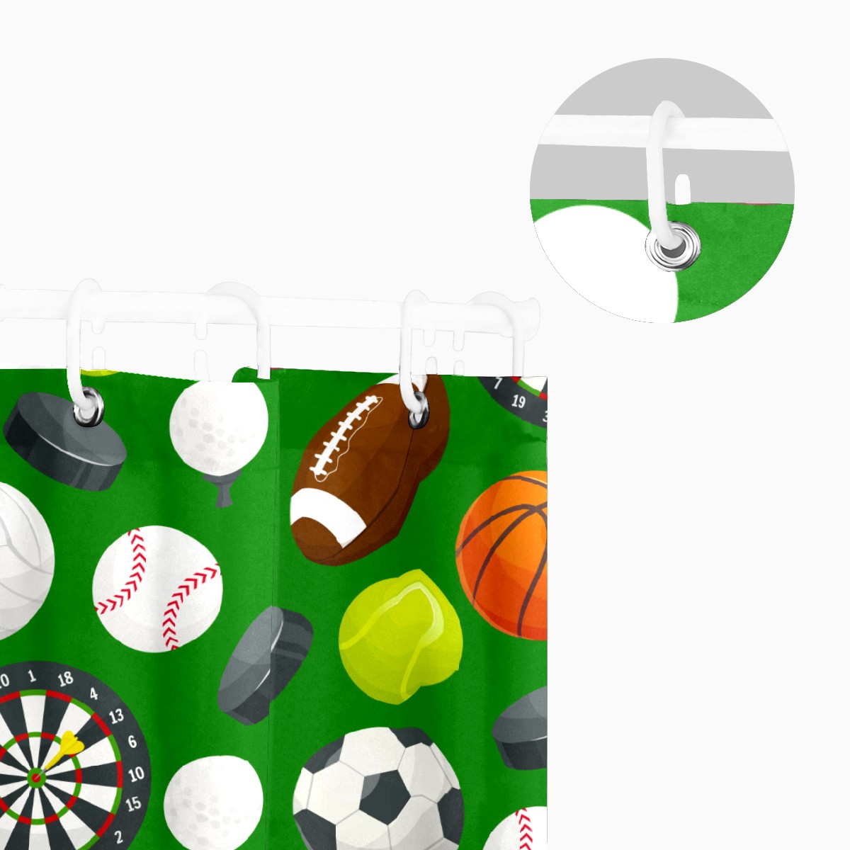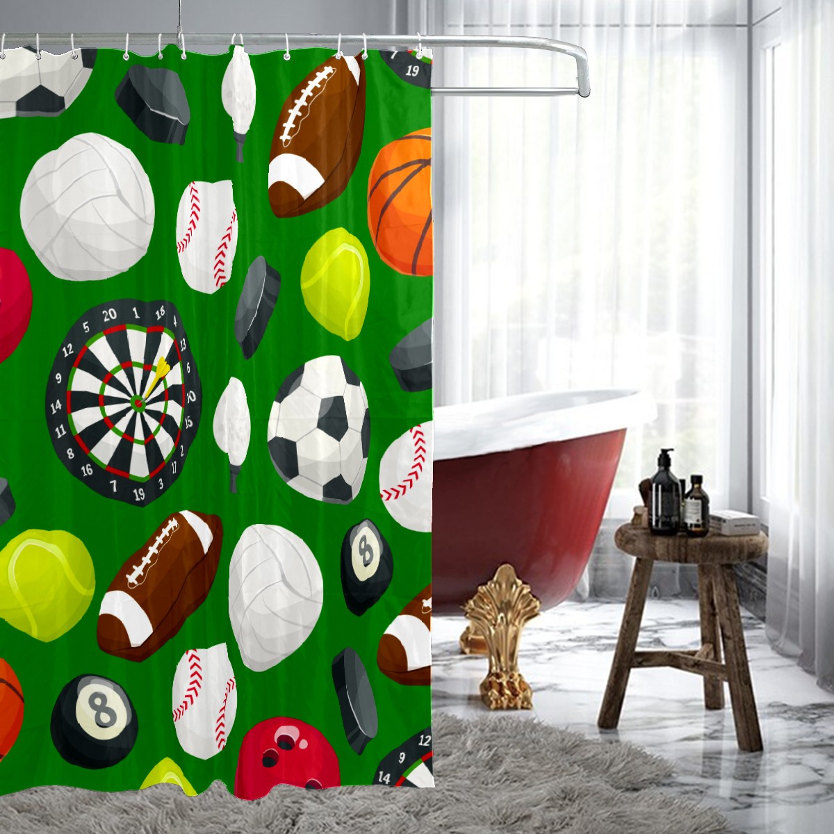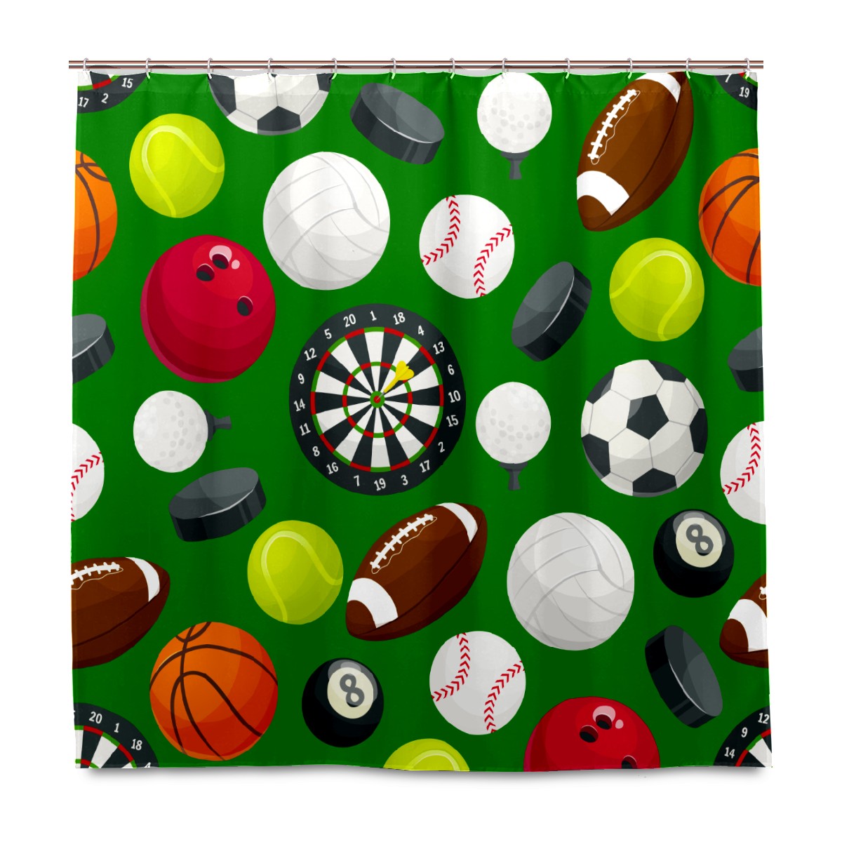 Shower Curtains for Bathroom Sport Pattern Soccer Baseball Basketball Darts Waterproof Polyester Fabric 60 x 72 inches Decor Bathroom Curtains for Girls Boys with 12 Hooks