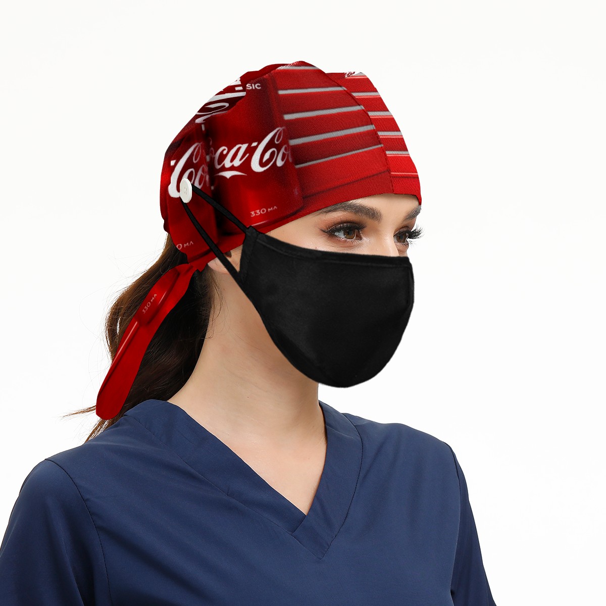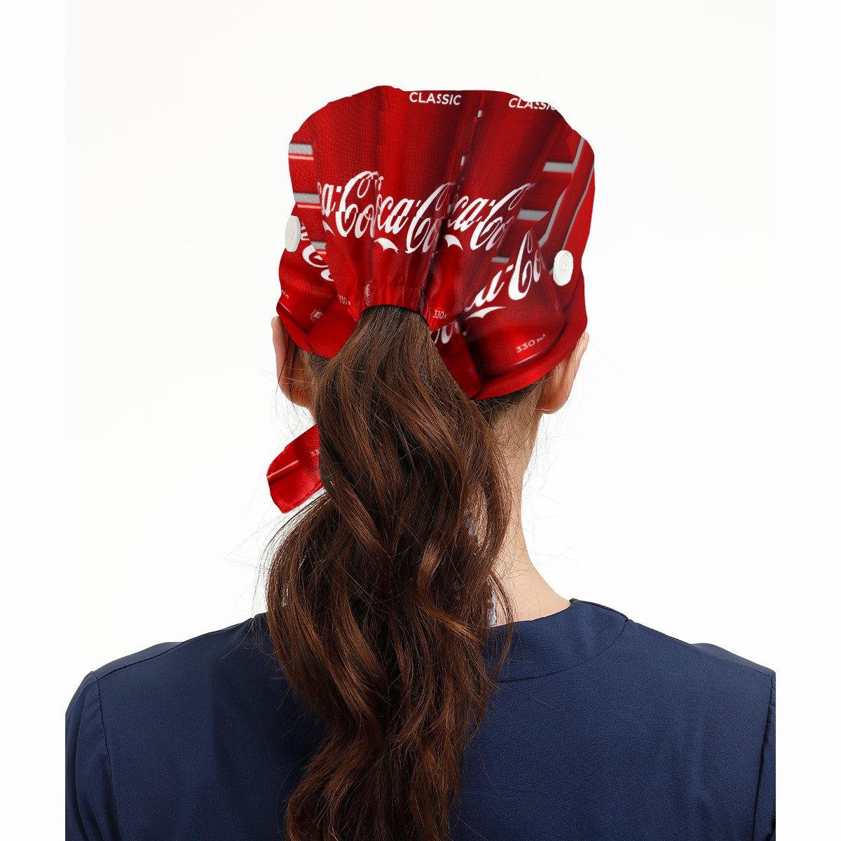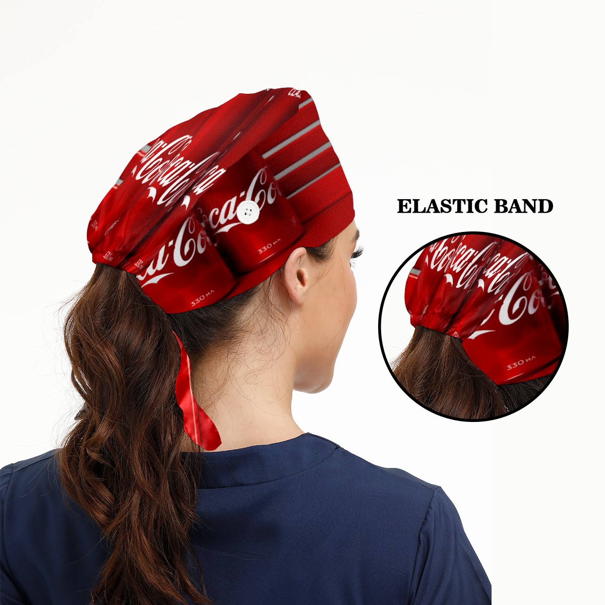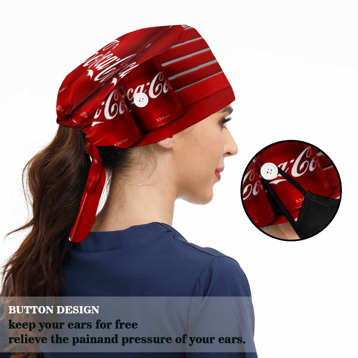Fashion Working Cap Button and Sweatband Adjustable Elastic Coca-Cola Red Jars Drinks Head Cover Hair Tie Back Work Hats for Women Men