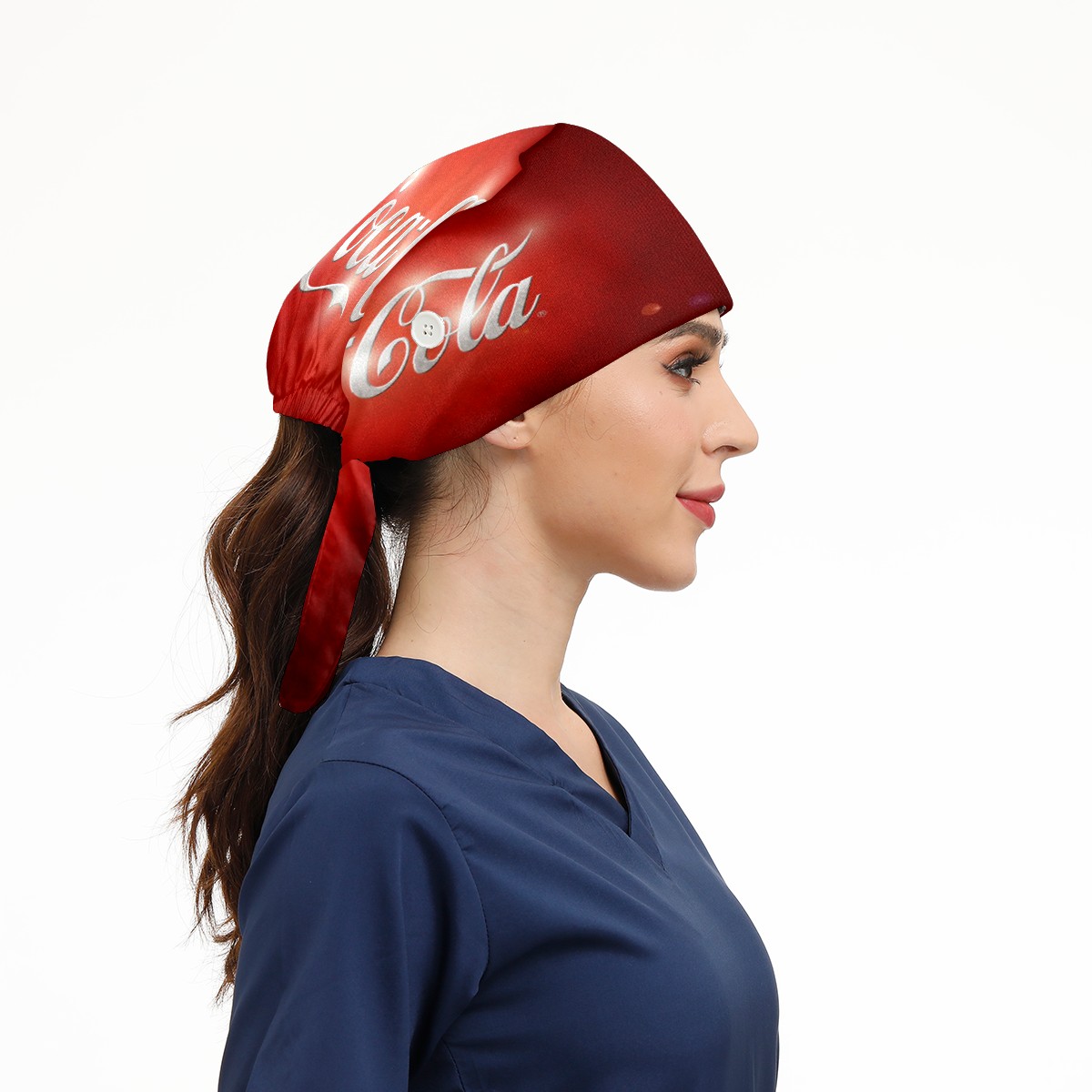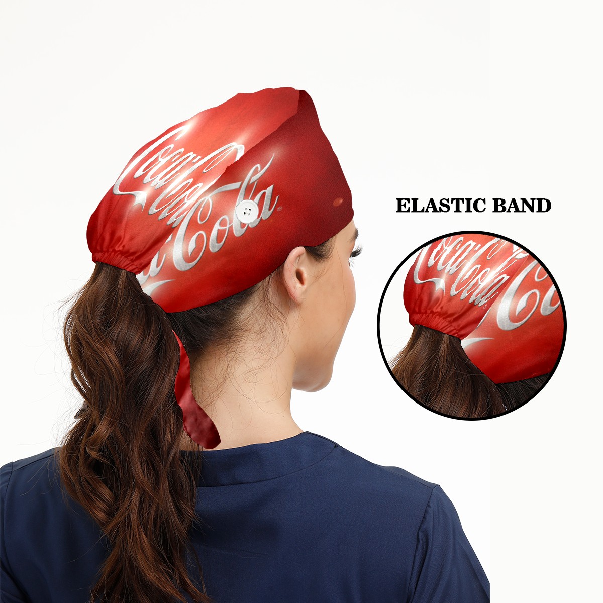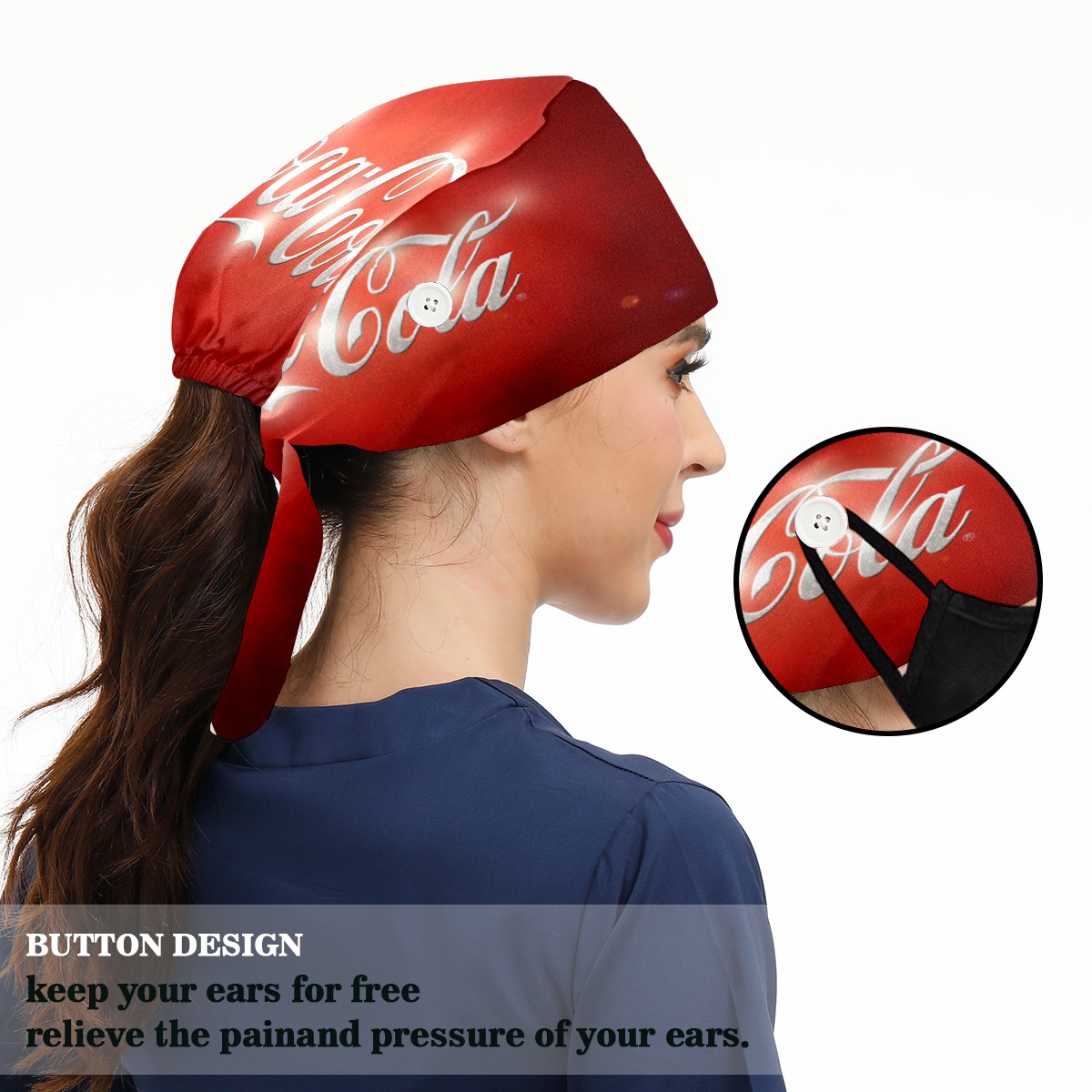 Fashion Working Cap Button and Sweatband Adjustable Elastic Coca-Cola In Red Head Cover Hair Tie Back Work Hats for Women Men