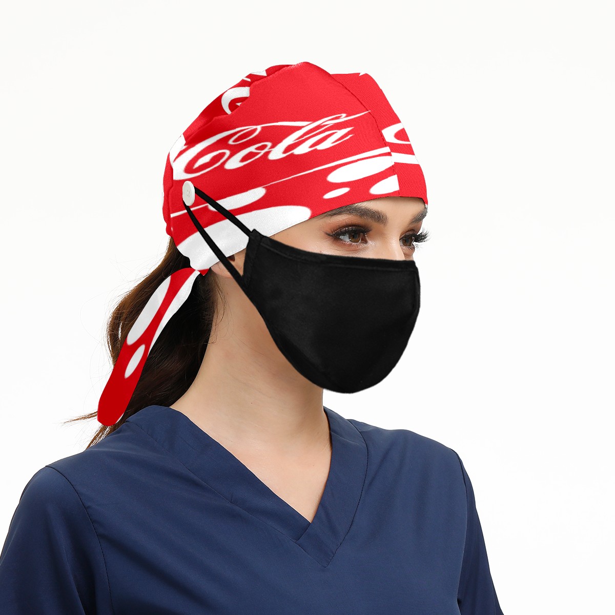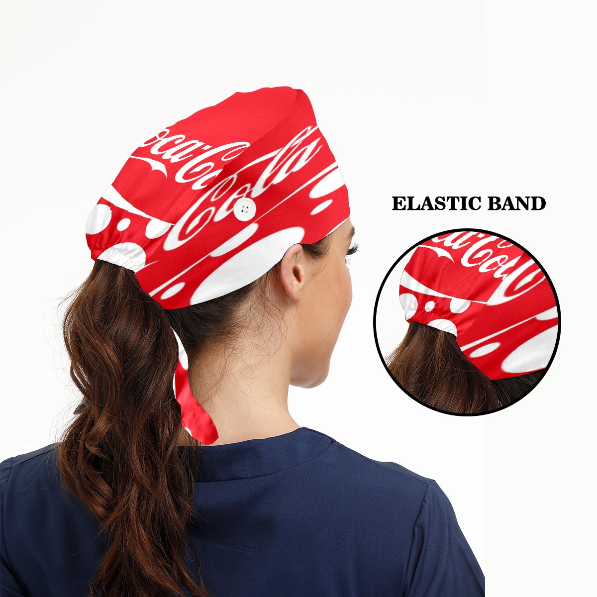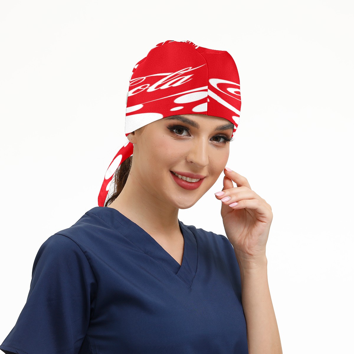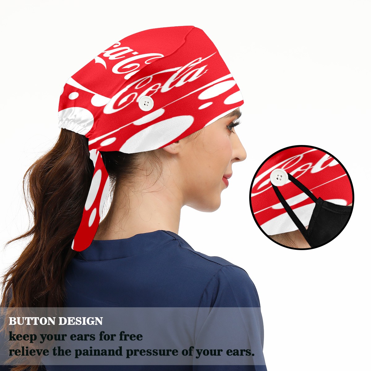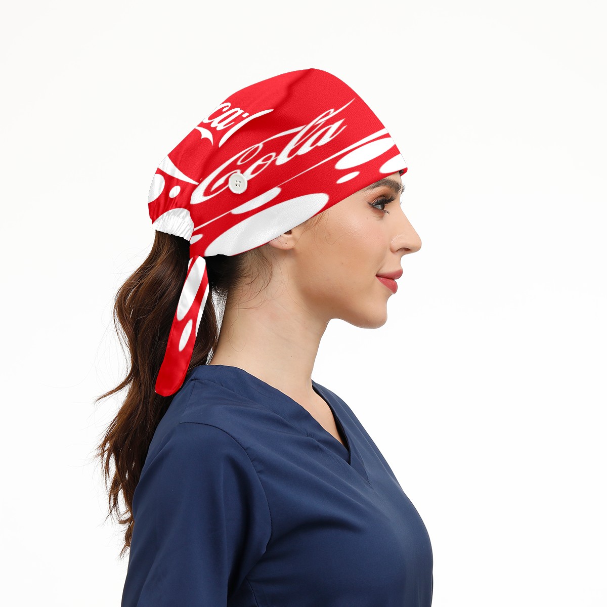 Fashion Working Cap Button and Sweatband Adjustable Elastic Coca-Cola Polka Dot Head Cover Hair Tie Back Work Hats for Women Men