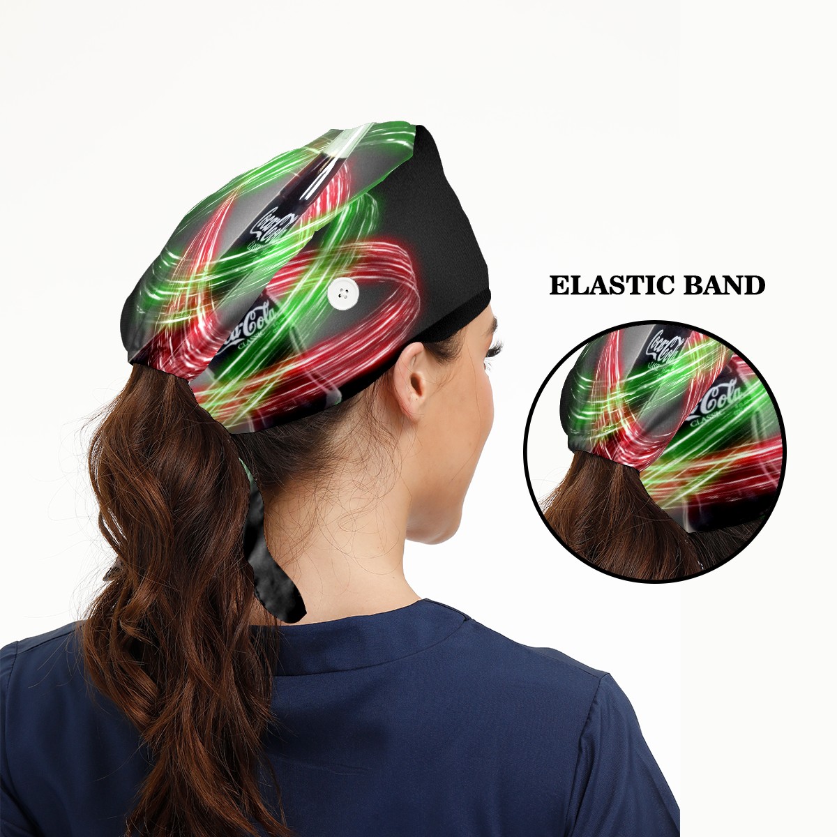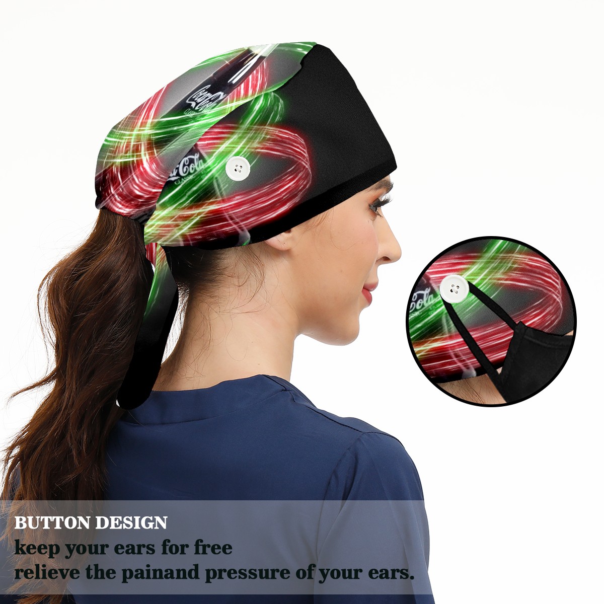 Fashion Working Cap Button and Sweatband Adjustable Elastic Coca-Cola Circle Around Head Cover Hair Tie Back Work Hats for Women Men