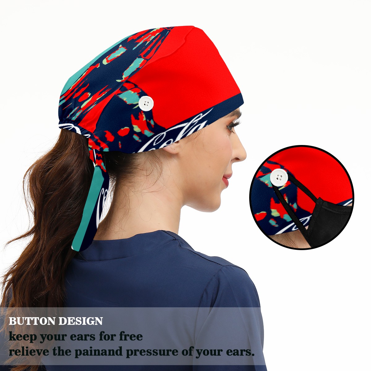 • <p>Women and Mens head cover with Sweatband and Button</p><p>Material&nbsp;: 50% cotton+50% polyester</p><p>Size:&nbsp;One size fits most,&nbsp;suitable for both men and women.</p><p>Working Cap with Buttons Design:special&nbsp;design with buttons to protect ears for those who are wearing ma-sk. These new styles hats will allow you to put the straps around the buttons instead of your ears, make you feel more comfortable.</p><p>Sweat-absorbent towel cloth inside: Built-in&nbsp;100% cotton sweatband, keep the forehead clean after long time working.</p><p>Widely occasion: Widely used in beauty spa, house cleaning, cooking, sleeping, or for cos-play&nbsp;party.</p><p>Lovely pattern: lovely&nbsp;3D printed&nbsp;pattern,&nbsp;it's perfect for gift to you family&nbsp;and friends.</p>