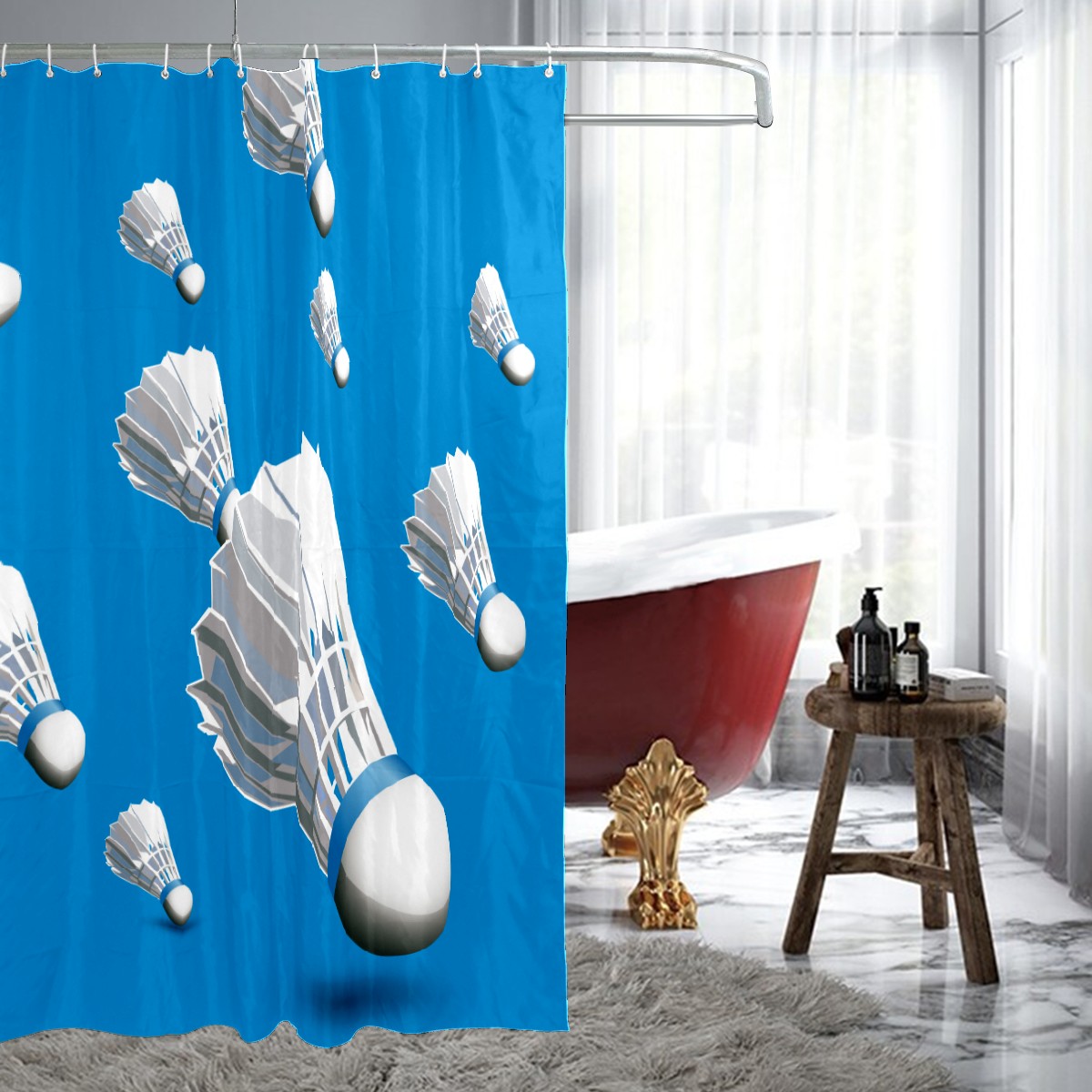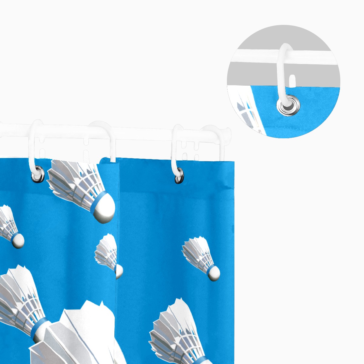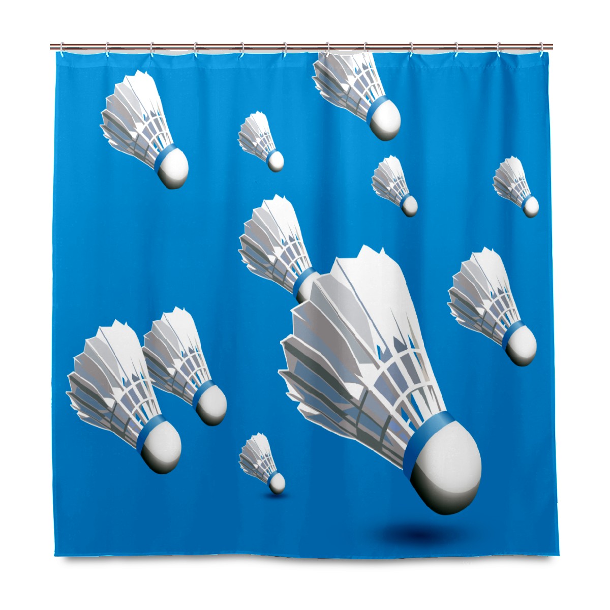 Shower Curtains for Bathroom Sport Badminton Ball Blue Waterproof Polyester Fabric 60 x 72 inches Decor Bathroom Curtains for Girls Boys with 12 Hooks