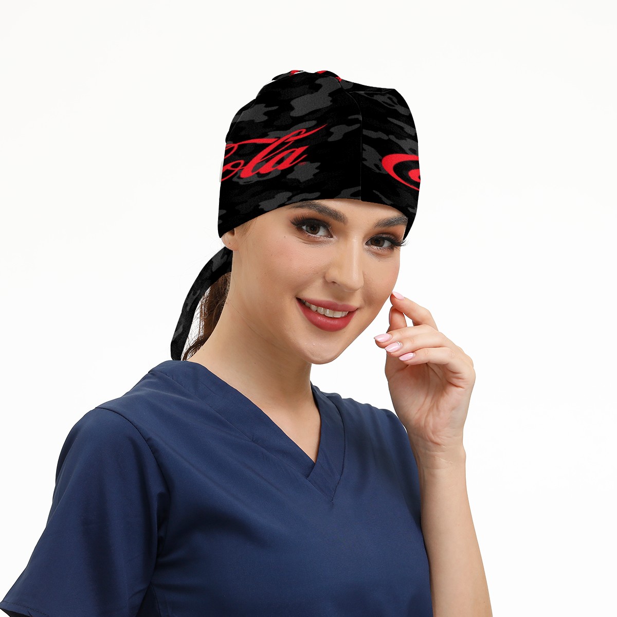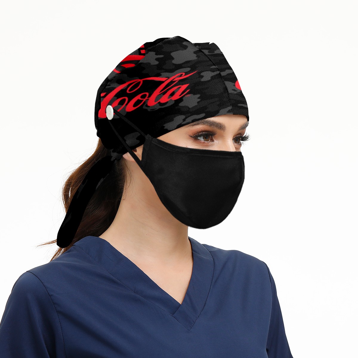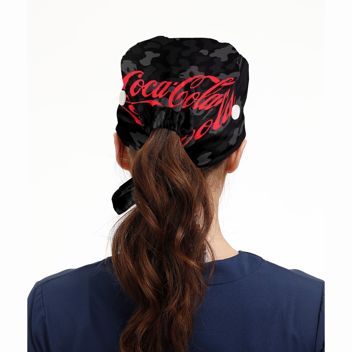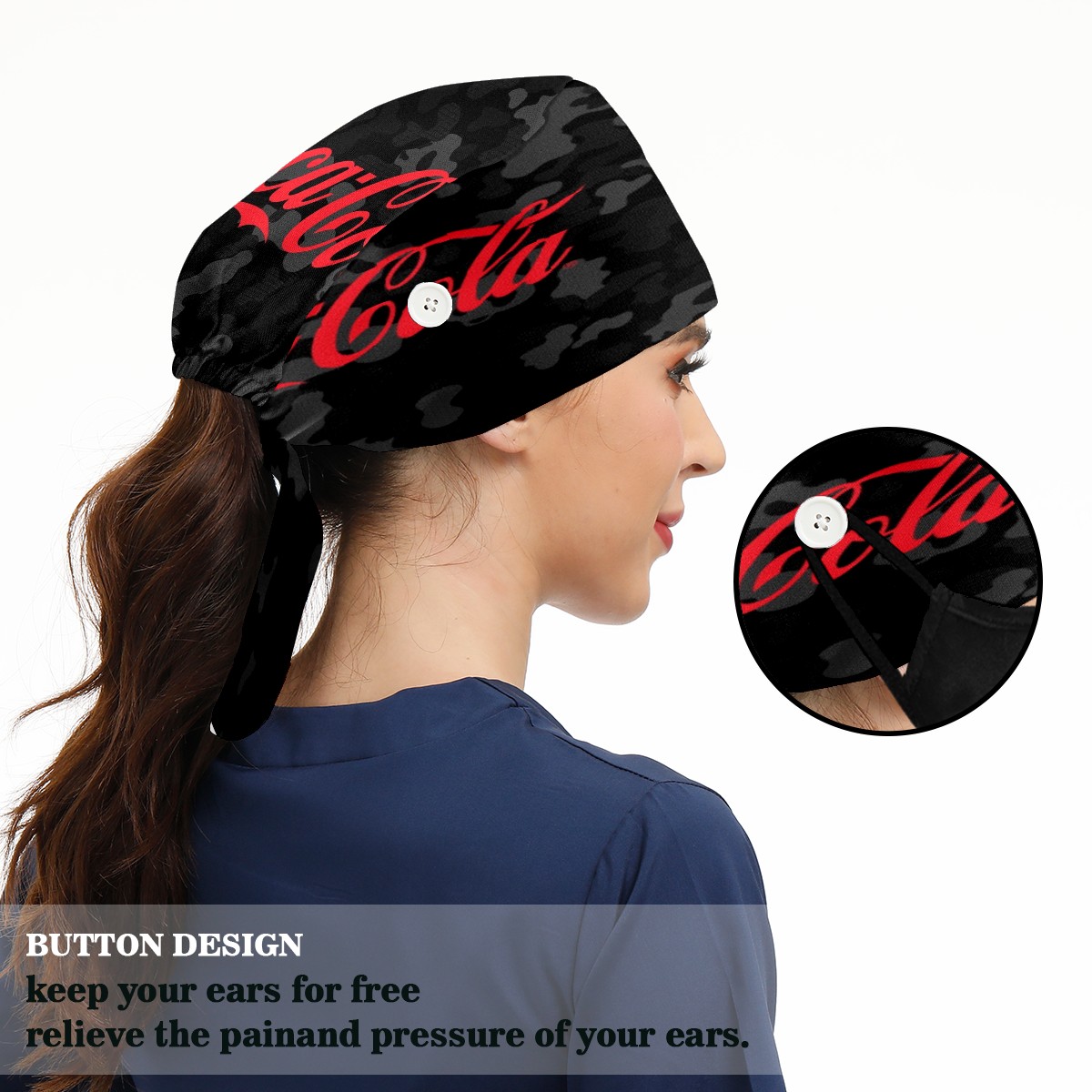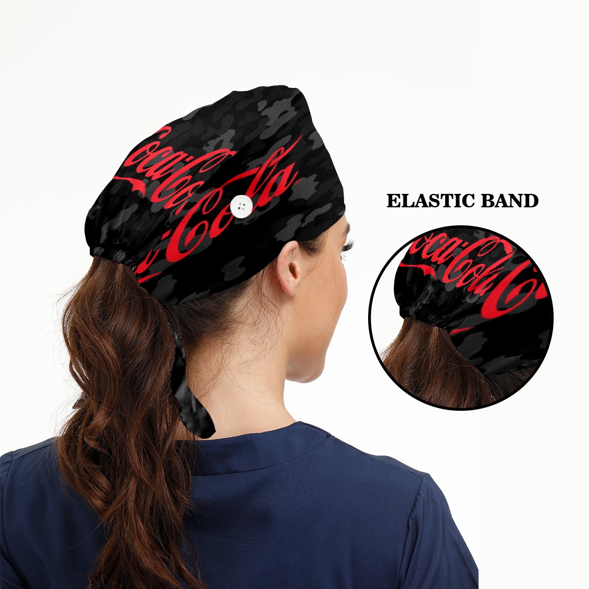 Fashion Working Cap Button and Sweatband Adjustable Elastic Coca Cola On Black Camouflage Head Cover Hair Tie Back Work Hats for Women Men