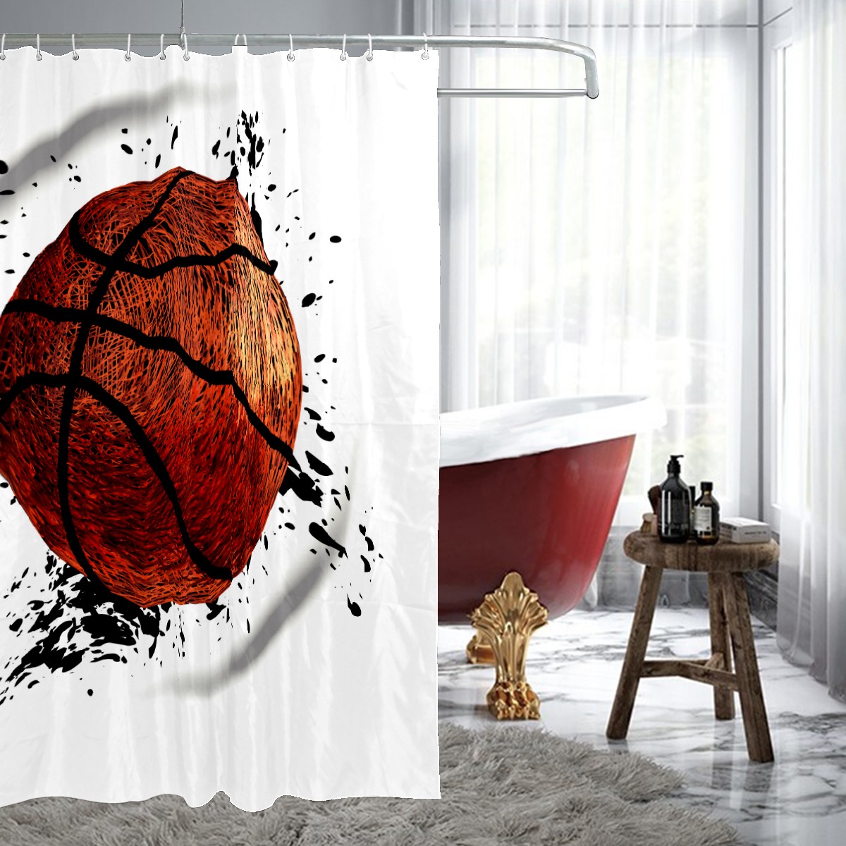 Shower Curtains for Bathroom Retro Sport Basketball Waterproof Polyester Fabric 60 x 72 inches Decor Bathroom Curtains for Girls Boys with 12 Hooks