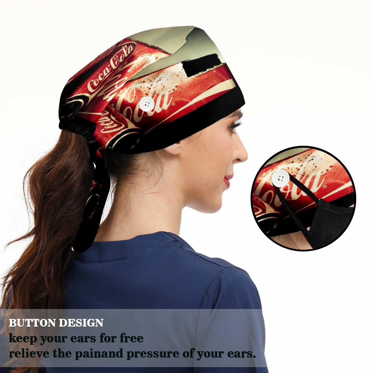 <p>Women and Mens head cover with Sweatband and Button</p><p>Material&nbsp;: 50% cotton+50% polyester</p><p>Size:&nbsp;One size fits most,&nbsp;suitable for both men and women.</p><p>Working Cap with Buttons Design:special&nbsp;design with buttons to protect ears for those who are wearing ma-sk. These new styles hats will allow you to put the straps around the buttons instead of your ears, make you feel more comfortable.</p><p>Sweat-absorbent towel cloth inside: Built-in&nbsp;100% cotton sweatband, keep the forehead clean after long time working.</p><p>Widely occasion: Widely used in beauty spa, house cleaning, cooking, sleeping, or for cos-play&nbsp;party.</p><p>Lovely pattern: lovely&nbsp;3D printed&nbsp;pattern,&nbsp;it's perfect for gift to you family&nbsp;and friends.</p>