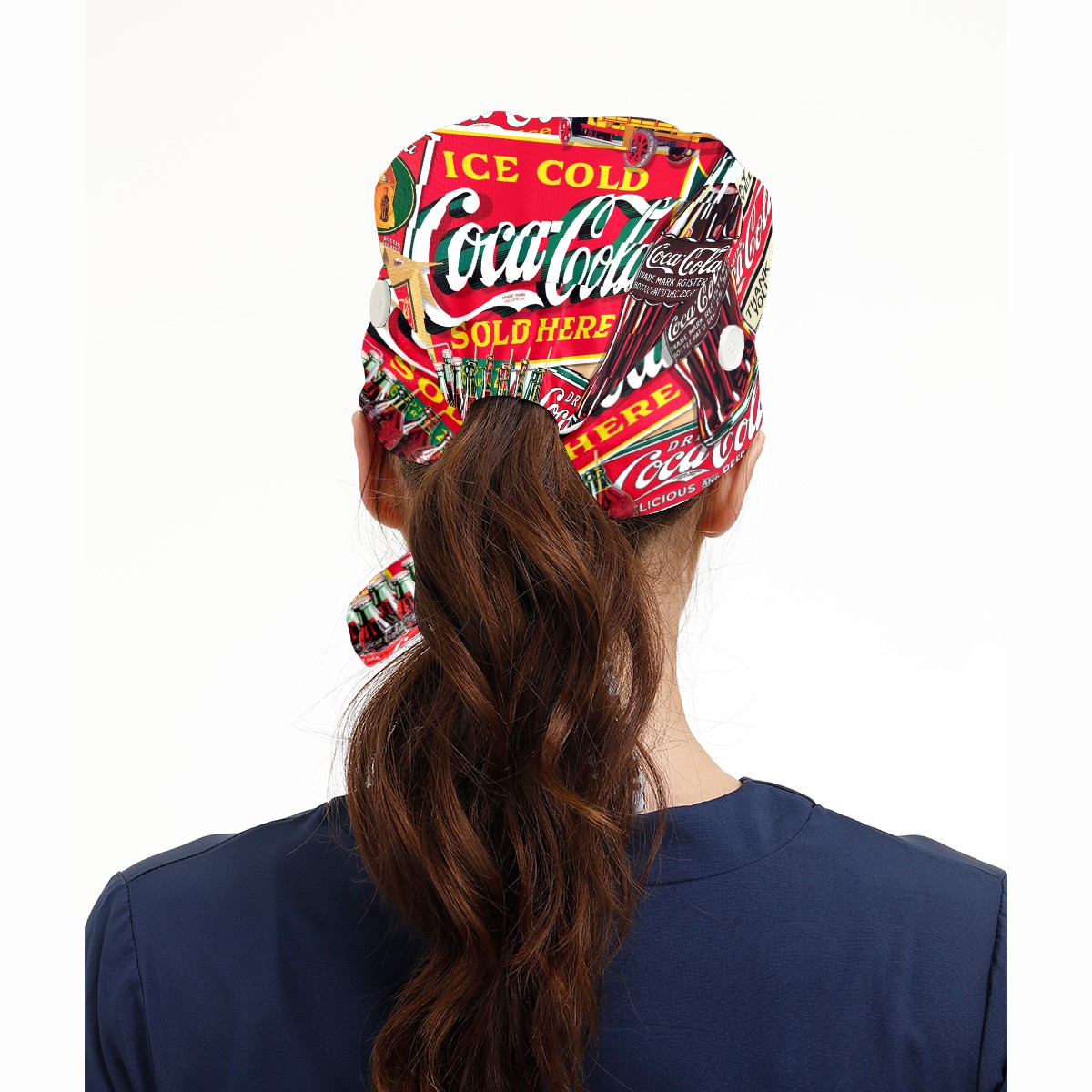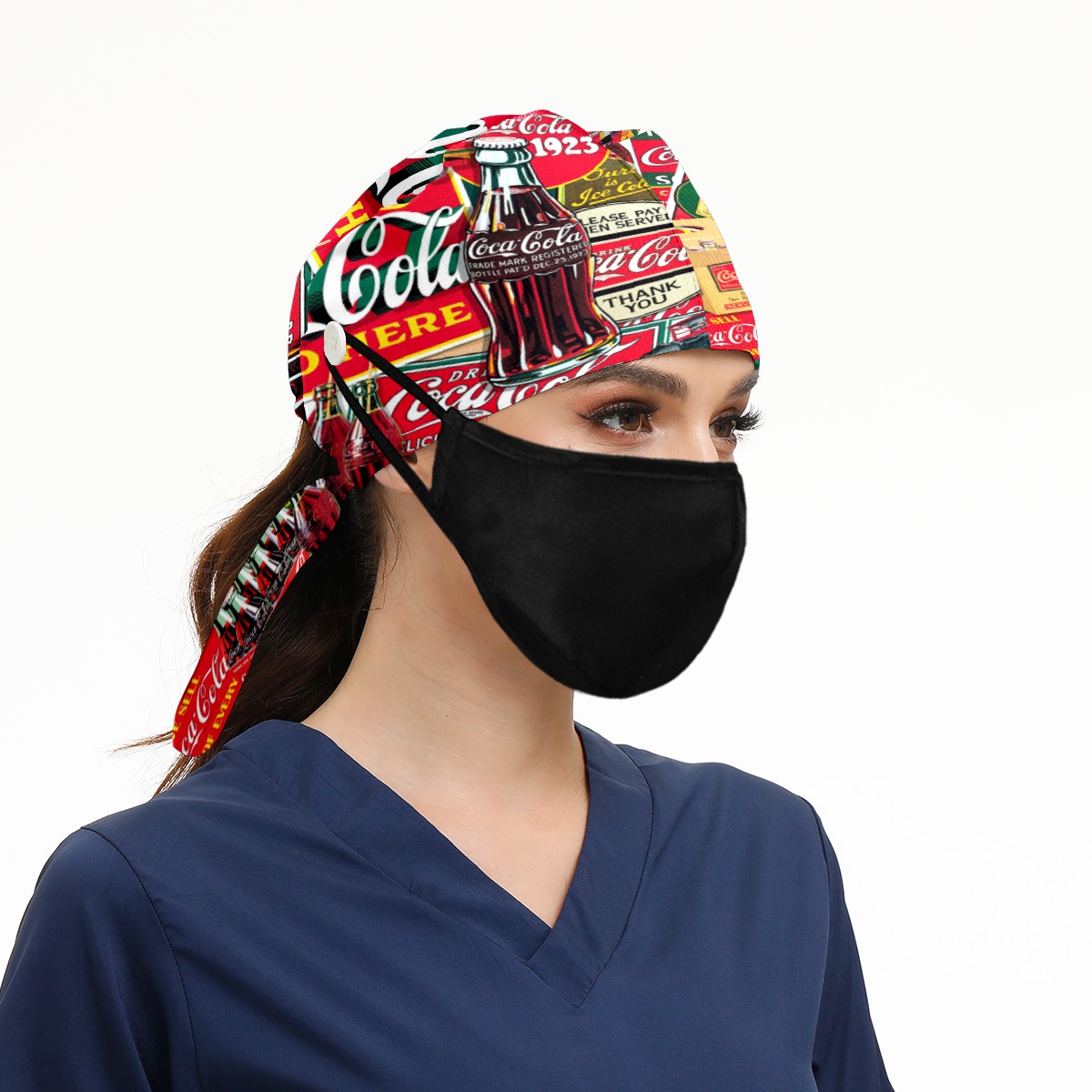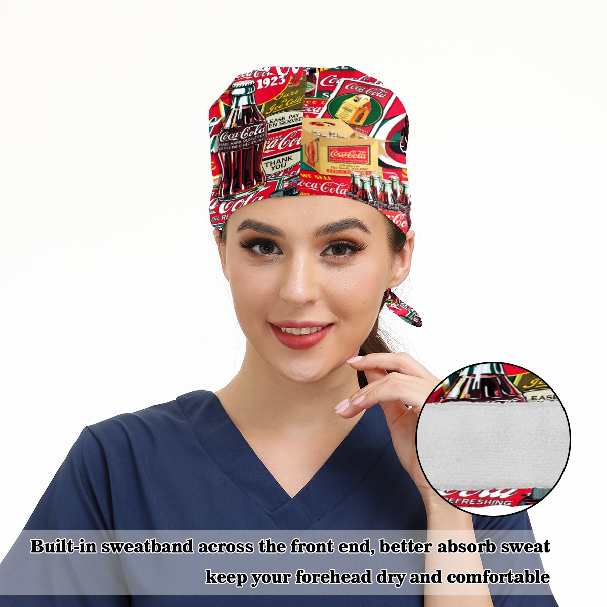 Fashion Working Cap Button and Sweatband Adjustable Elastic Coca Cola Bottle Poster Head Cover Hair Tie Back Work Hats for Women Men