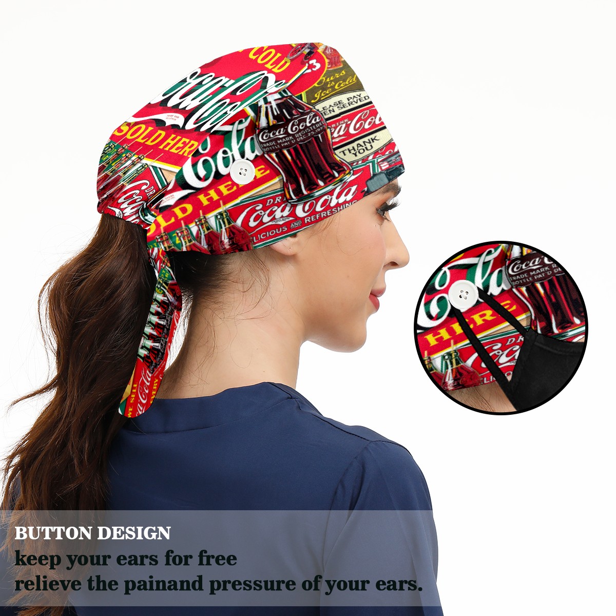 • <p>Women and Mens head cover with Sweatband and Button</p><p>Material&nbsp;: 50% cotton+50% polyester</p><p>Size:&nbsp;One size fits most,&nbsp;suitable for both men and women.</p><p>Working Cap with Buttons Design:special&nbsp;design with buttons to protect ears for those who are wearing ma-sk. These new styles hats will allow you to put the straps around the buttons instead of your ears, make you feel more comfortable.</p><p>Sweat-absorbent towel cloth inside: Built-in&nbsp;100% cotton sweatband, keep the forehead clean after long time working.</p><p>Widely occasion: Widely used in beauty spa, house cleaning, cooking, sleeping, or for cos-play&nbsp;party.</p><p>Lovely pattern: lovely&nbsp;3D printed&nbsp;pattern,&nbsp;it's perfect for gift to you family&nbsp;and friends.</p>