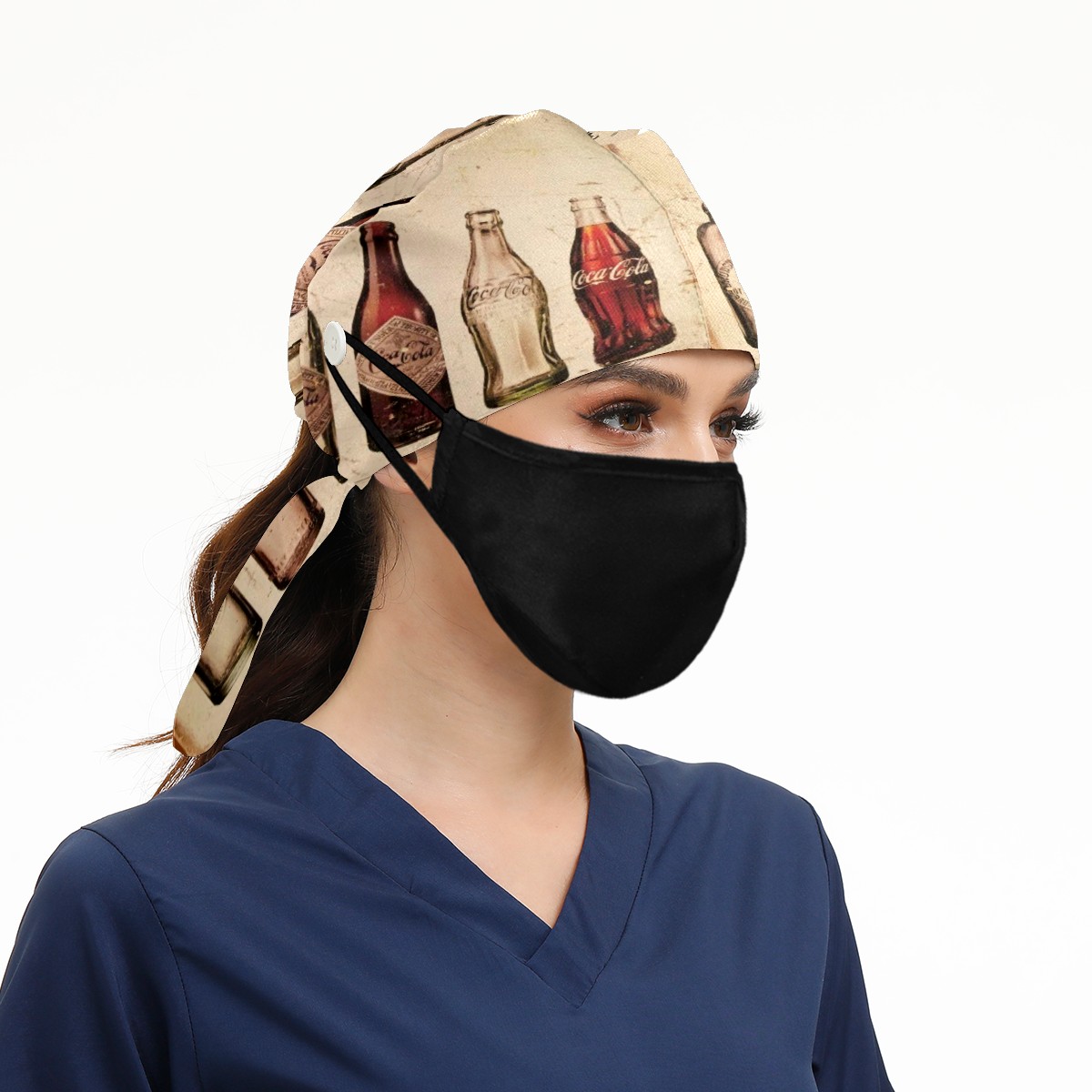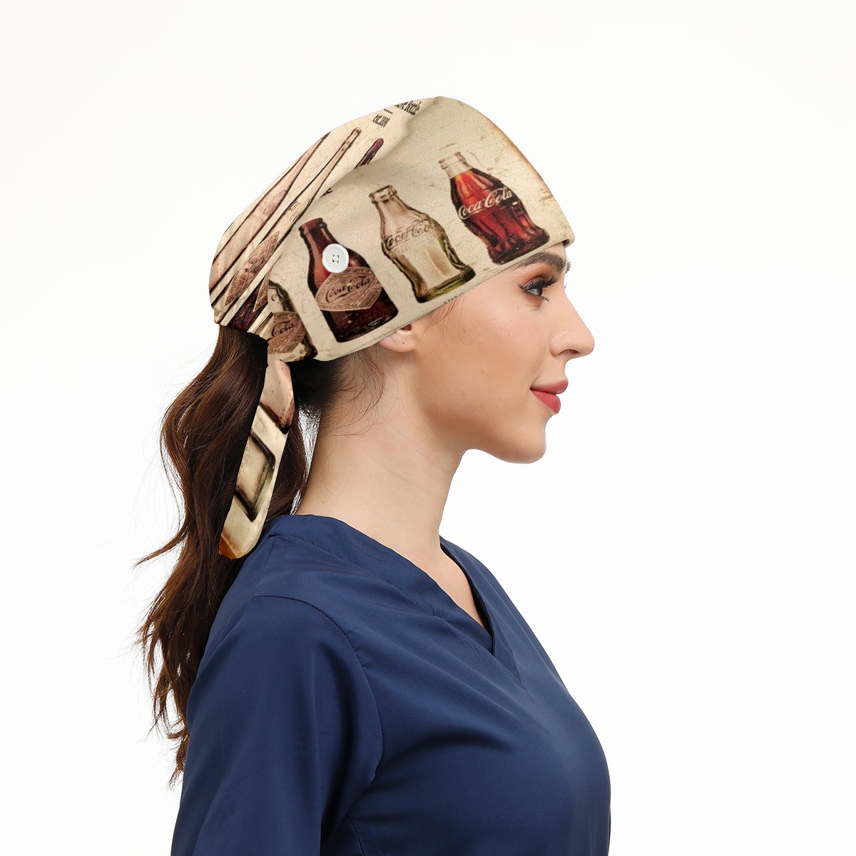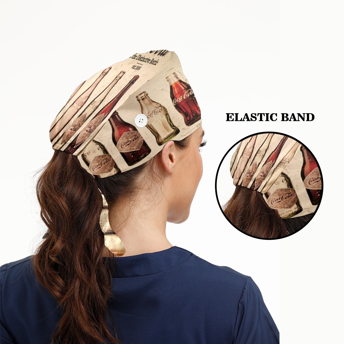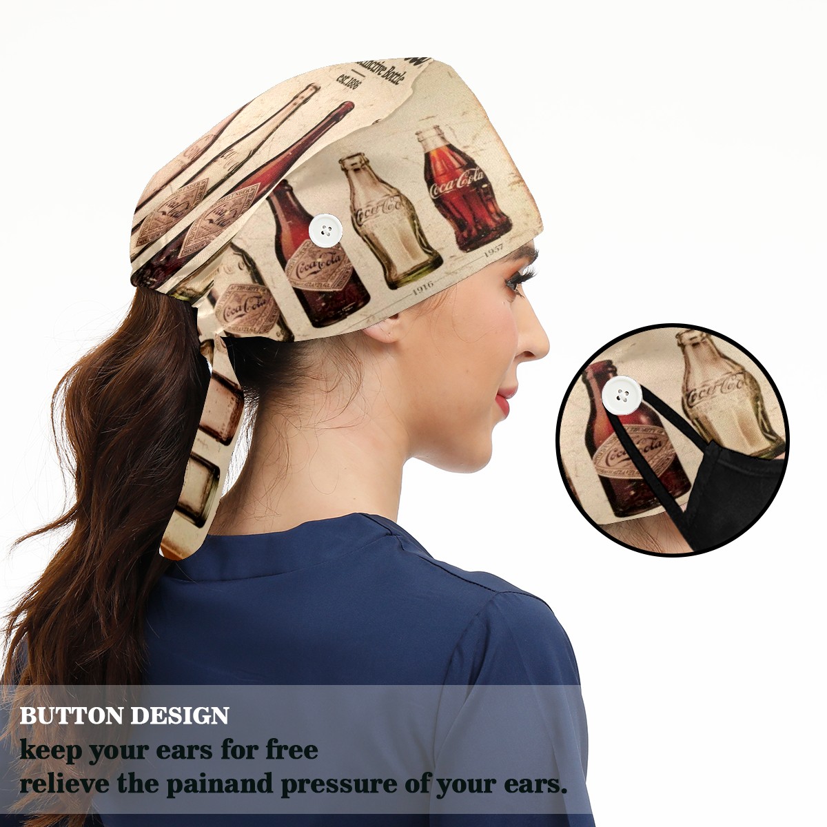 Fashion Working Cap Button and Sweatband Adjustable Elastic Vinatge Coca Cola History Retro Head Cover Hair Tie Back Work Hats for Women Men