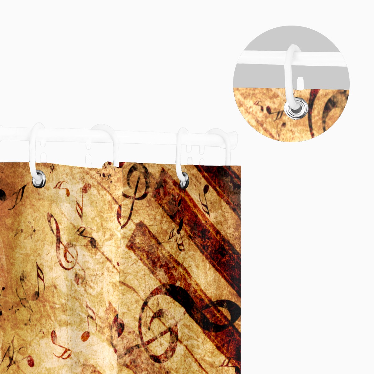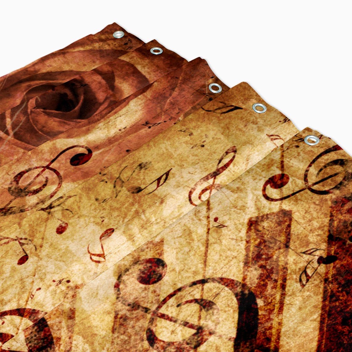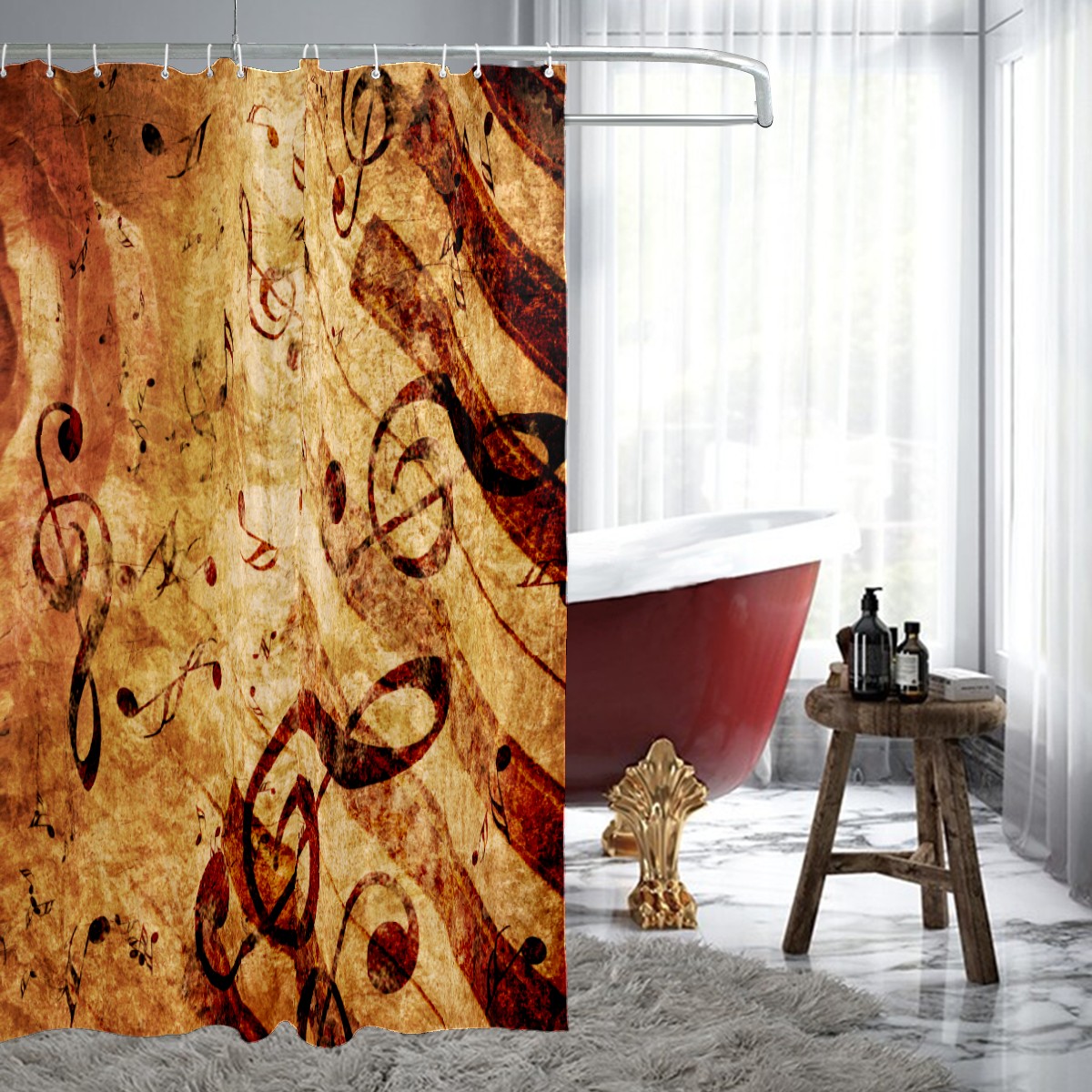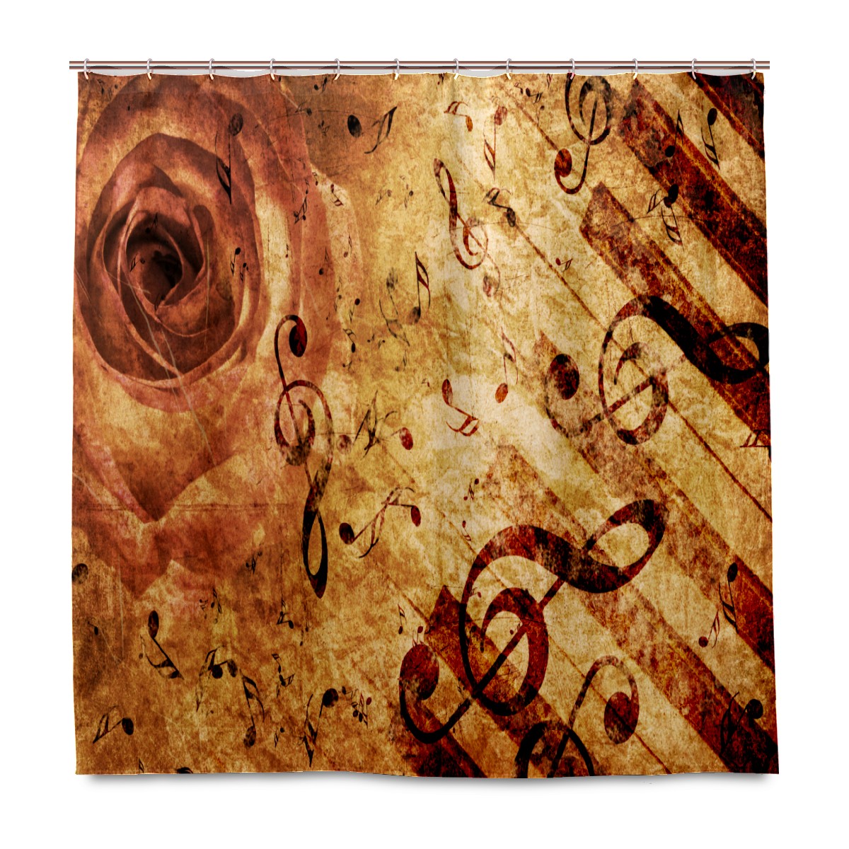 Shower Curtains for Bathroom Retro Rustic Musical Notes Rose Waterproof Polyester Fabric 60 x 72 inches Decor Bathroom Curtains for Girls Boys with 12 Hooks