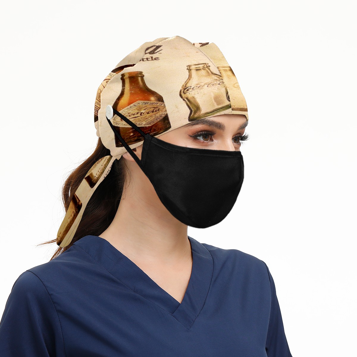 <p>Women and Mens head cover with Sweatband and Button</p><p>Material&nbsp;: 50% cotton+50% polyester</p><p>Size:&nbsp;One size fits most,&nbsp;suitable for both men and women.</p><p>Working Cap with Buttons Design:special&nbsp;design with buttons to protect ears for those who are wearing ma-sk. These new styles hats will allow you to put the straps around the buttons instead of your ears, make you feel more comfortable.</p><p>Sweat-absorbent towel cloth inside: Built-in&nbsp;100% cotton sweatband, keep the forehead clean after long time working.</p><p>Widely occasion: Widely used in beauty spa, house cleaning, cooking, sleeping, or for cos-play&nbsp;party.</p><p>Lovely pattern: lovely&nbsp;3D printed&nbsp;pattern,&nbsp;it's perfect for gift to you family&nbsp;and friends.</p>