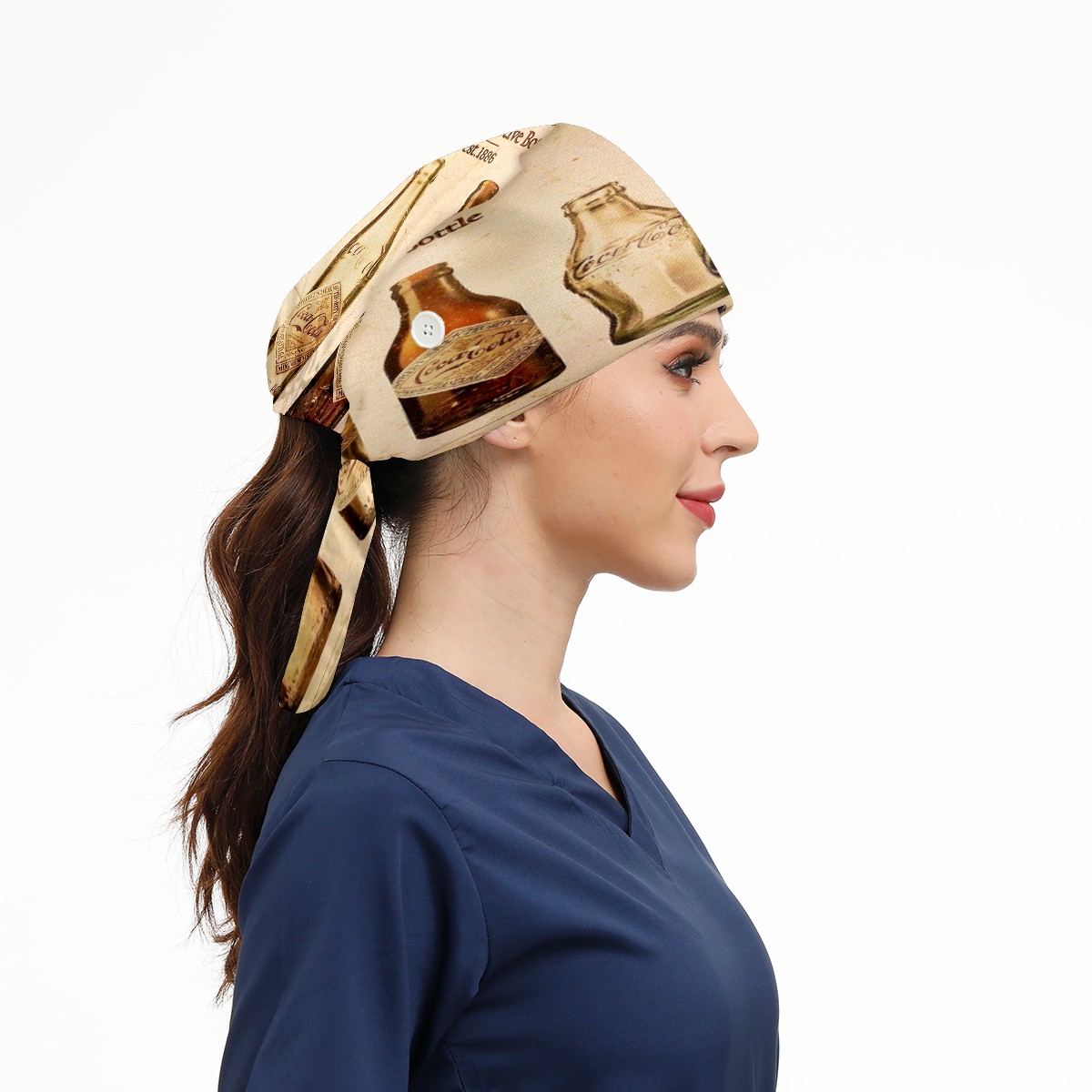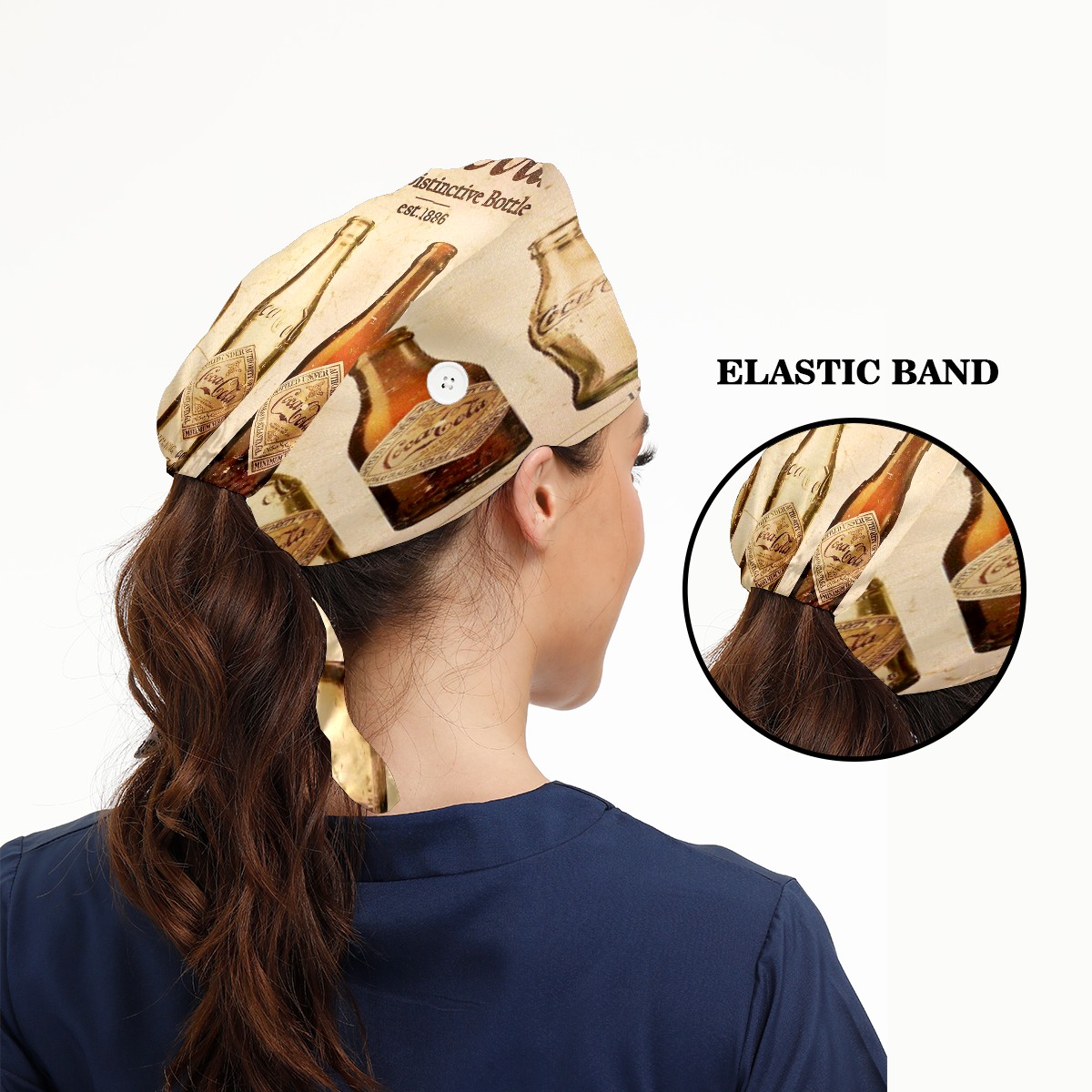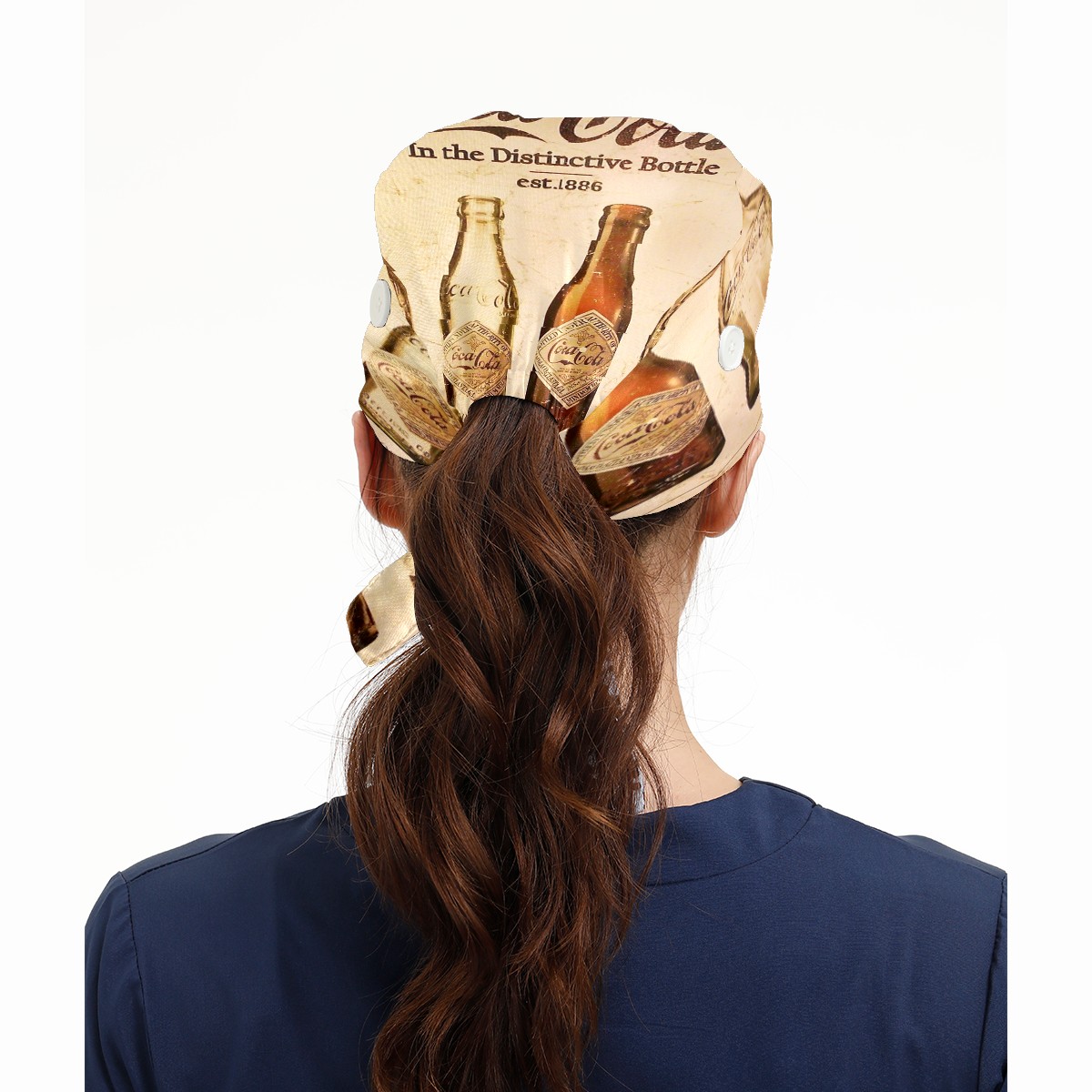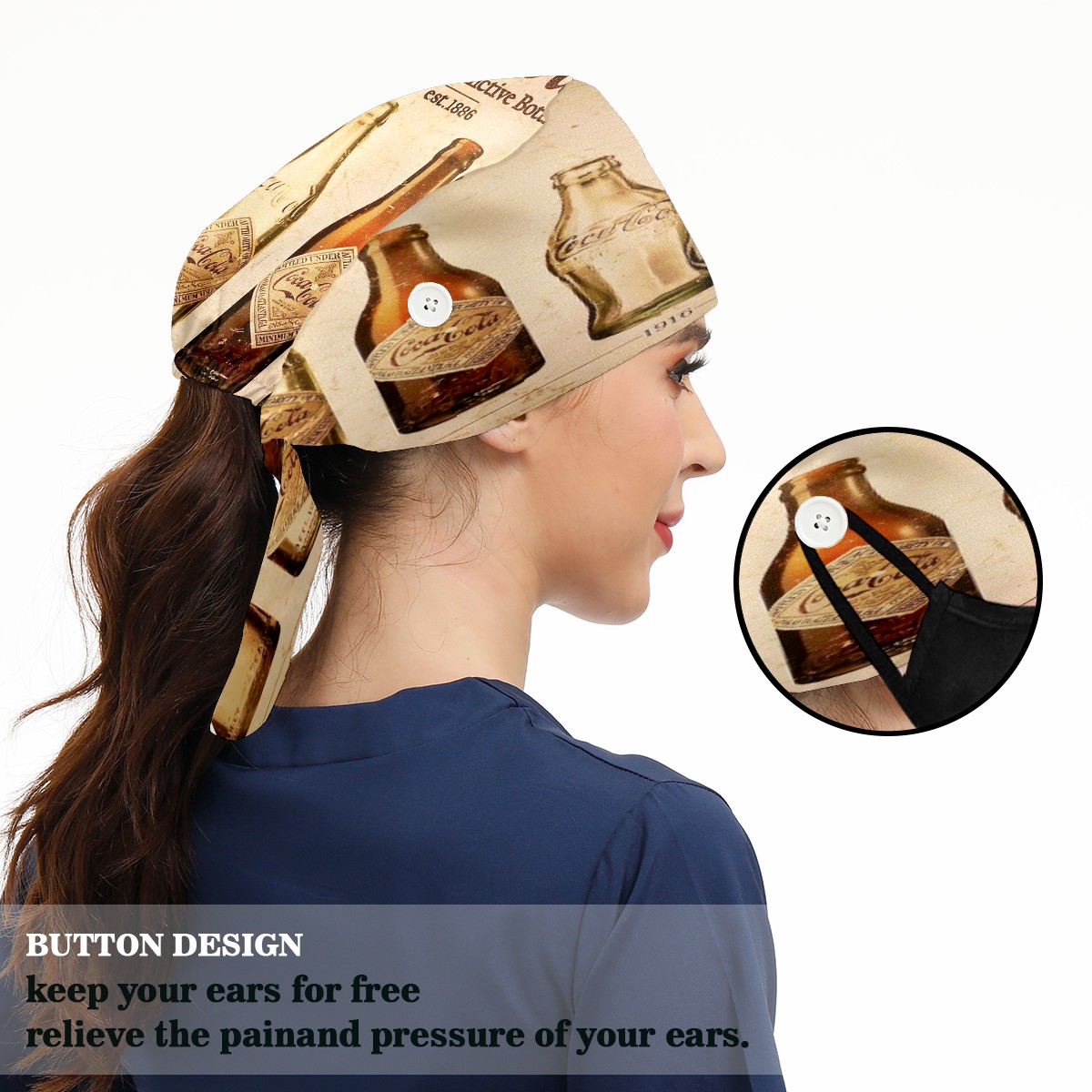 Fashion Working Cap Button and Sweatband Adjustable Elastic Retro Vintage Coca Cola History Head Cover Hair Tie Back Work Hats for Women Men