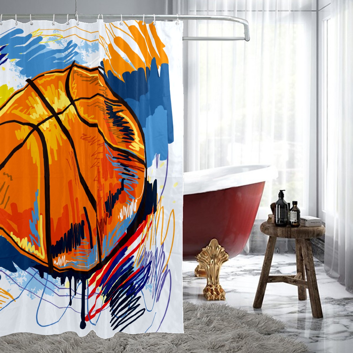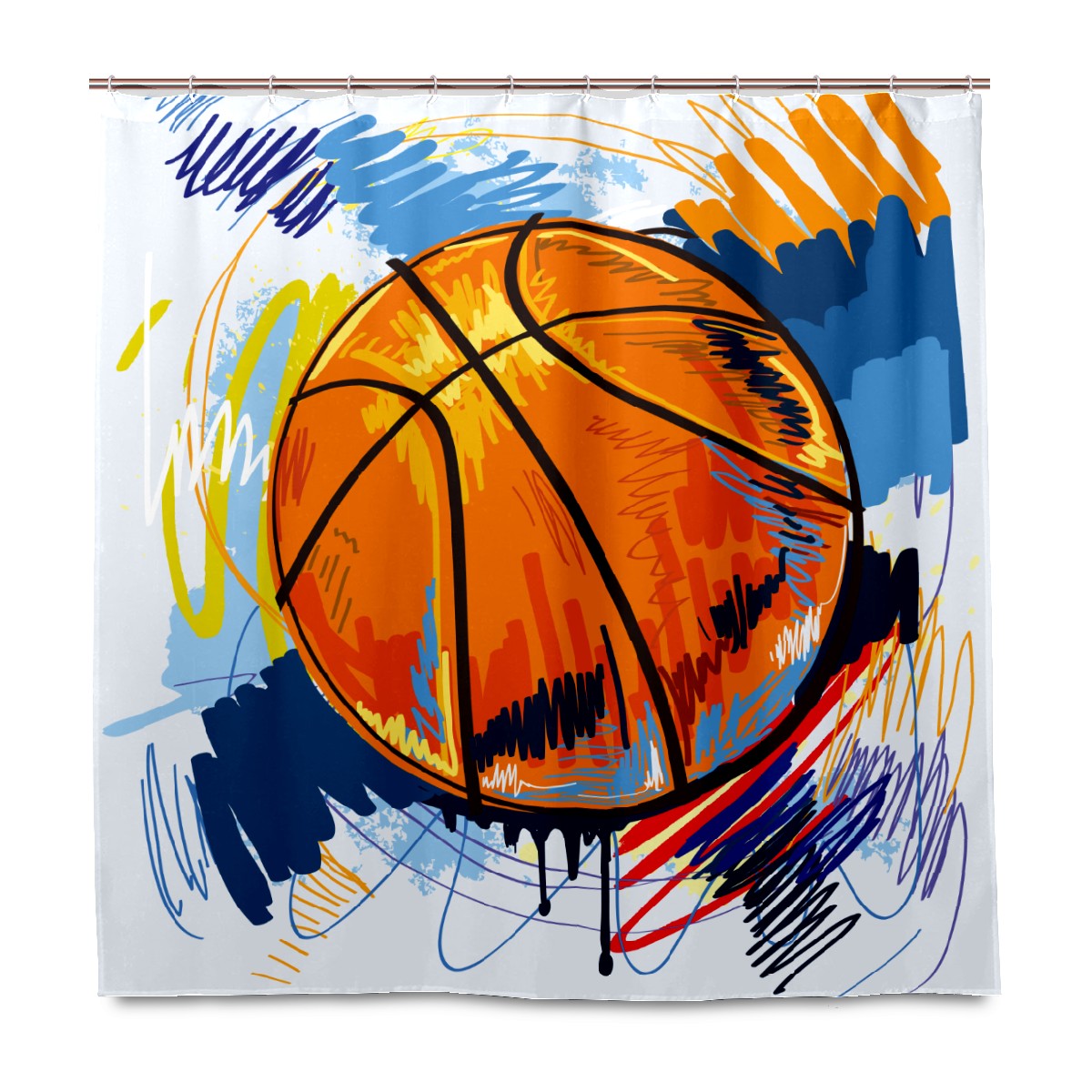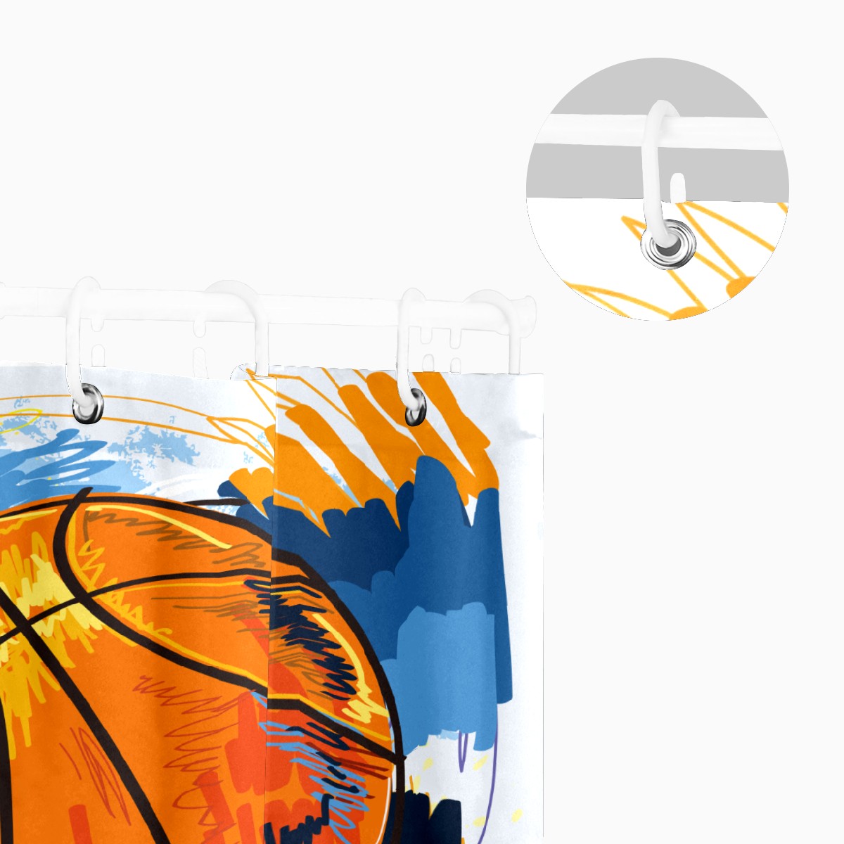 Shower Curtains for Bathroom Retro Sport Basketball Art Painting Waterproof Polyester Fabric 60 x 72 inches Decor Bathroom Curtains for Girls Boys with 12 Hooks