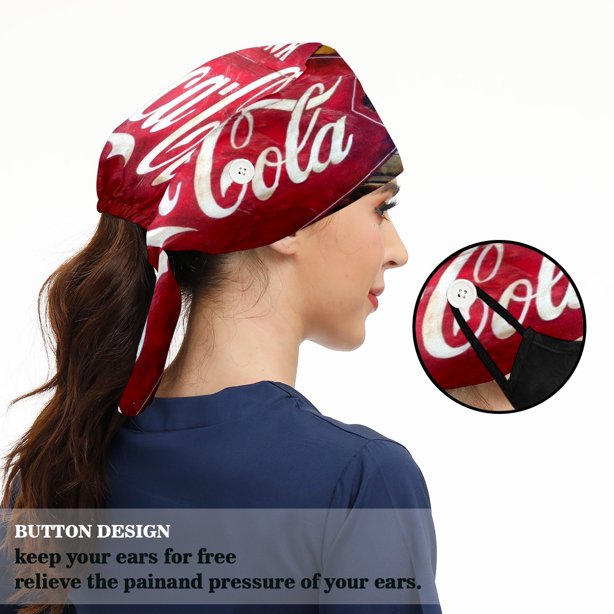 <p>Women and Mens head cover with Sweatband and Button</p><p>Material&nbsp;: 50% cotton+50% polyester</p><p>Size:&nbsp;One size fits most,&nbsp;suitable for both men and women.</p><p>Working Cap with Buttons Design:special&nbsp;design with buttons to protect ears for those who are wearing ma-sk. These new styles hats will allow you to put the straps around the buttons instead of your ears, make you feel more comfortable.</p><p>Sweat-absorbent towel cloth inside: Built-in&nbsp;100% cotton sweatband, keep the forehead clean after long time working.</p><p>Widely occasion: Widely used in beauty spa, house cleaning, cooking, sleeping, or for cos-play&nbsp;party.</p><p>Lovely pattern: lovely&nbsp;3D printed&nbsp;pattern,&nbsp;it's perfect for gift to you family&nbsp;and friends.</p>