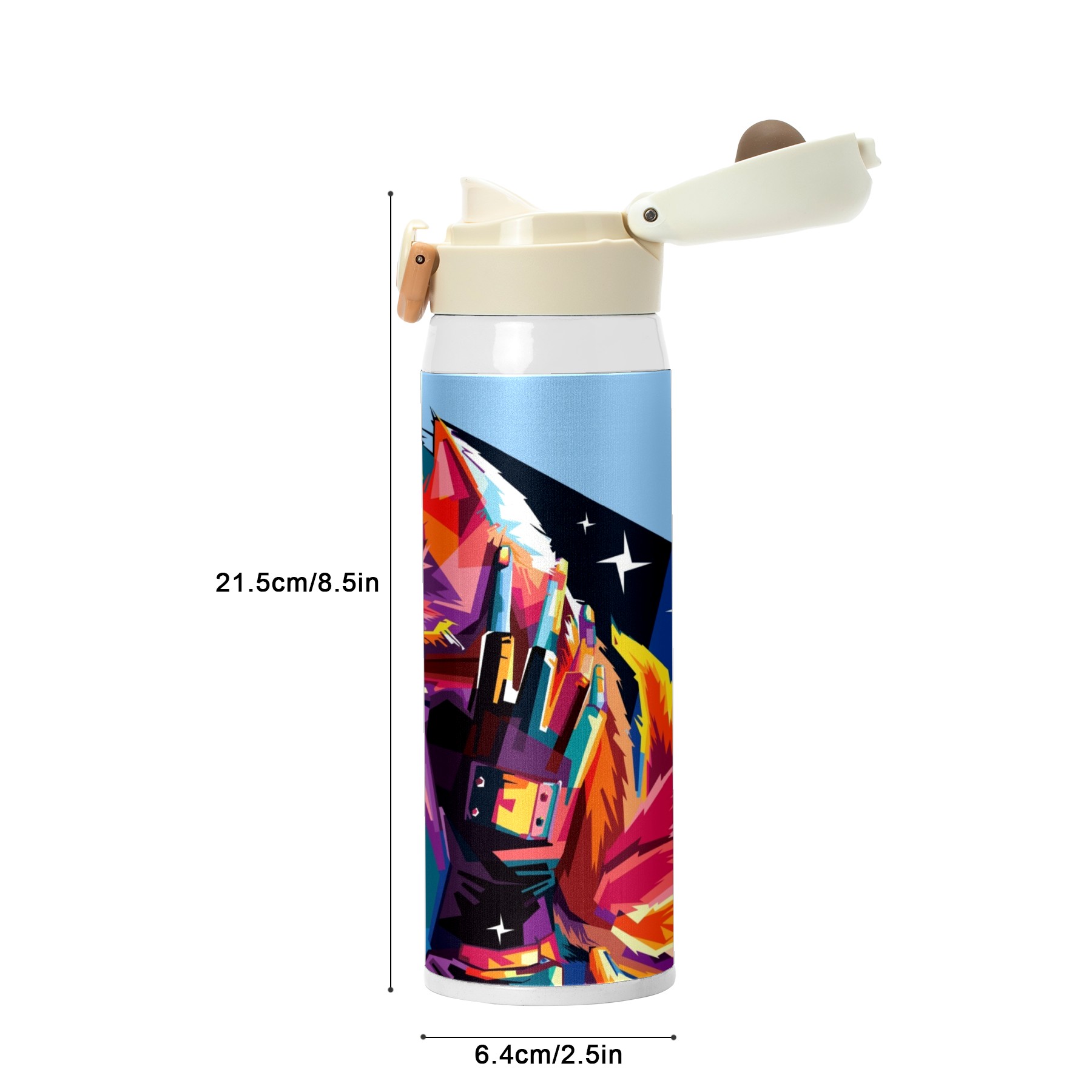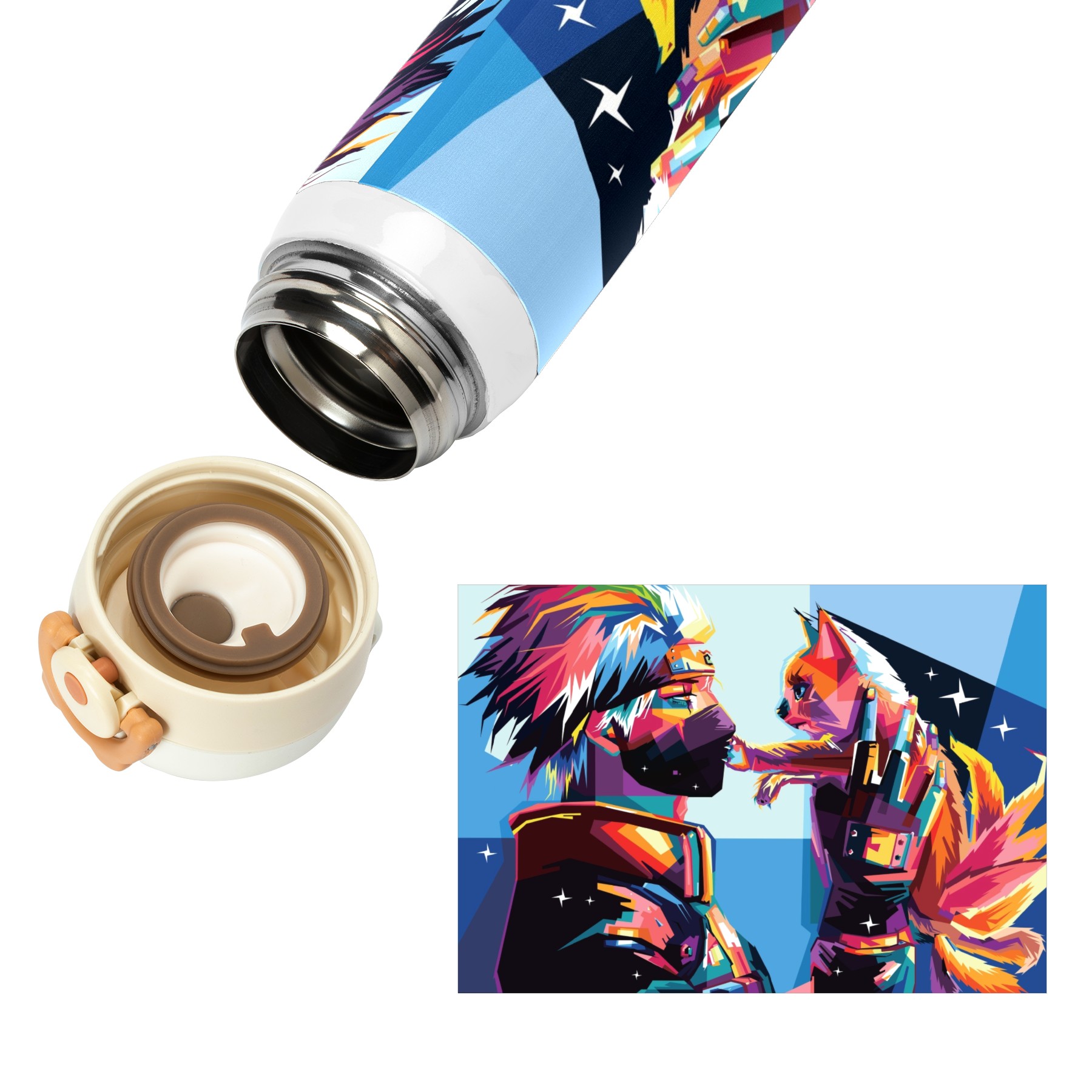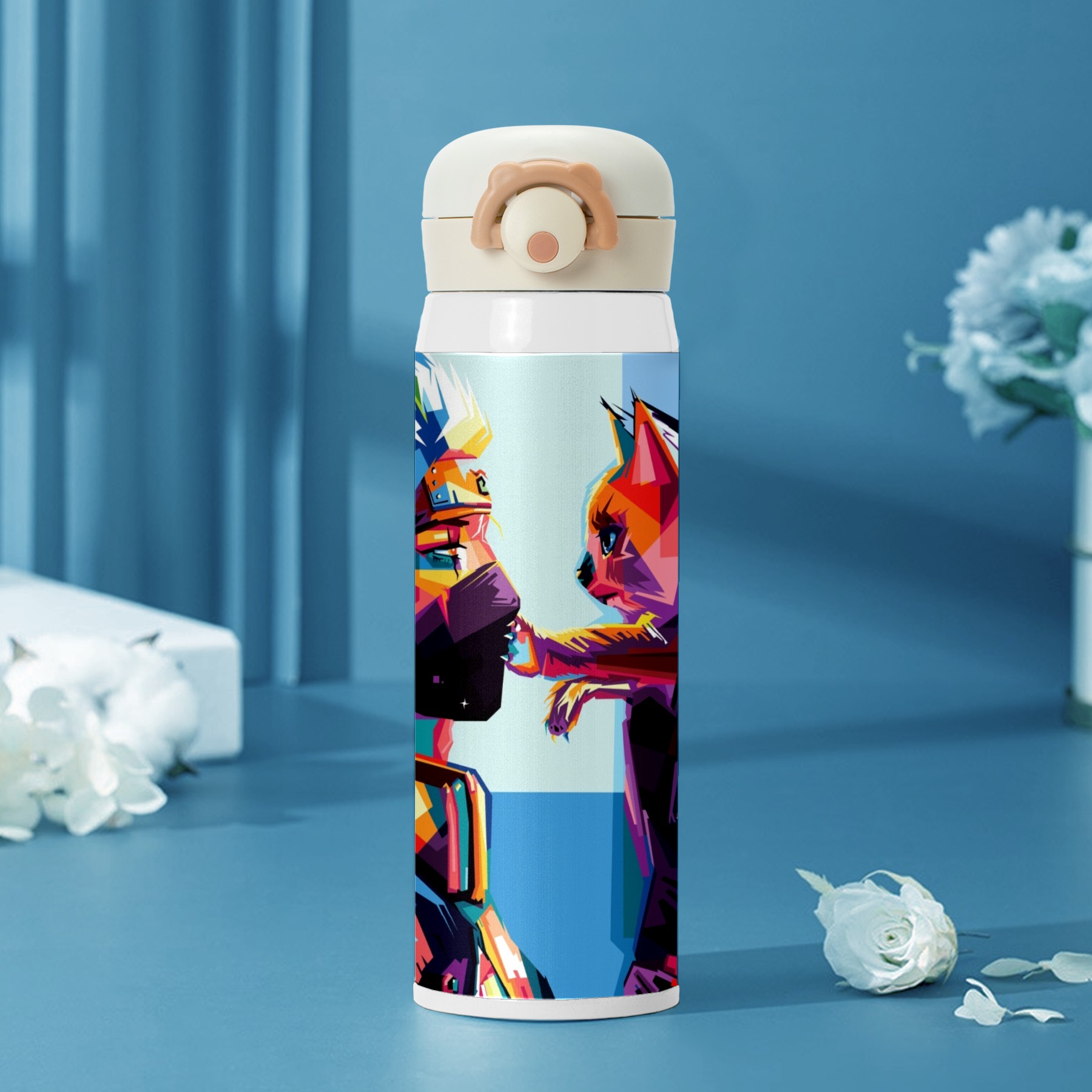 • <p><b>Cute&amp;Cool Water Bottle with Anime Cartoon design that makes you fall in love with drinking water!</b></p><p>&nbsp;</p><p><b>Double lock temperature technology</b>: Keep your drink hot for 12 hours and cold for 24 hours, make should every slip tastes great and fresh.</p><p>&nbsp;</p><p><b>BPA Free safe healthy: </b>100% BPA-free 304 stainless steel water bottle Food-grade safe material that rests assured to drink.</p><p>&nbsp;</p><p><b>Chug-lid design:</b> Open it with the push of a button for one-handed drinking, convenient and practical, easy carrying on the go.</p><p>&nbsp;</p><ul><li>Material: Food grade 304 stainless steel</li><li>Size1: 8.5in*2.5in</li><li>Capacity: 500ml</li></ul><p>&nbsp;</p><p><b>Note to Dear Customers:</b></p><p>&nbsp;</p><p>1. Before use, clean both sides of the bottle in warm water, then pour water above 80℃ into the bottle and cover it tightly for 4 hours to deodorize.</p><p>&nbsp;</p><p>2. Under different display screens, there may be some color difference in the real object.</p><p>&nbsp;</p><p>3. Reassuring after-sales service, satisfactory service attitude.</p><p>&nbsp;</p><p>4. If you have any questions when purchasing, please contact us.&nbsp;</p>