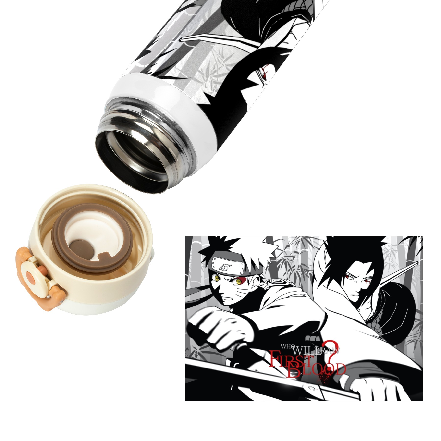 Naruto Uzumaki Uchiha Sasuke Water Bottle 17 oz Vacuum Insulated Water Bottle 304 Stainless Steel Thermo Mug Iron Flask Sports Water Bottle for School Office