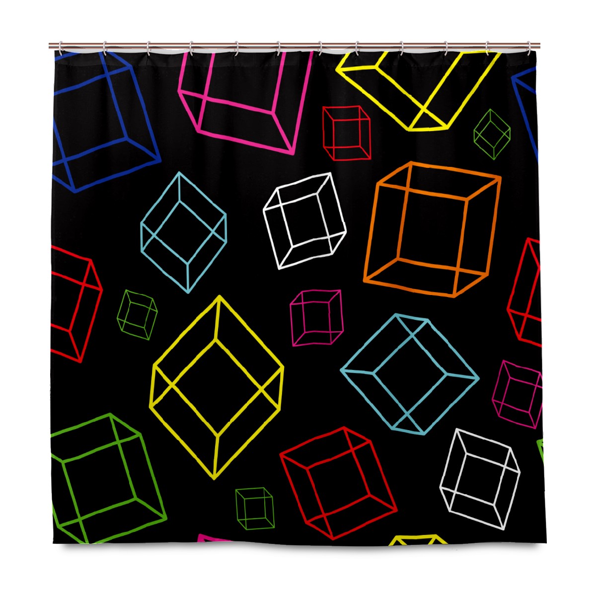 Shower Curtains for Bathroom Modern Geometric School Colorful Pattern Waterproof Polyester Fabric 60 x 72 inches Decor Bathroom Curtains for Girls Boys with 12 Hooks