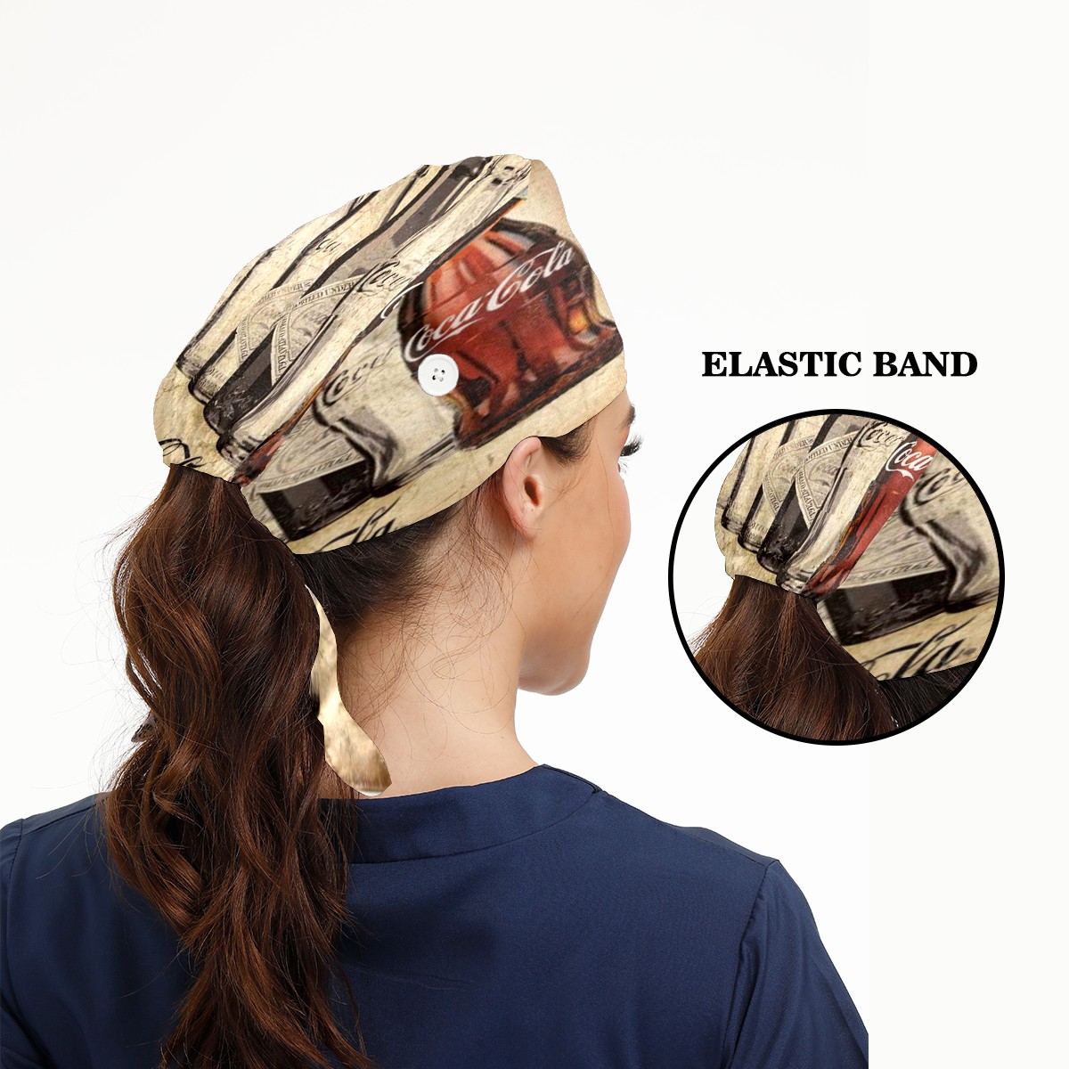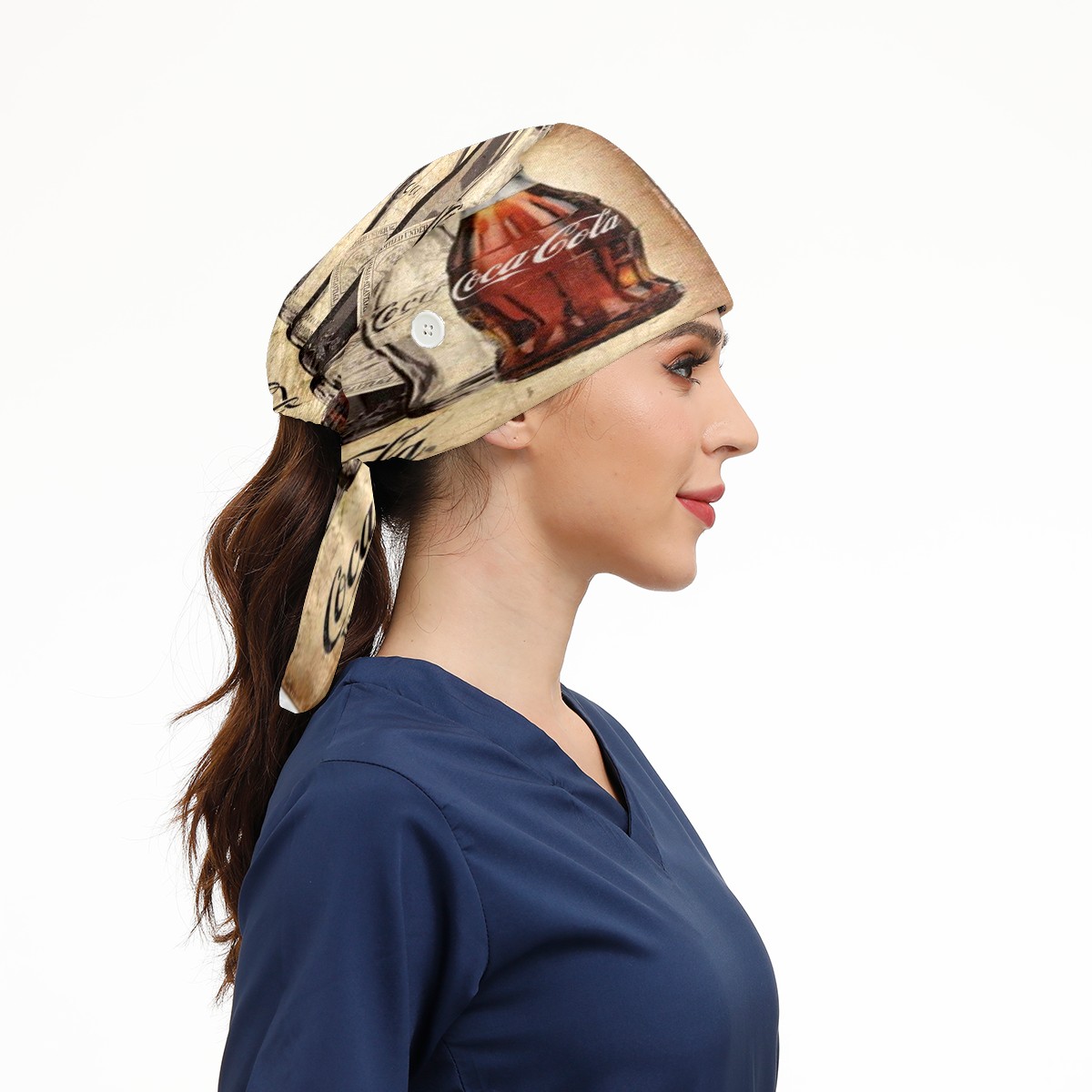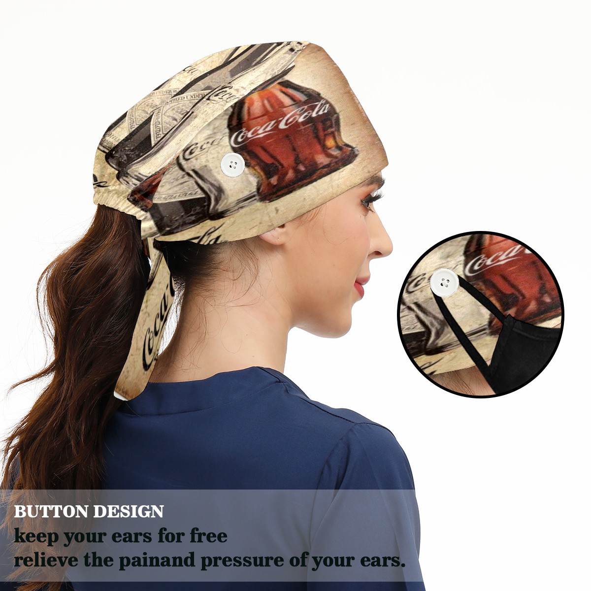 Fashion Working Cap Button and Sweatband Adjustable Elastic Retro Coca Cola Head Cover Hair Tie Back Work Hats for Women Men