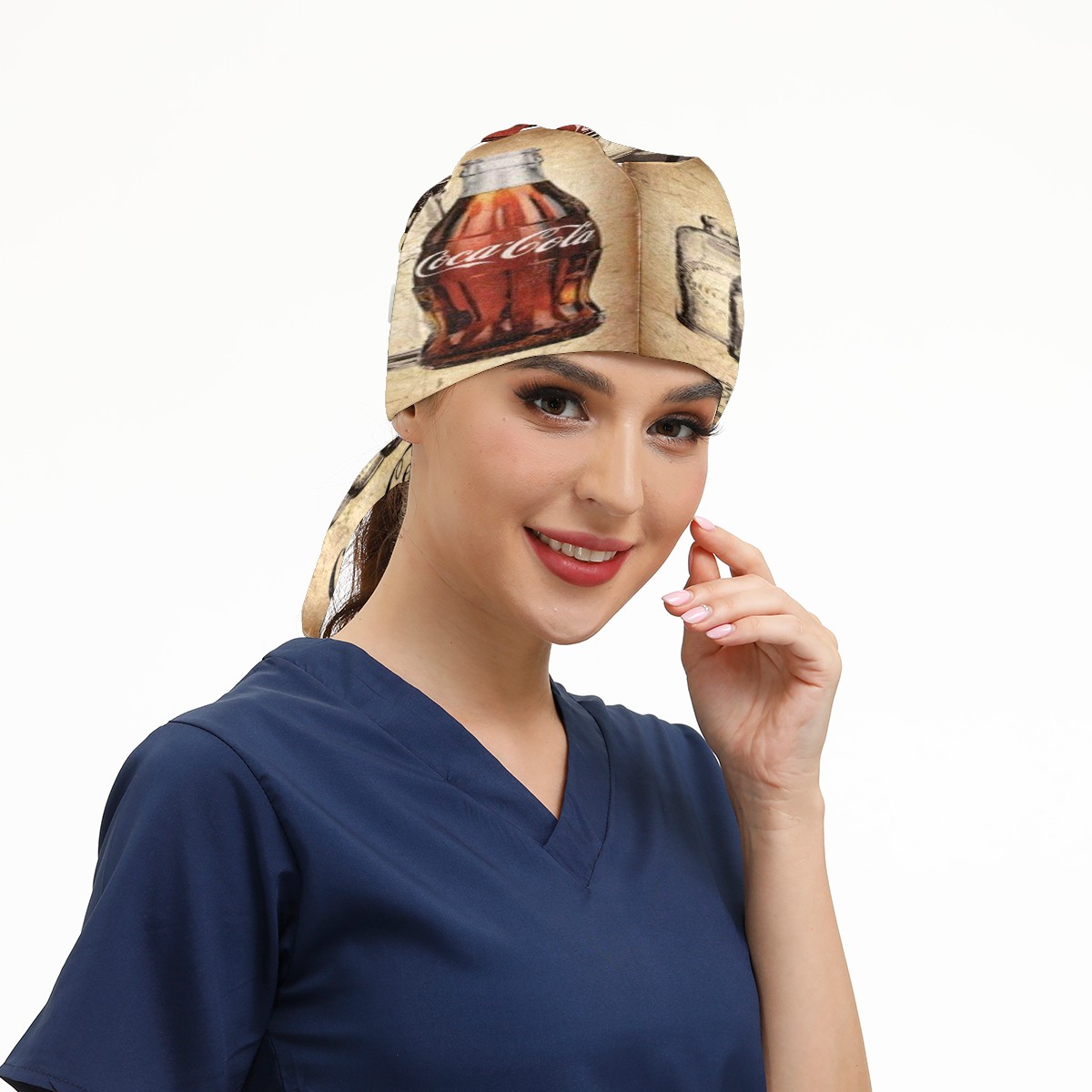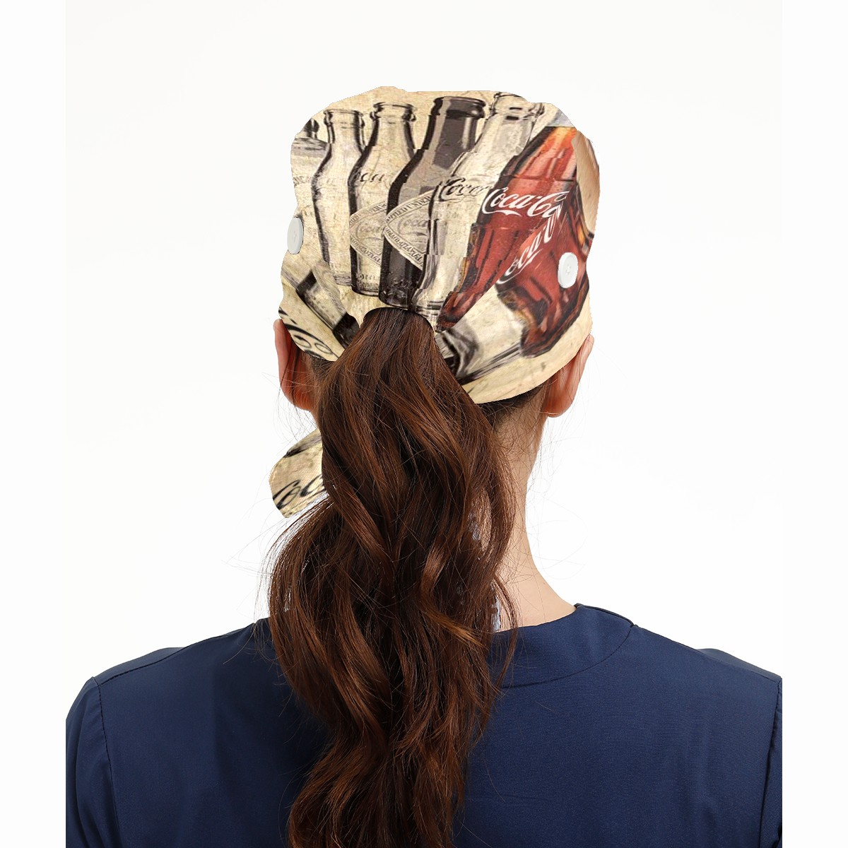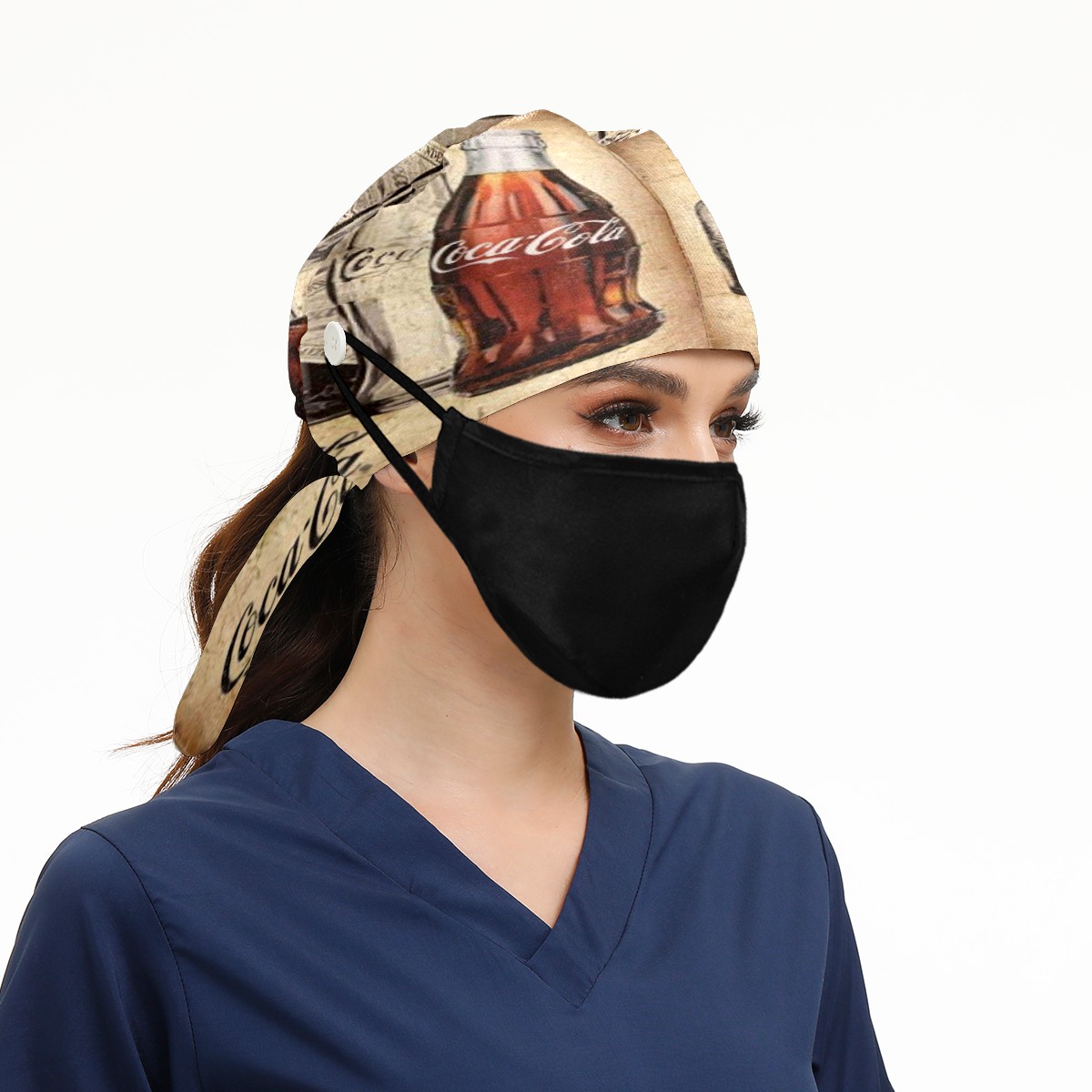 Fashion Working Cap Button and Sweatband Adjustable Elastic Retro Coca Cola Head Cover Hair Tie Back Work Hats for Women Men