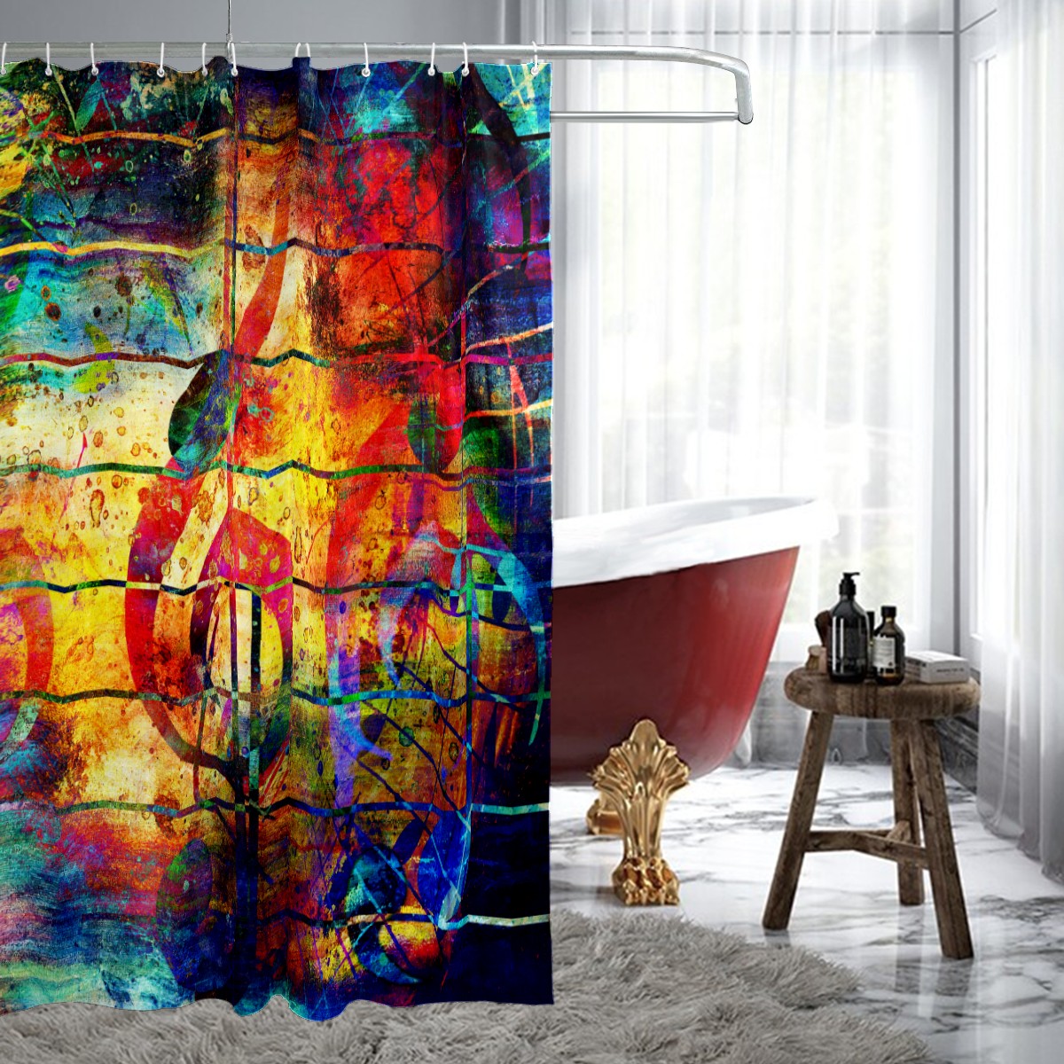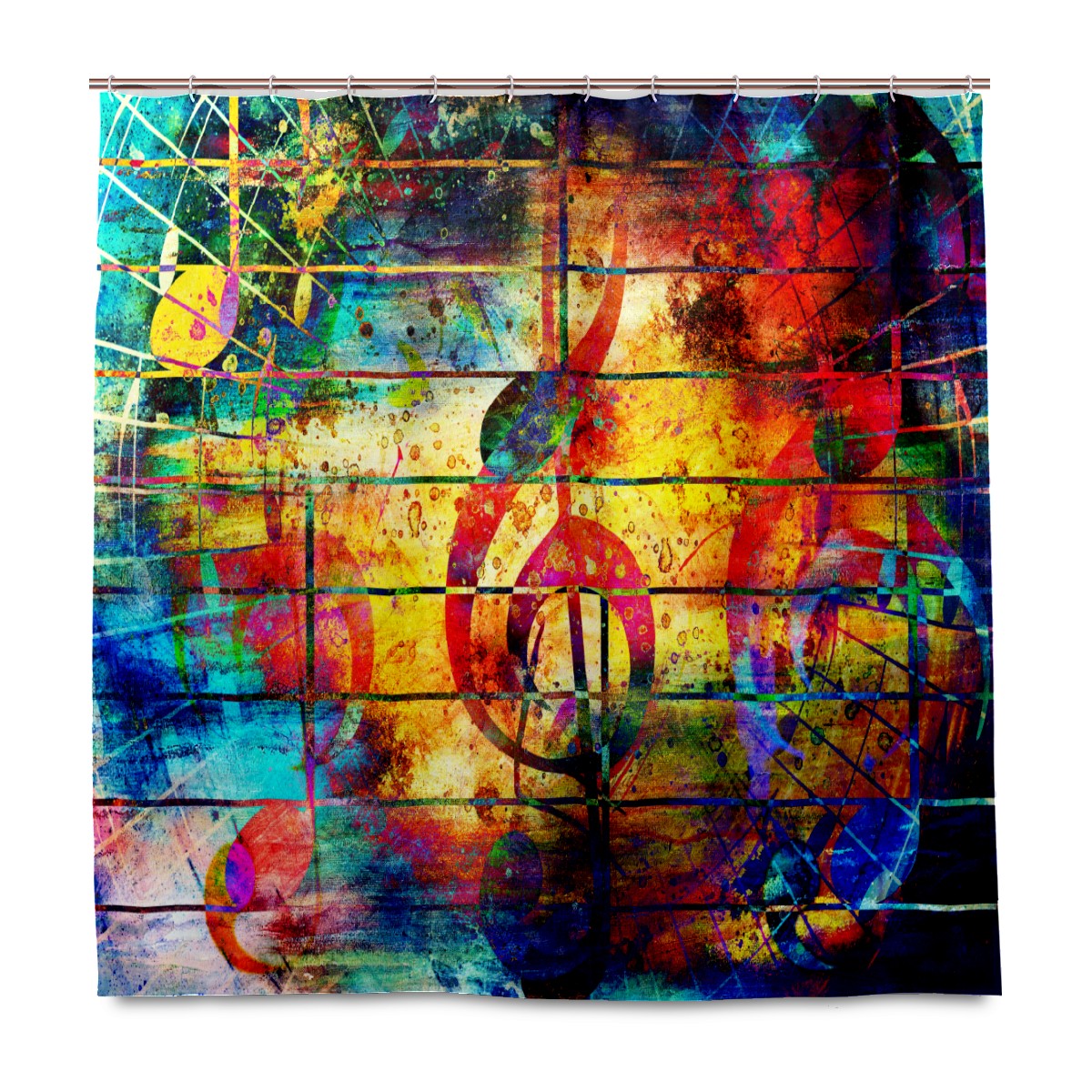 Shower Curtains for Bathroom Abstract Musical Notes Art Painting Waterproof Polyester Fabric 60 x 72 inches Decor Bathroom Curtains for Girls Boys with 12 Hooks