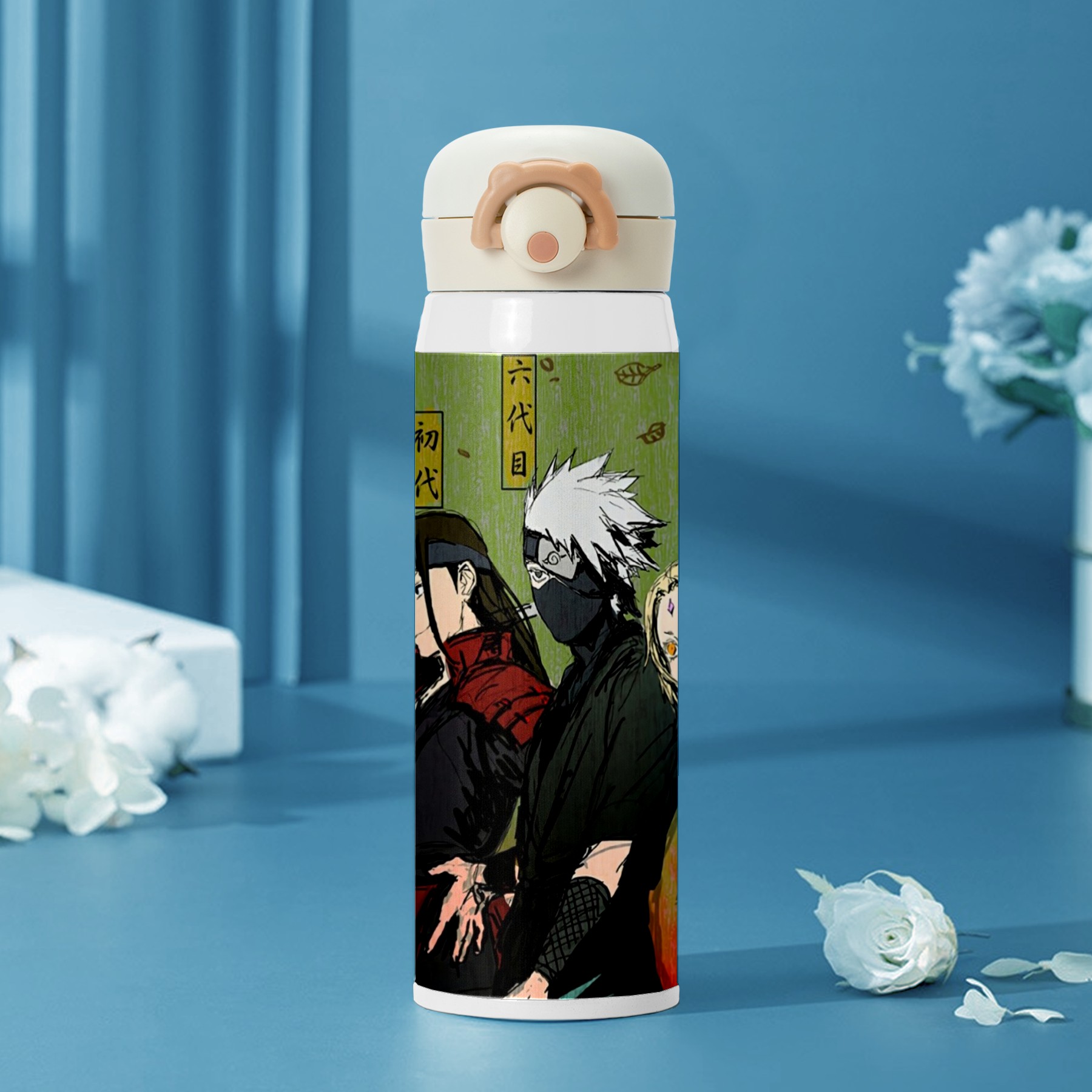 Naruto Uzumaki Uchiha Sasuke Kakashi Water Bottle 17 oz Vacuum Insulated Water Bottle 304 Stainless Steel Thermo Mug Iron Flask Sports Water Bottle for School Office