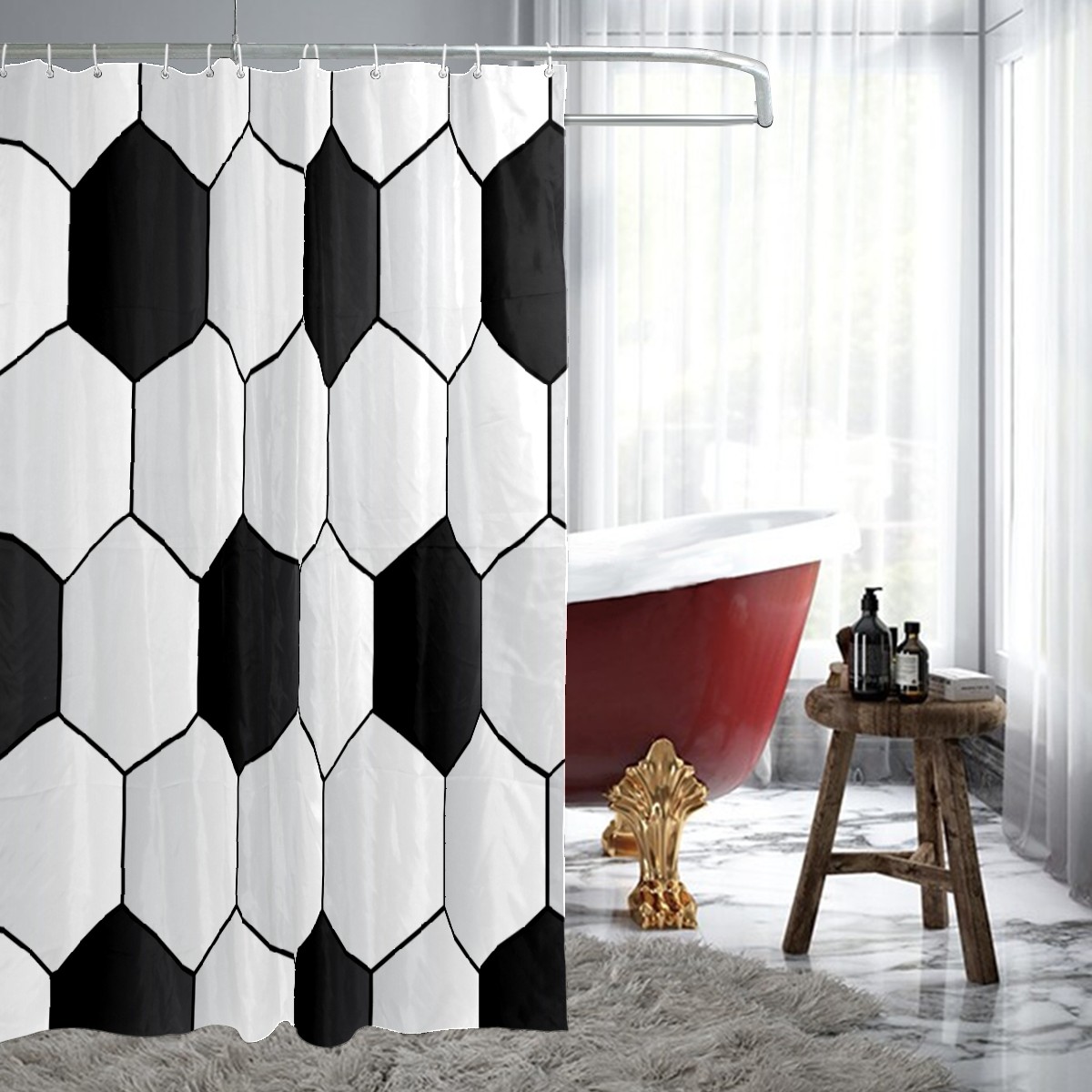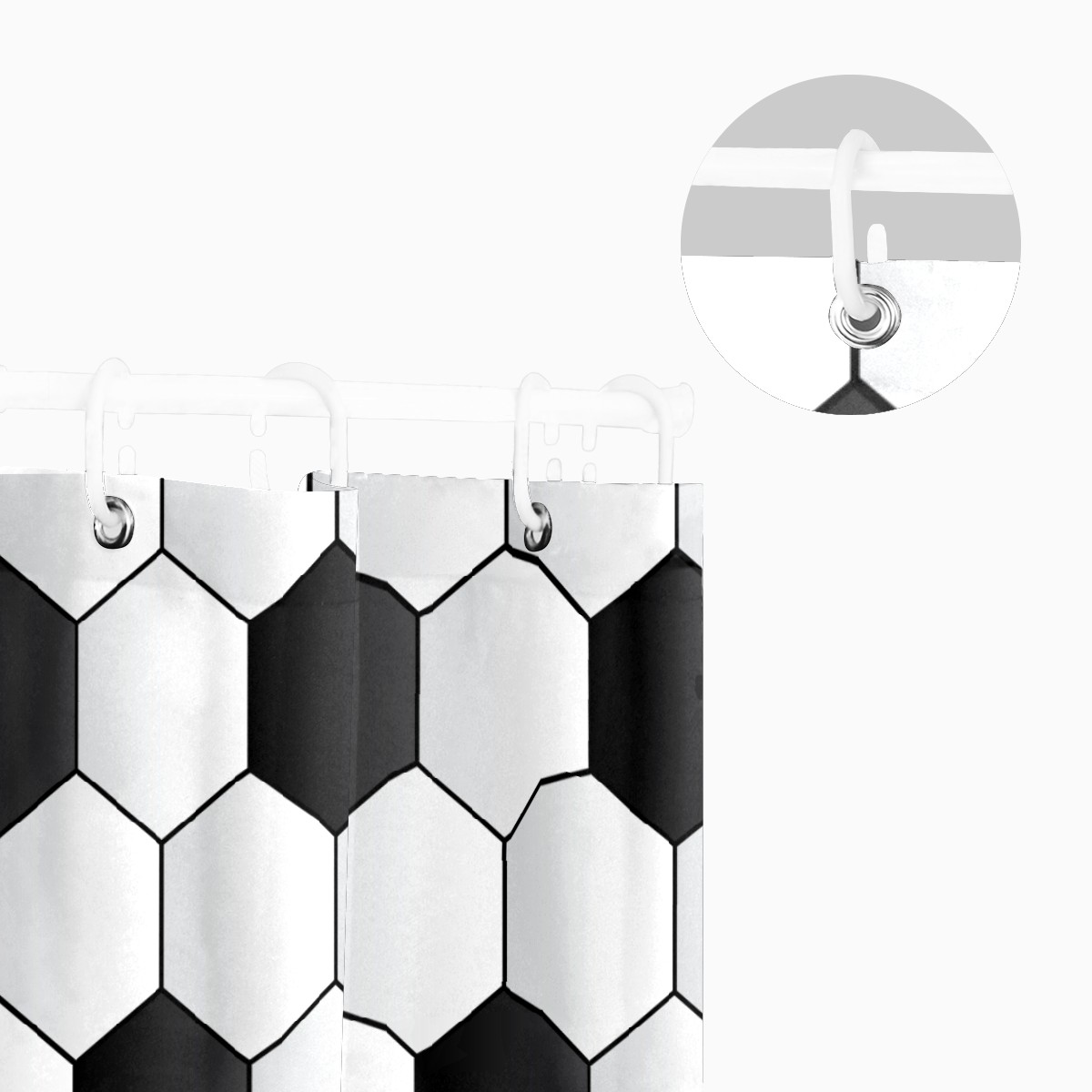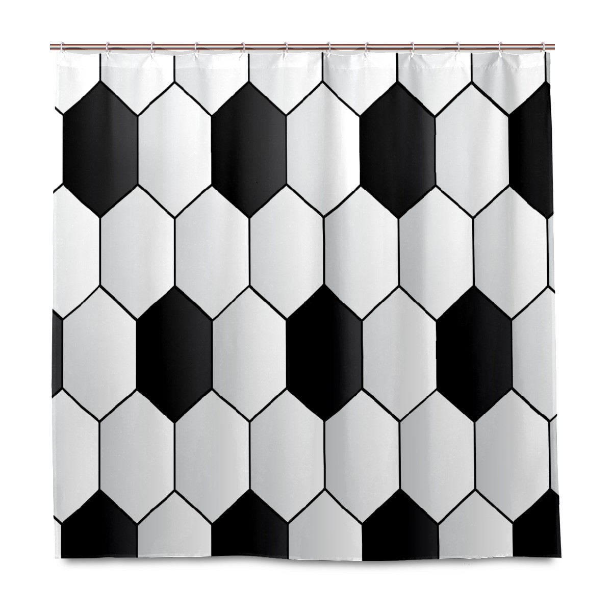 Shower Curtains for Bathroom Black White Soccer Football Sport Waterproof Polyester Fabric 60 x 72 inches Decor Bathroom Curtains for Girls Boys with 12 Hooks