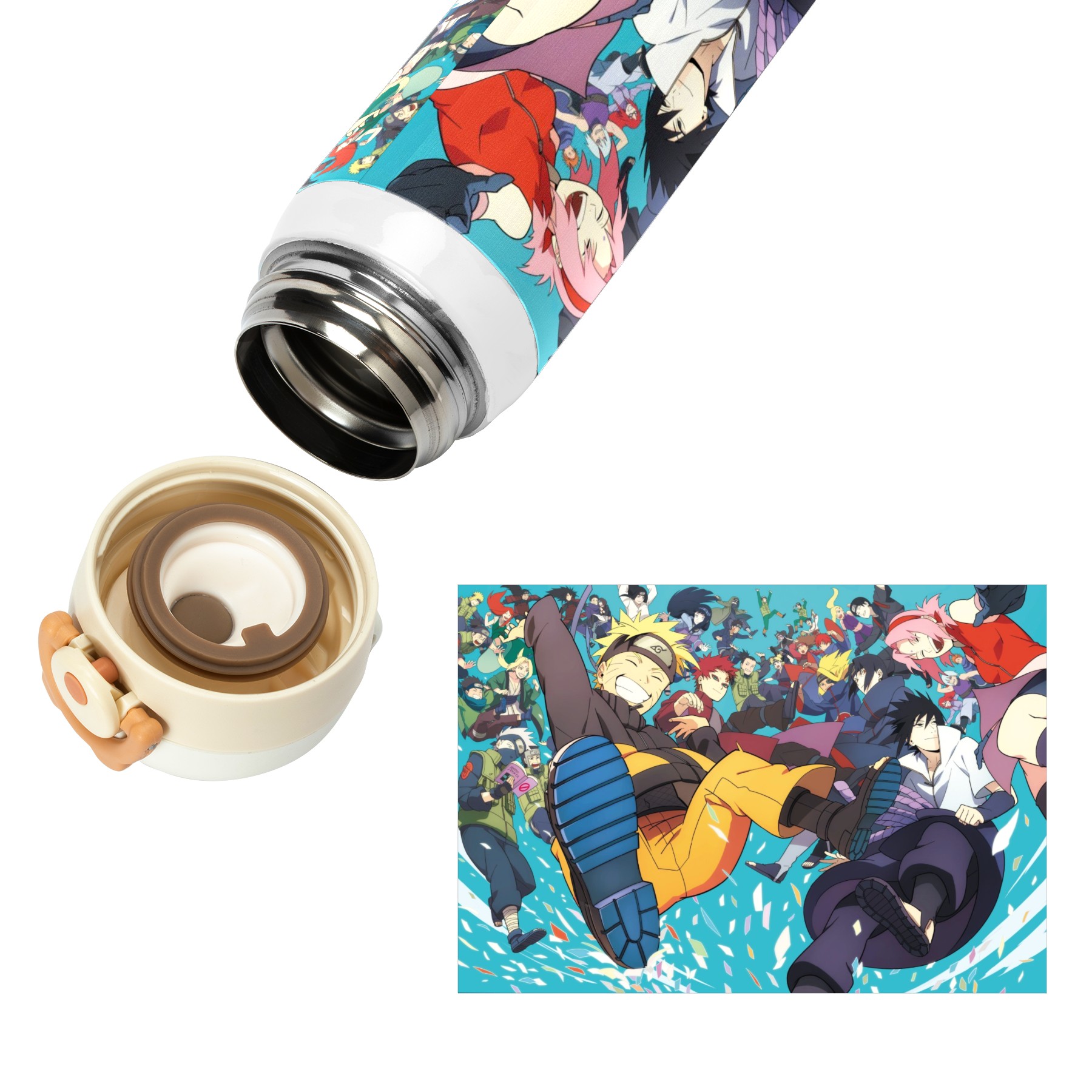 Naruto Uzumaki Uchiha Sasuke Kakashi Water Bottle 17 oz Vacuum Insulated Water Bottle 304 Stainless Steel Thermo Mug Iron Flask Sports Water Bottle for School Office