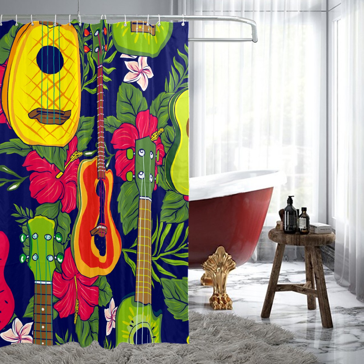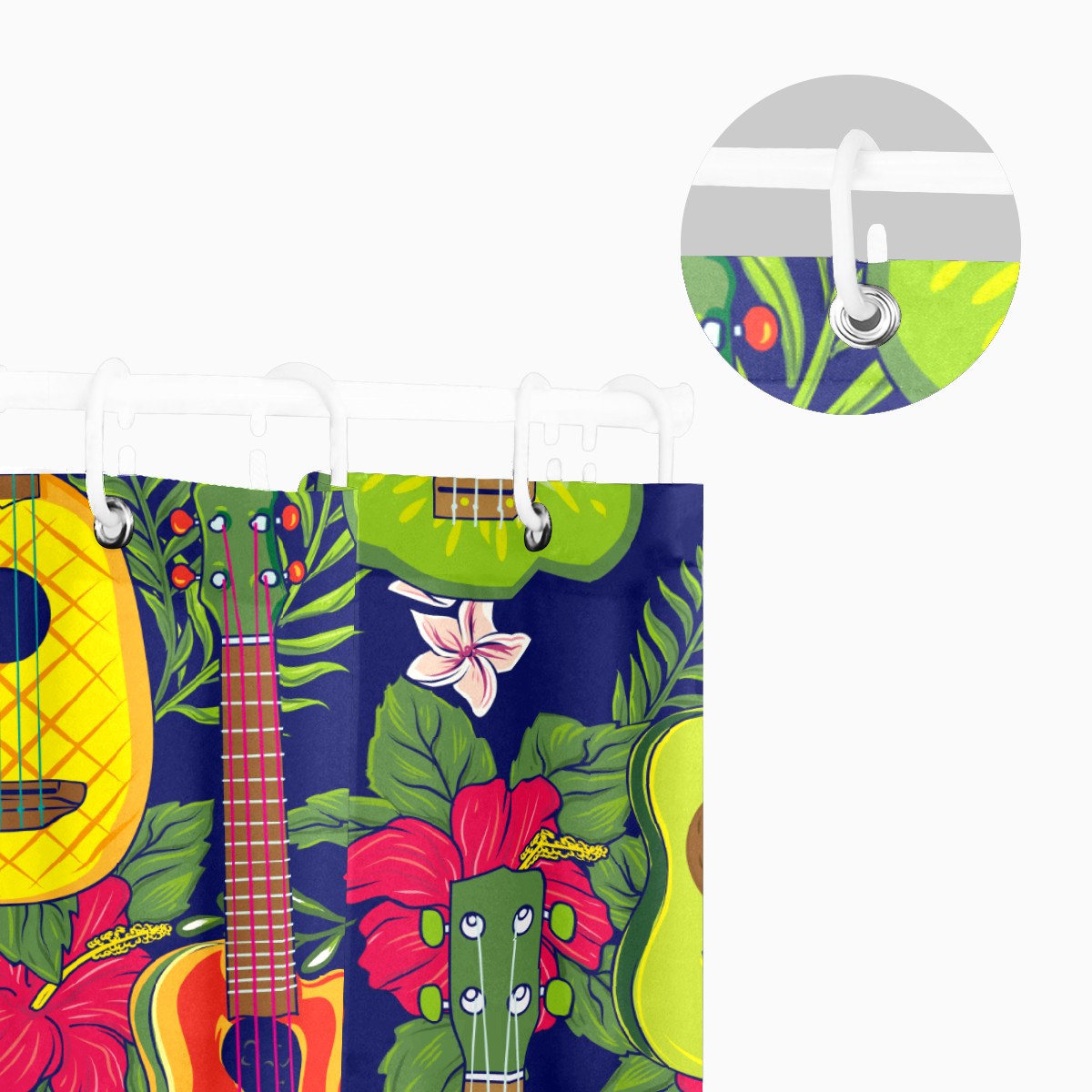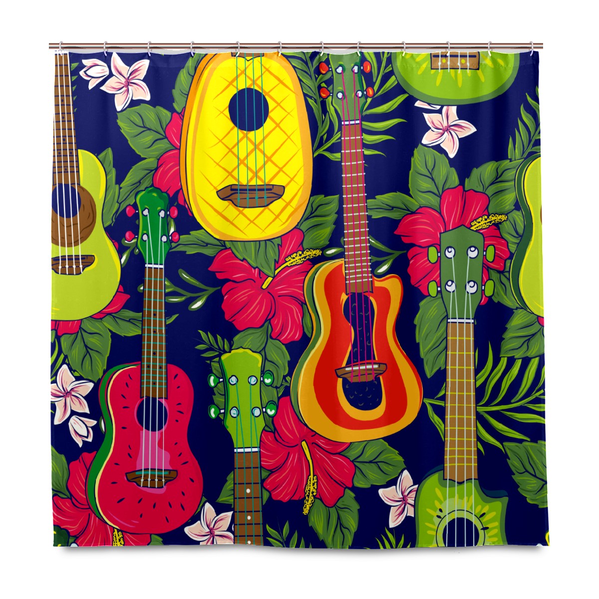 Shower Curtains for Bathroom Aloha Colorful Music Ukulele Floral Pattern Waterproof Polyester Fabric 60 x 72 inches Decor Bathroom Curtains for Girls Boys with 12 Hooks
