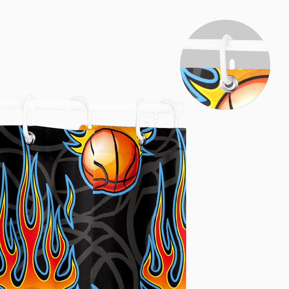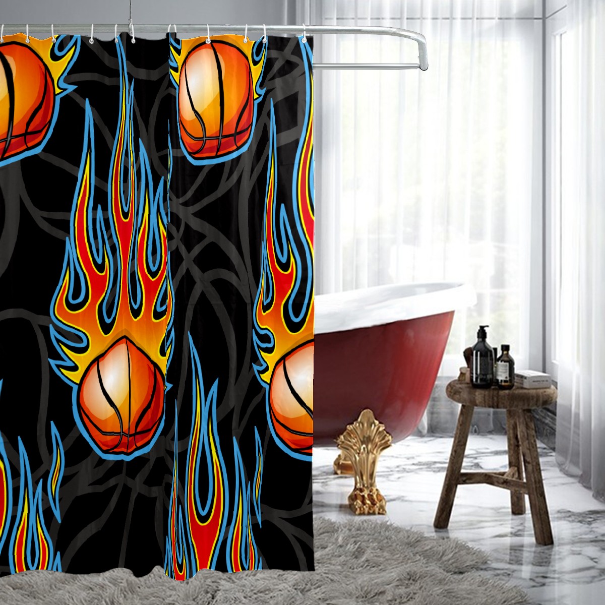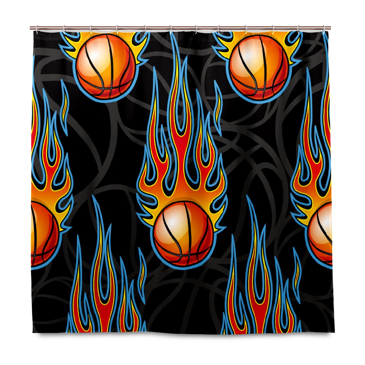 Shower Curtains for Bathroom Basketball Fire Sport Pattern Waterproof Polyester Fabric 60 x 72 inches Decor Bathroom Curtains for Girls Boys with 12 Hooks