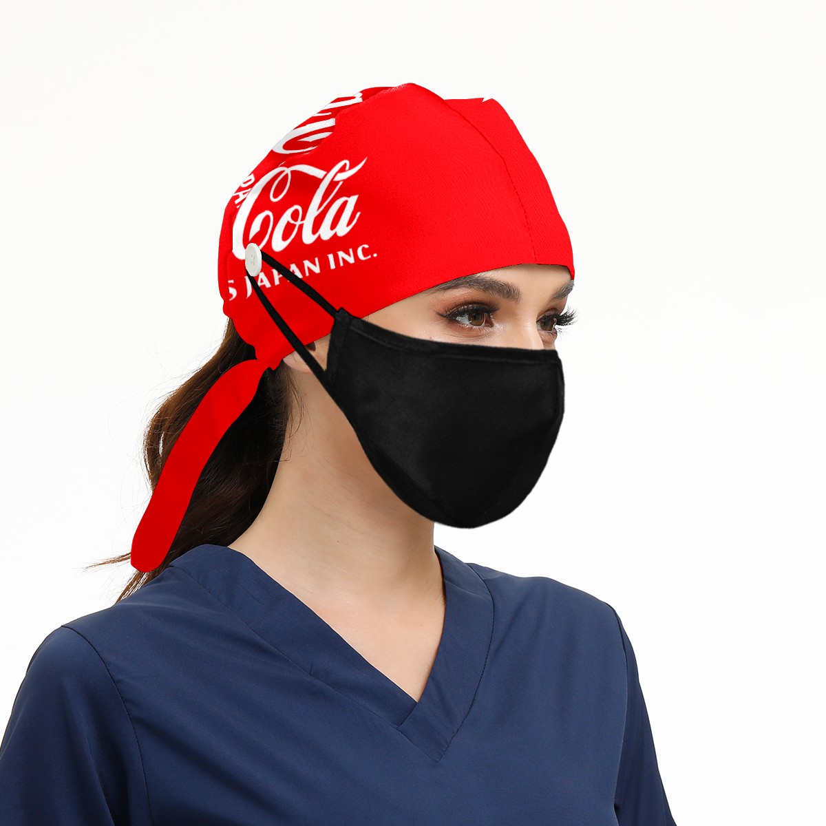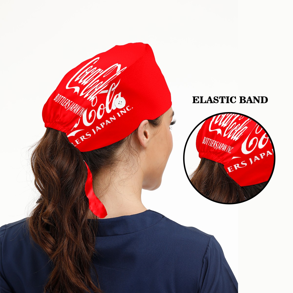 Fashion Working Cap Button and Sweatband Adjustable Elastic Coca Cola On Red Head Cover Hair Tie Back Work Hats for Women Men