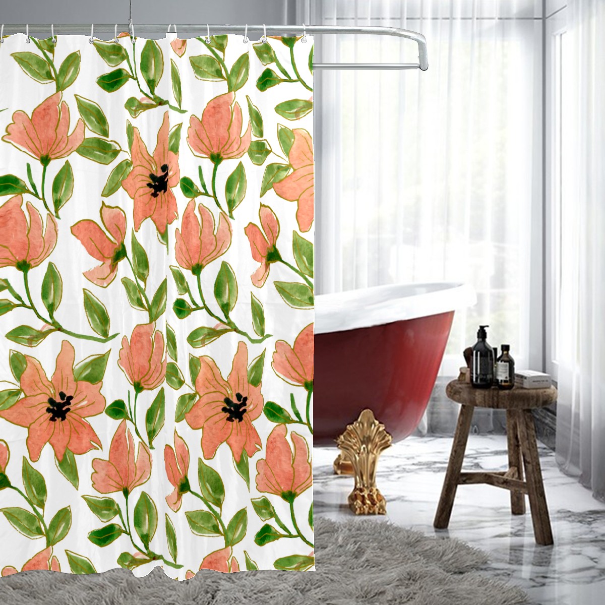 Shower Curtains for Bathroom Watercolor Lily Flower Pattern Waterproof Polyester Fabric 60 x 72 inches Decor Bathroom Curtains for Girls Boys with 12 Hooks