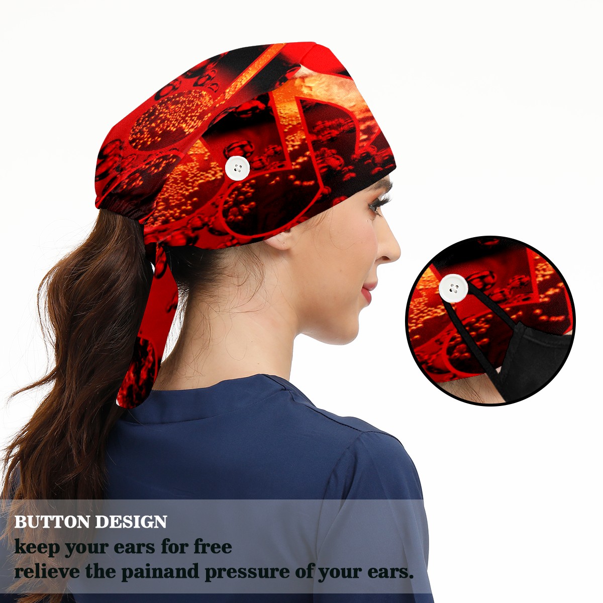 <p>Women and Mens head cover with Sweatband and Button</p><p>Material&nbsp;: 50% cotton+50% polyester</p><p>Size:&nbsp;One size fits most,&nbsp;suitable for both men and women.</p><p>Working Cap with Buttons Design:special&nbsp;design with buttons to protect ears for those who are wearing ma-sk. These new styles hats will allow you to put the straps around the buttons instead of your ears, make you feel more comfortable.</p><p>Sweat-absorbent towel cloth inside: Built-in&nbsp;100% cotton sweatband, keep the forehead clean after long time working.</p><p>Widely occasion: Widely used in beauty spa, house cleaning, cooking, sleeping, or for cos-play&nbsp;party.</p><p>Lovely pattern: lovely&nbsp;3D printed&nbsp;pattern,&nbsp;it's perfect for gift to you family&nbsp;and friends.</p>