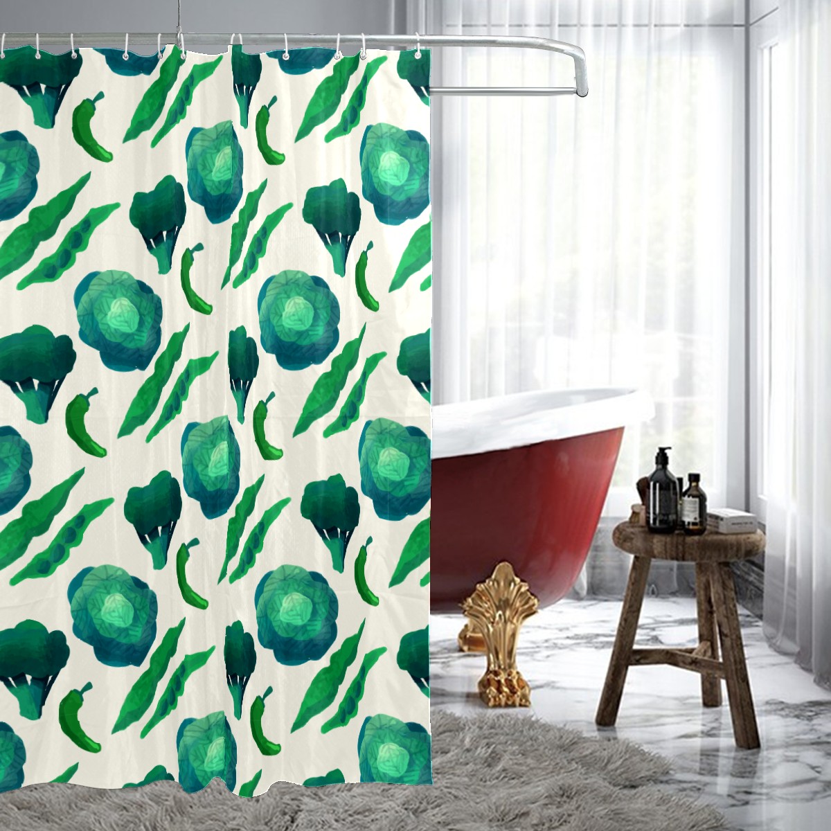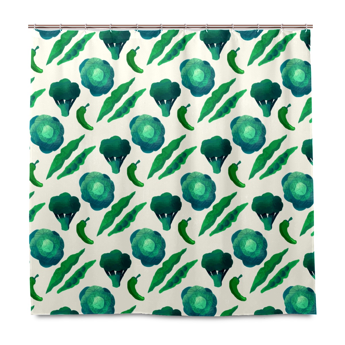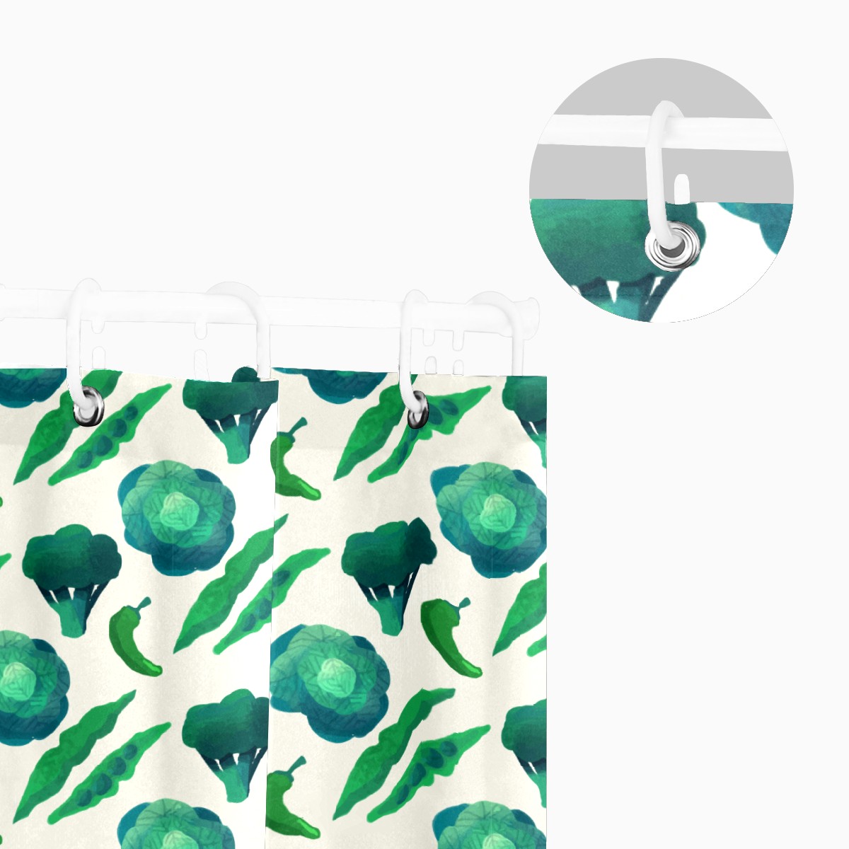 Shower Curtains for Bathroom Watercolor Green Vegetables Pattern Waterproof Polyester Fabric 60 x 72 inches Decor Bathroom Curtains for Girls Boys with 12 Hooks