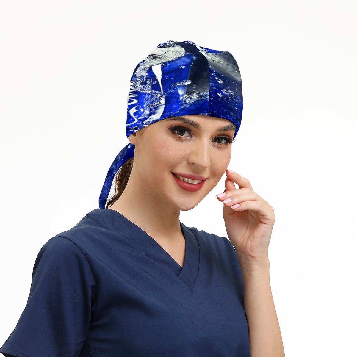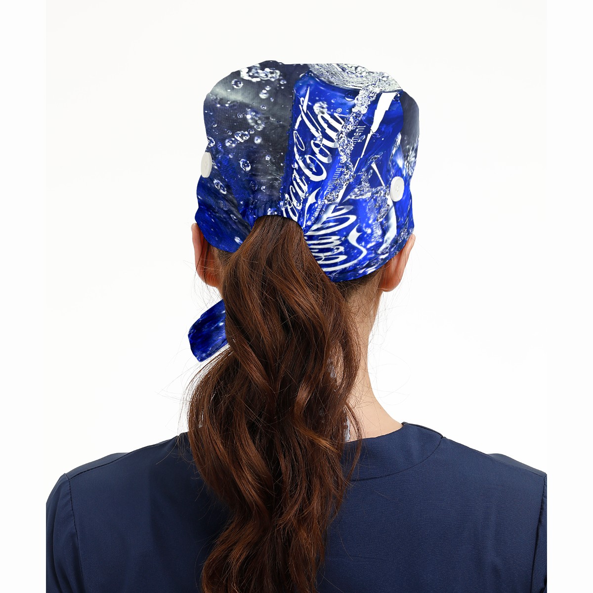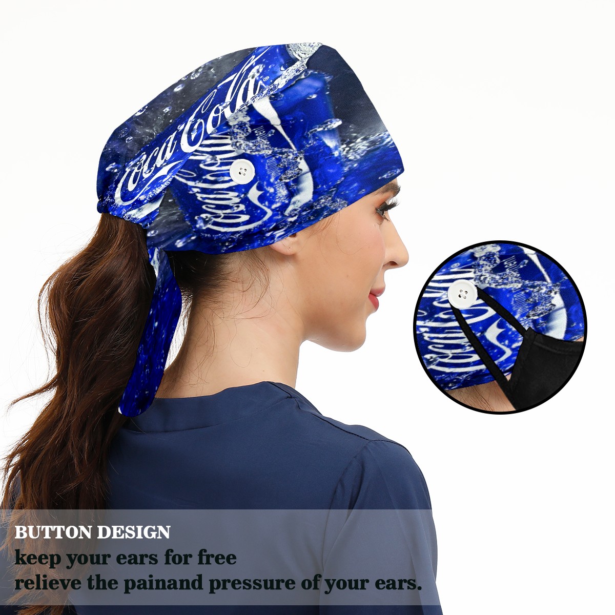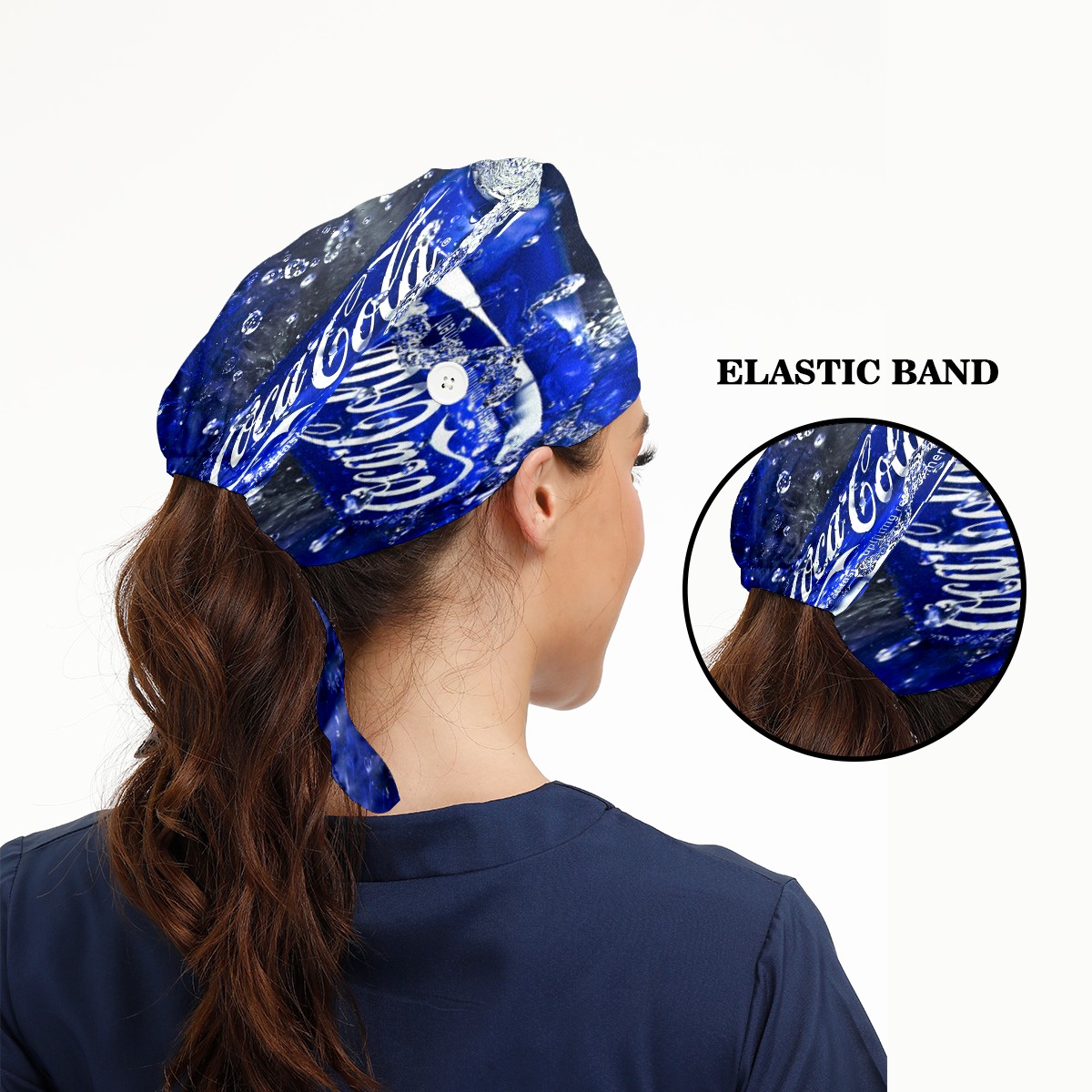 Fashion Working Cap Button and Sweatband Adjustable Elastic Coca Cola Can Blue Head Cover Hair Tie Back Work Hats for Women Men